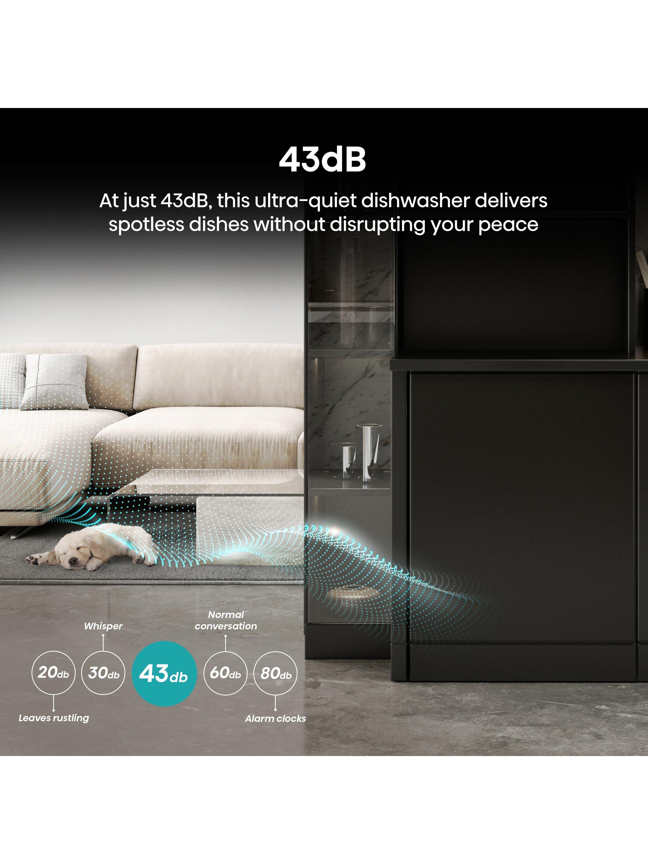 Experience the ultimate peace and quiet with a dishwasher operating at an ultra-low noise level of just 43dB – comparable to a quiet library or soft whisper. Perfect for open-plan living or nighttime use, it runs so silently you’ll barely notice it’s on. Enjoy spotless dishes without any disruption to your tranquillity.