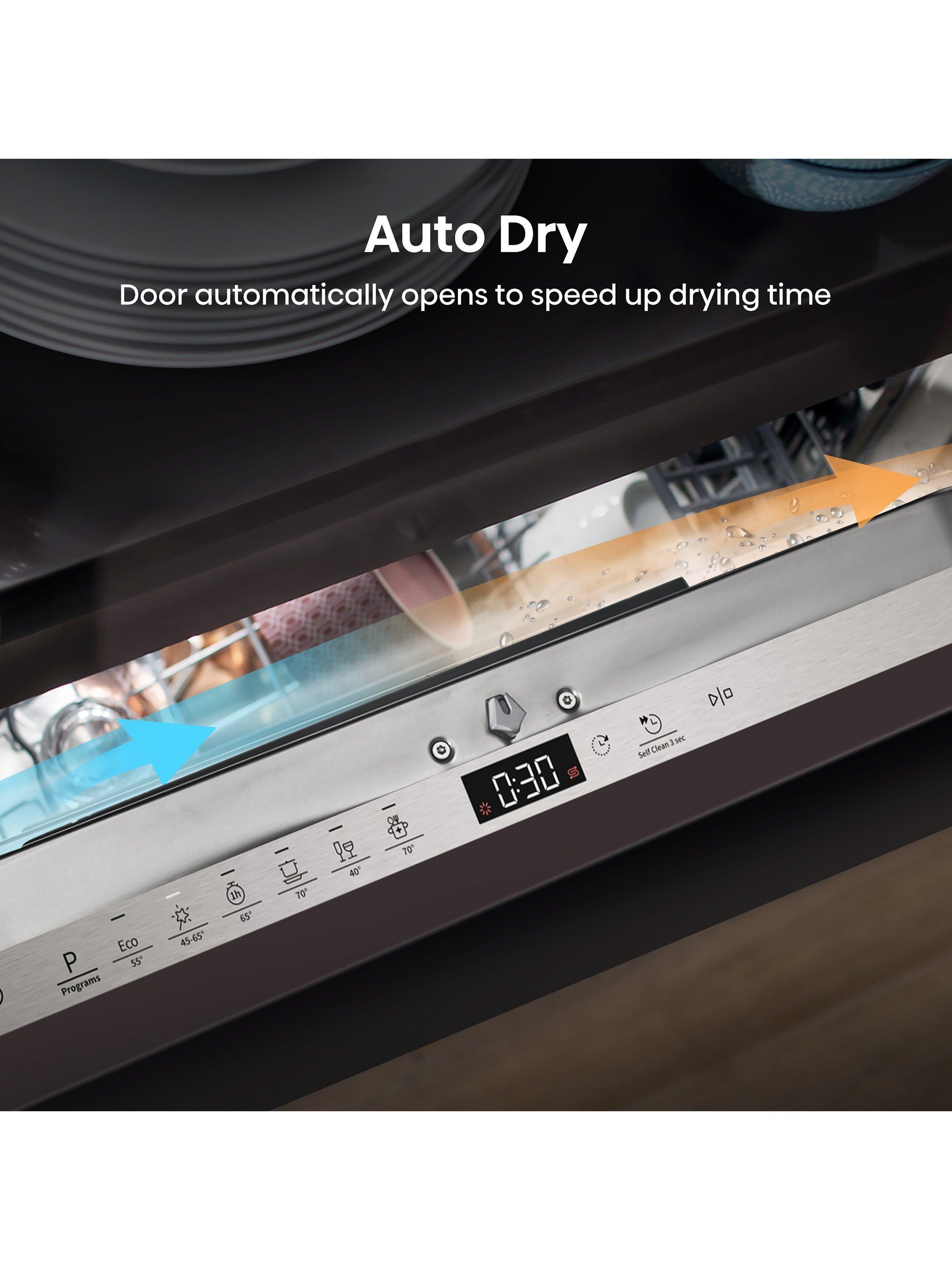 The Hisense Integrated HV643D90UK dishwasher has 16 place settings, offering sufficient amount of space for your dishes, glasses, pots and pans, making it ideal for larger households. Load with ease, thanks to the flexible cutlery tray and adjustable baskets, allowing you to reconfigure to your needs. With a conveniently quick 15-minute wash cycle, it's perfect for lightly soiled items or if you need dinner plates washing in a hurry. Equipped with an additional 5 wash programmes, including Intensive, ECO, Hygiene, Glass and Automatic, there will be a wash cycle to match any occasion. Giving you that extra helping hand, activate Auto Dry which will help to speed up the drying process by opening the door at the end of the cycle, allowing you to use items straight from the dishwasher. As well as cleaning the contents of your kitchen, don't forget to give your dishwasher a little TLC from time to time. By using the Self-Clean programme once a month, you can guarantee better cleaning results.