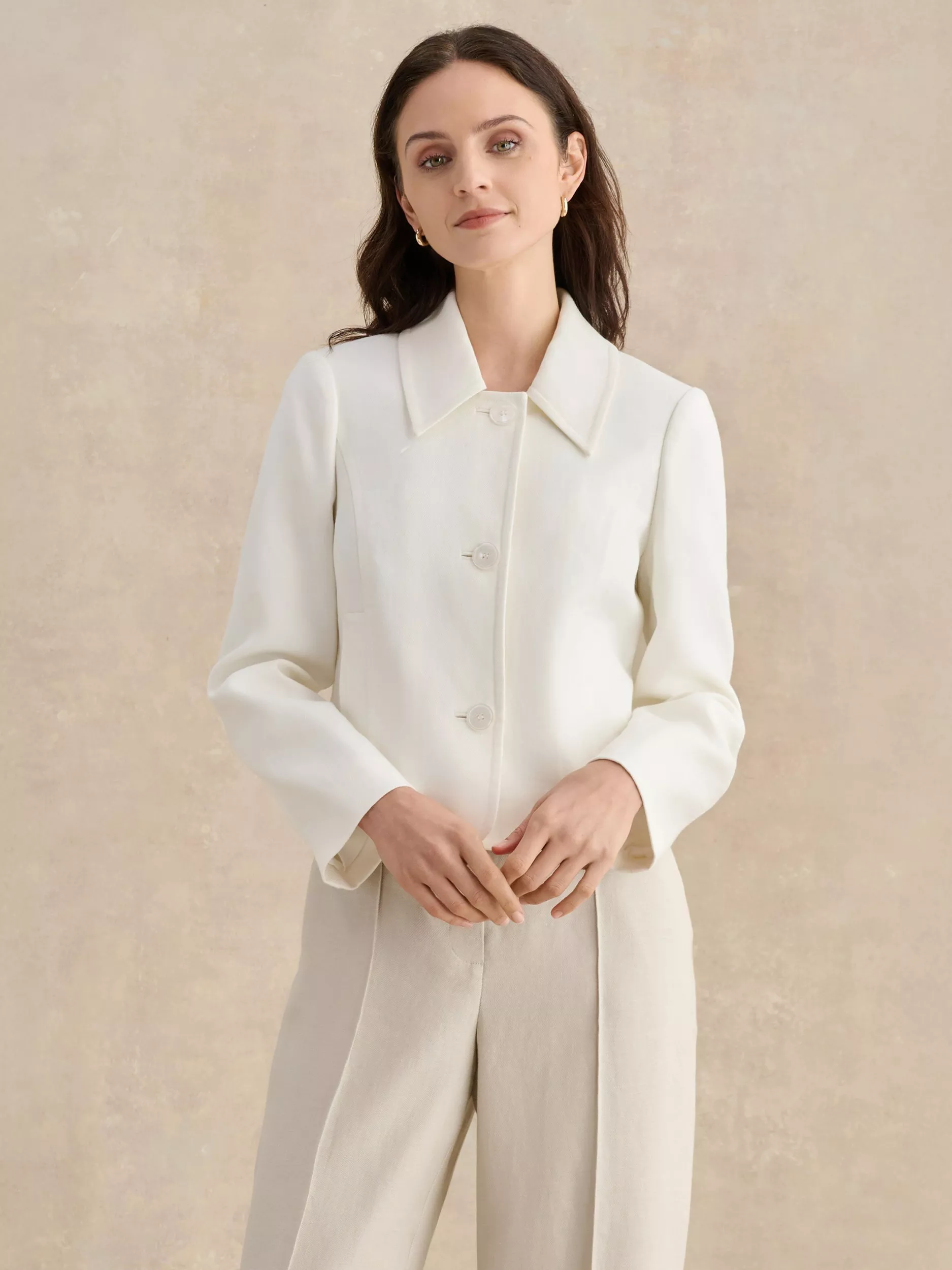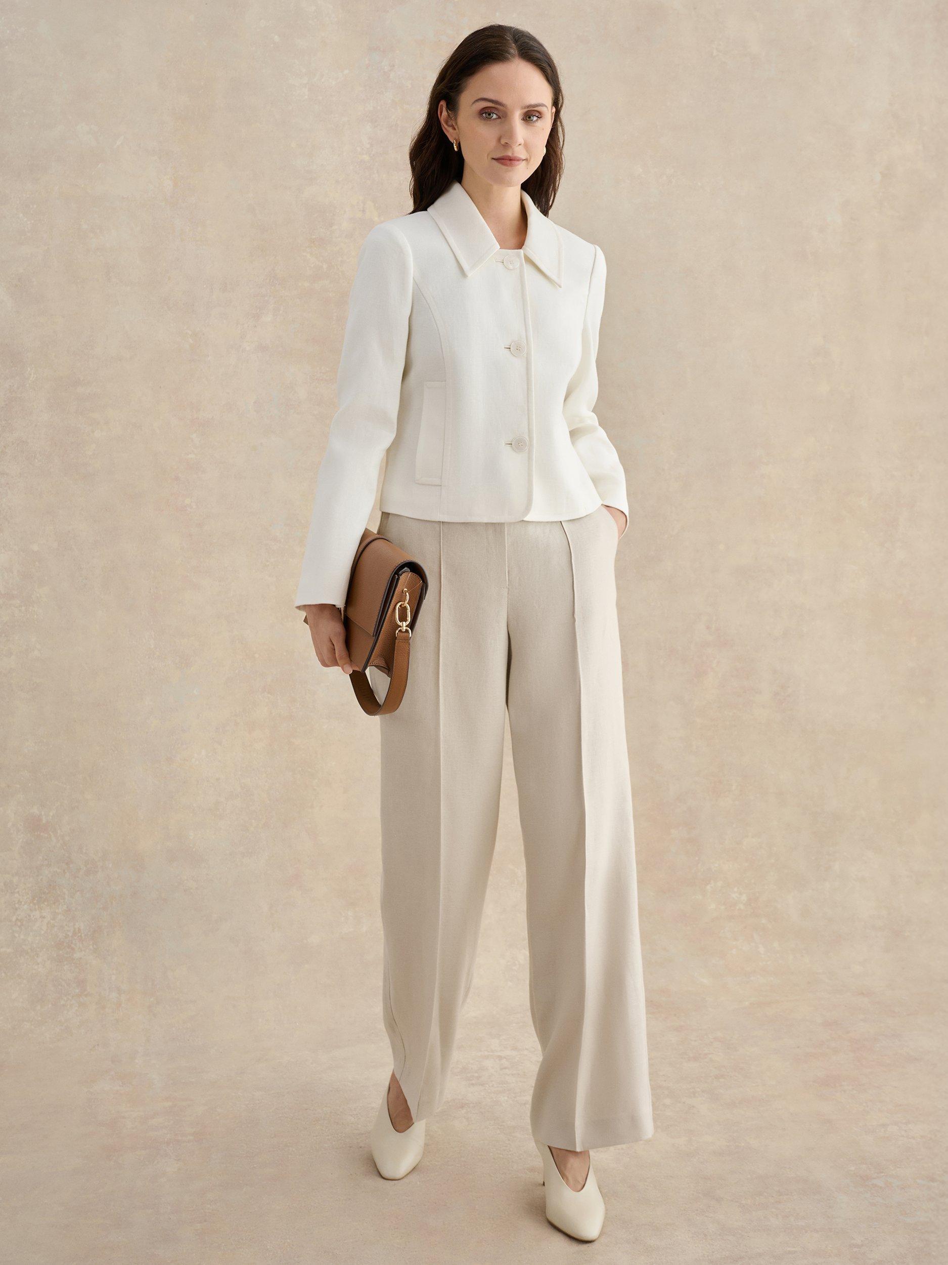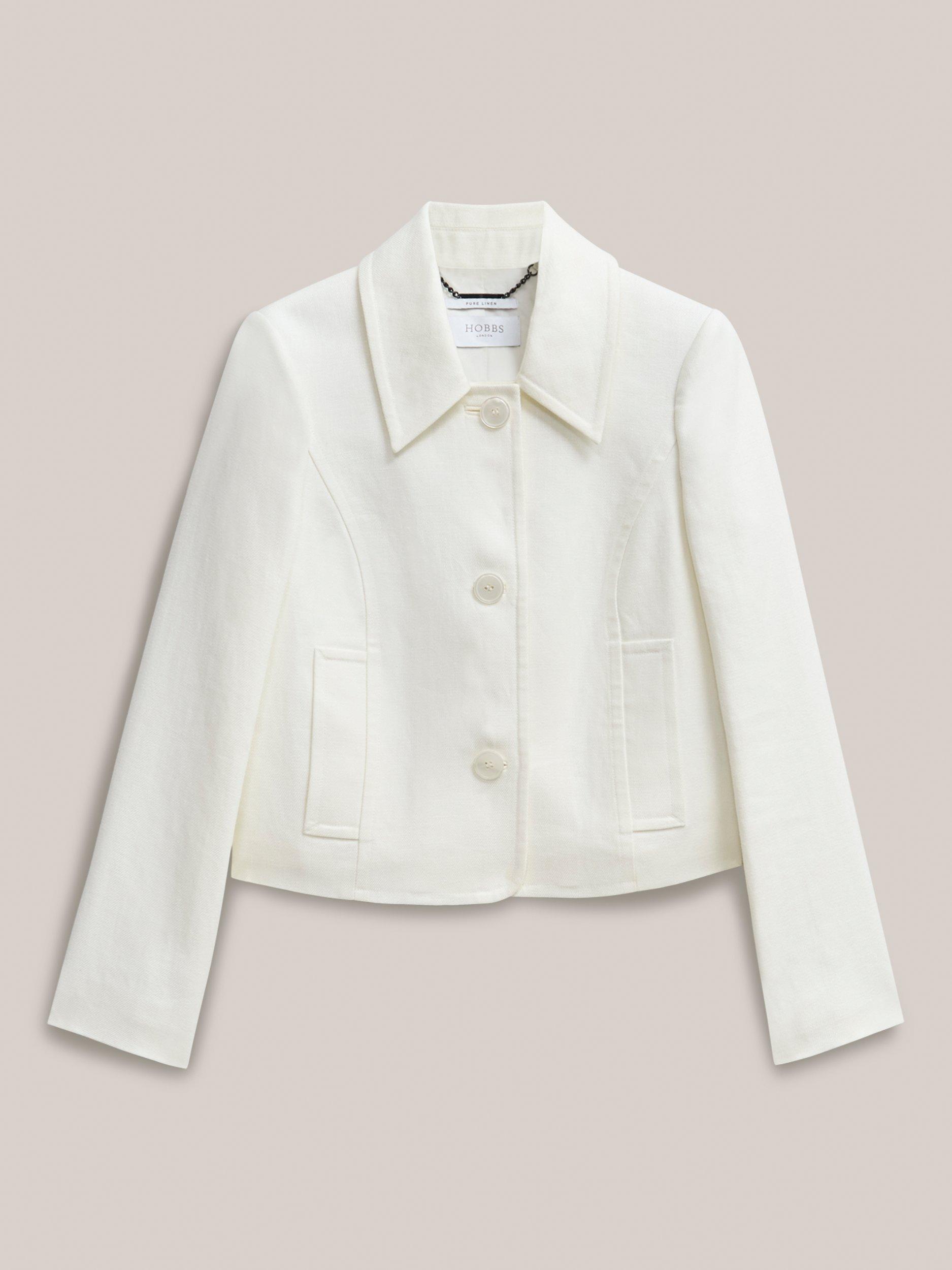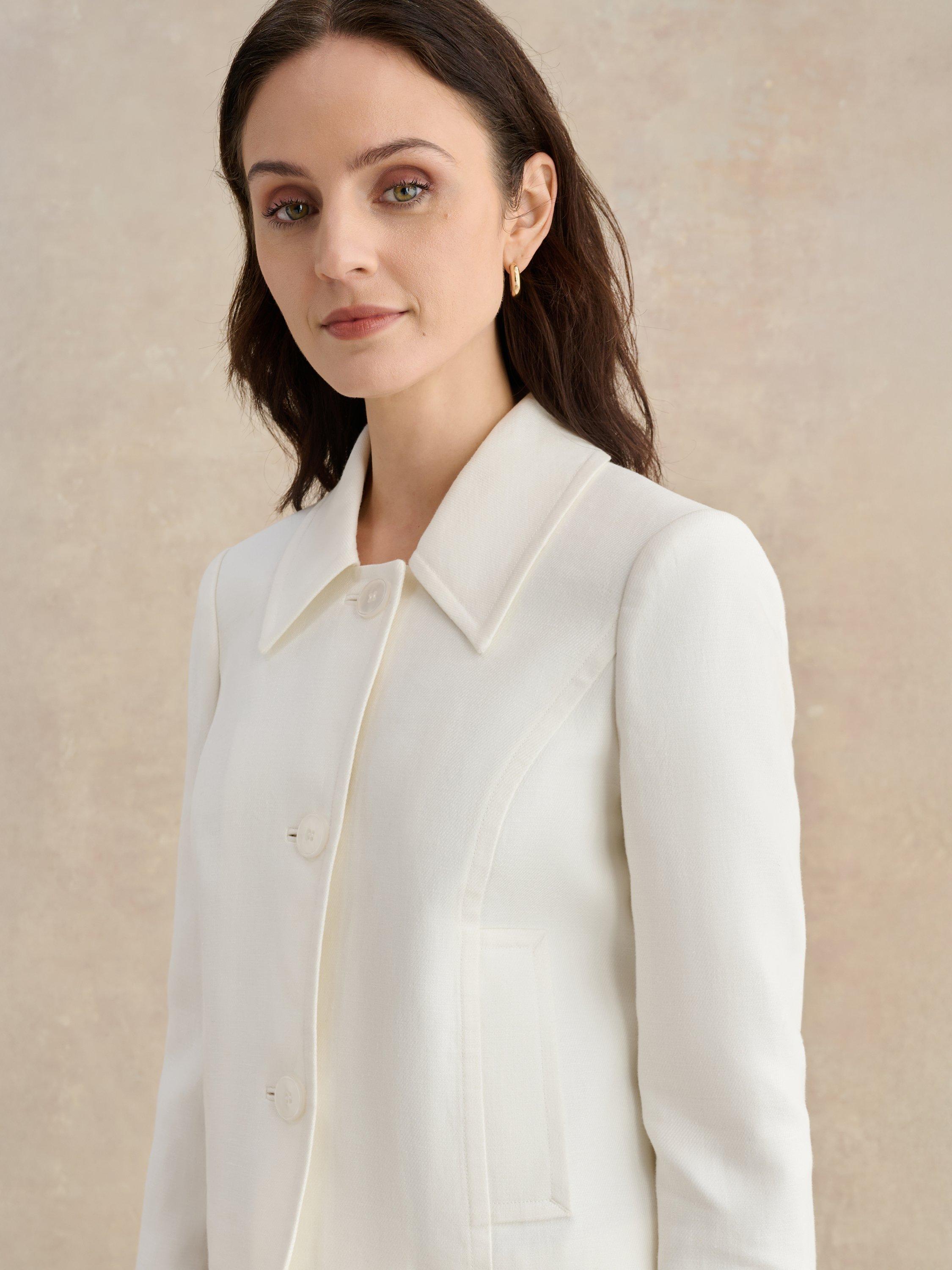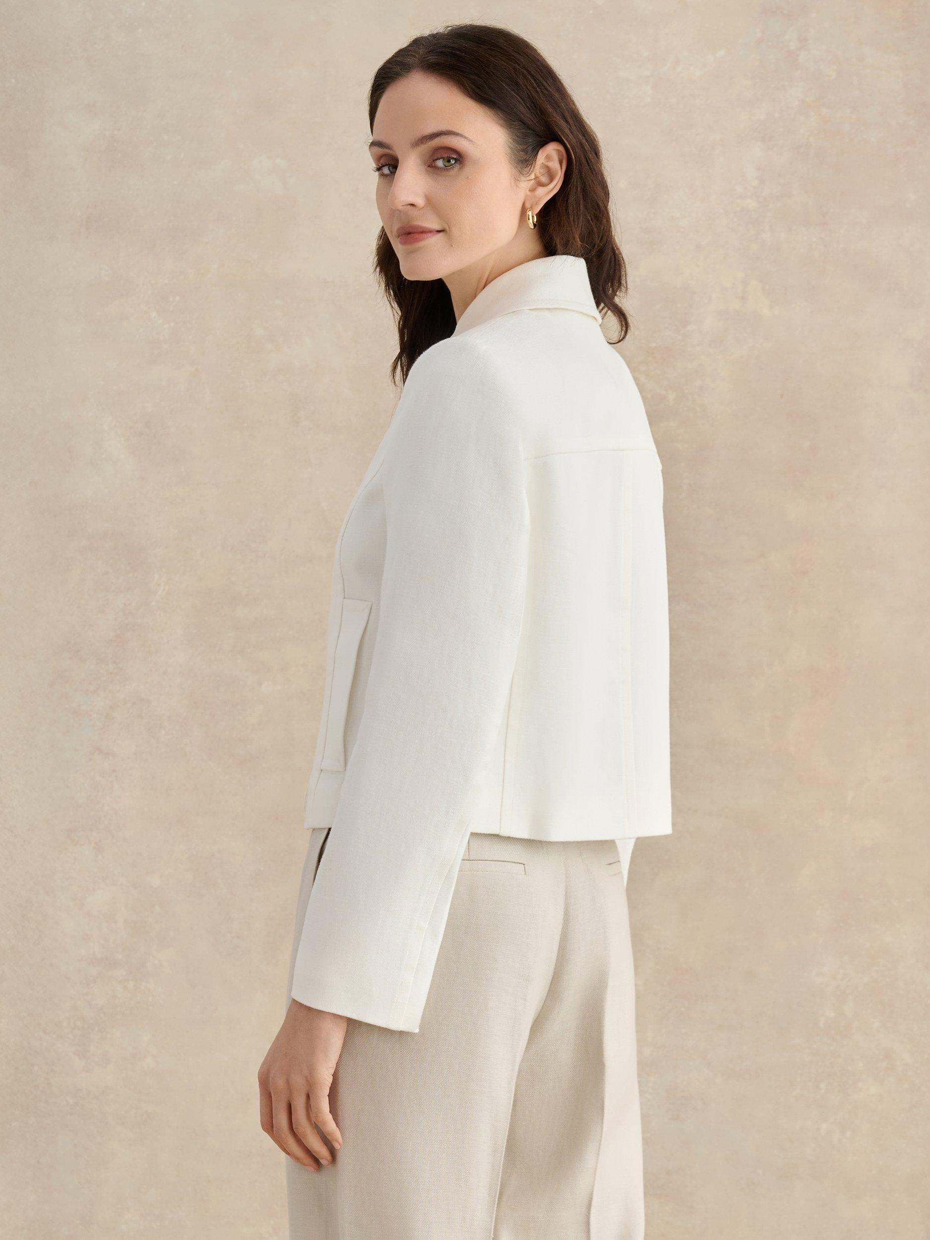 Engineered in breathable linen, tap into vintage appeal with the Adeen jacket's point collar and shorter length. Style with denim, linen tailoring or occasion skirts.