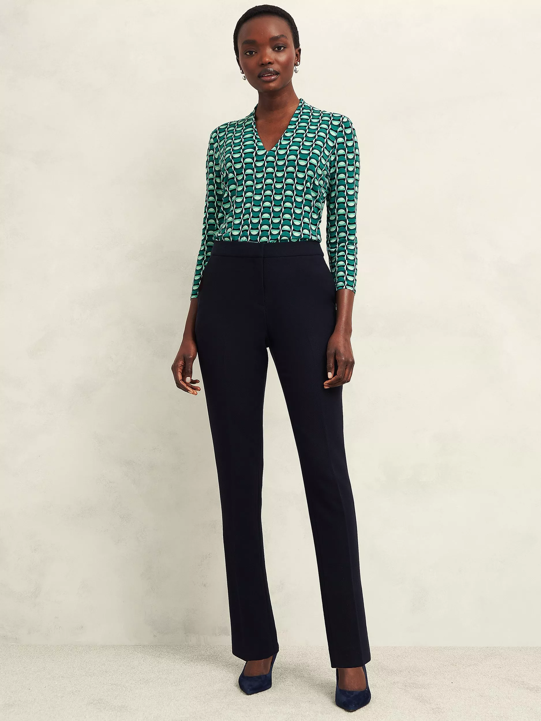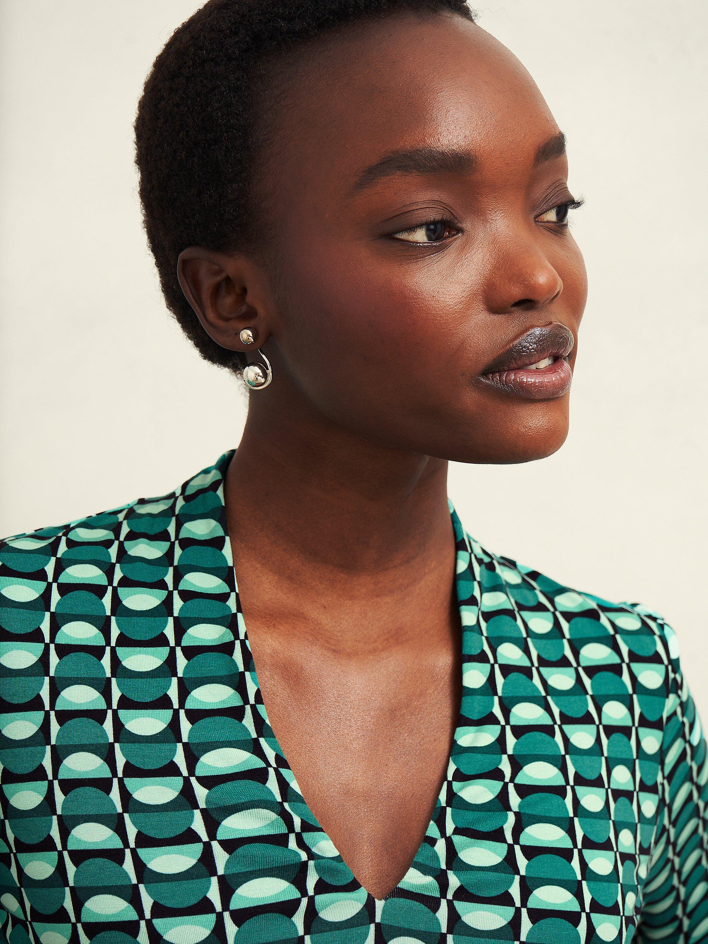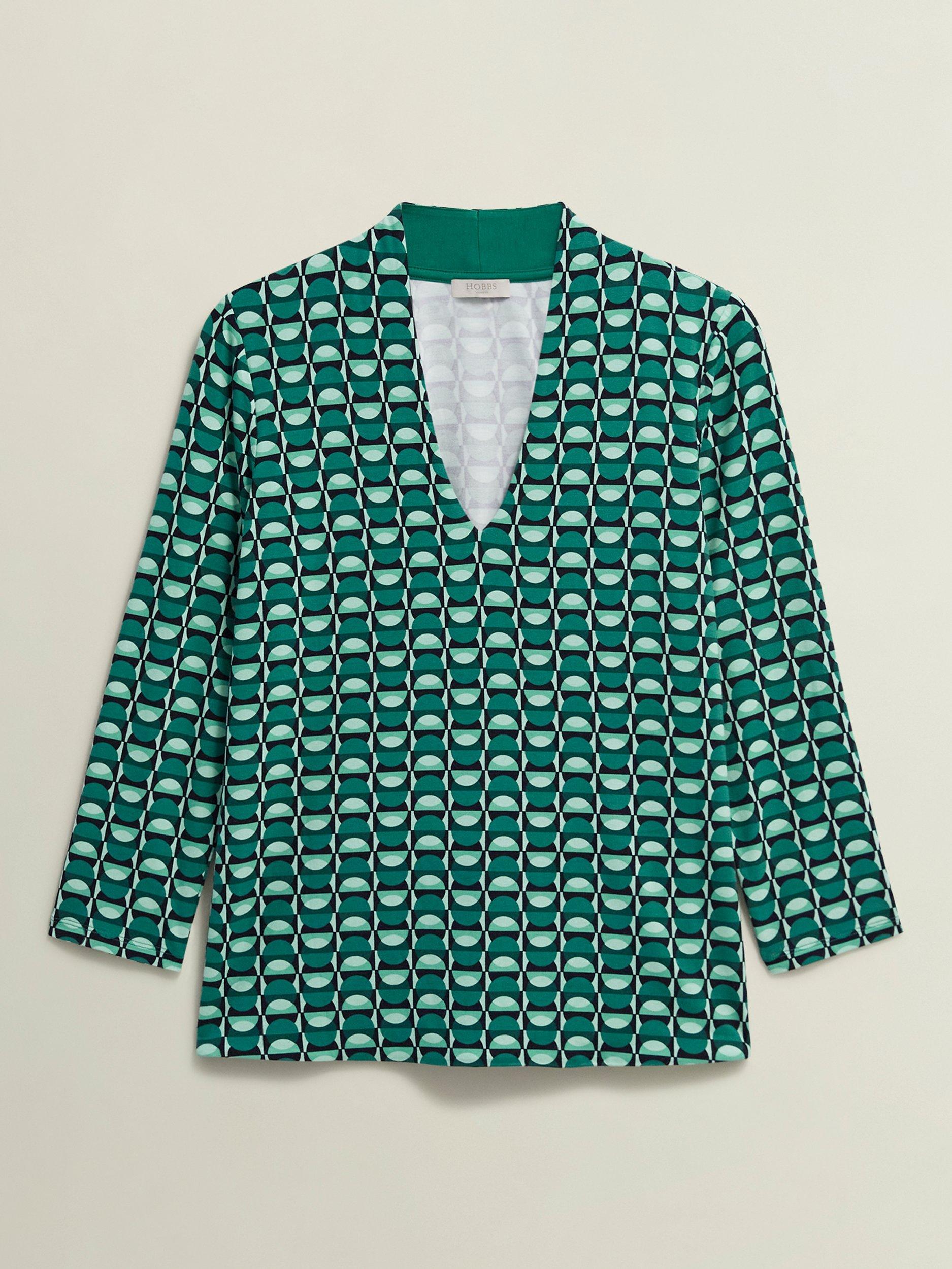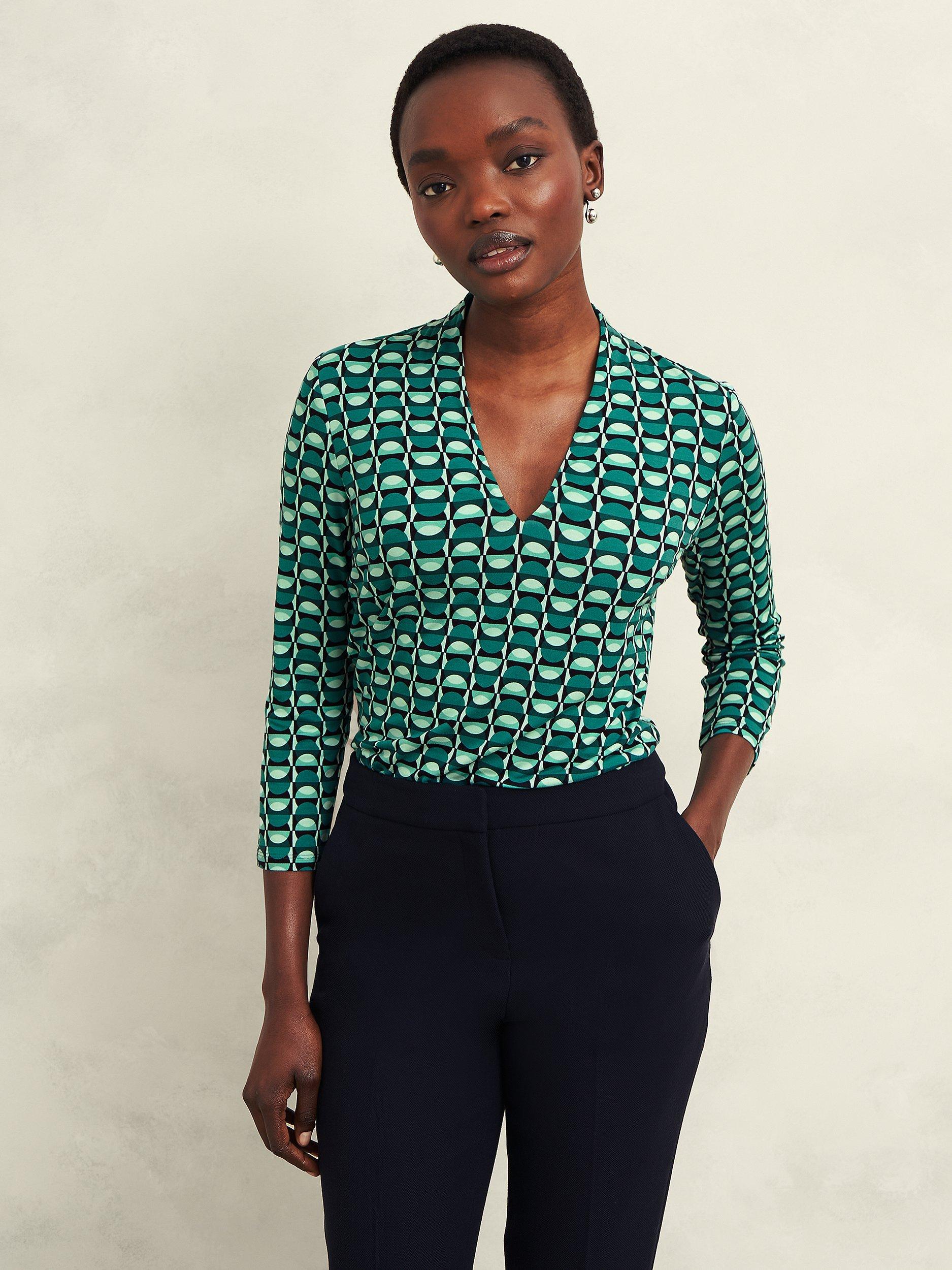 In an eye-catching colour block, this effortless printed jersey top is cut to an ultra-flattering fit and ready for myriad occasions.