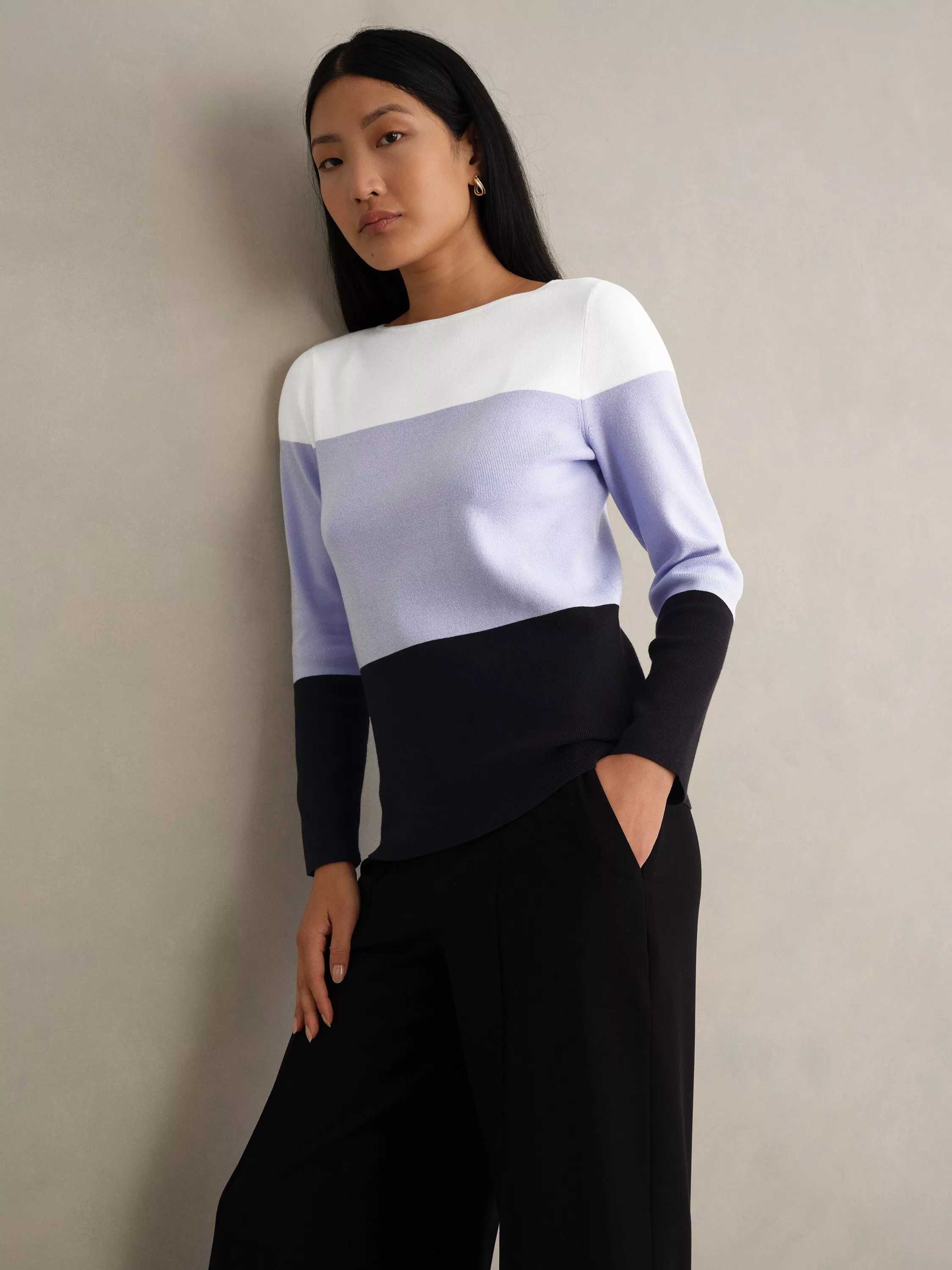 Level up your day with this colour block stripe jumper from Hobbs. Its crew neck and long sleeves keep you comfortable, while the clever pattern adds a modern twist. Easy to style, it brightens every moment.