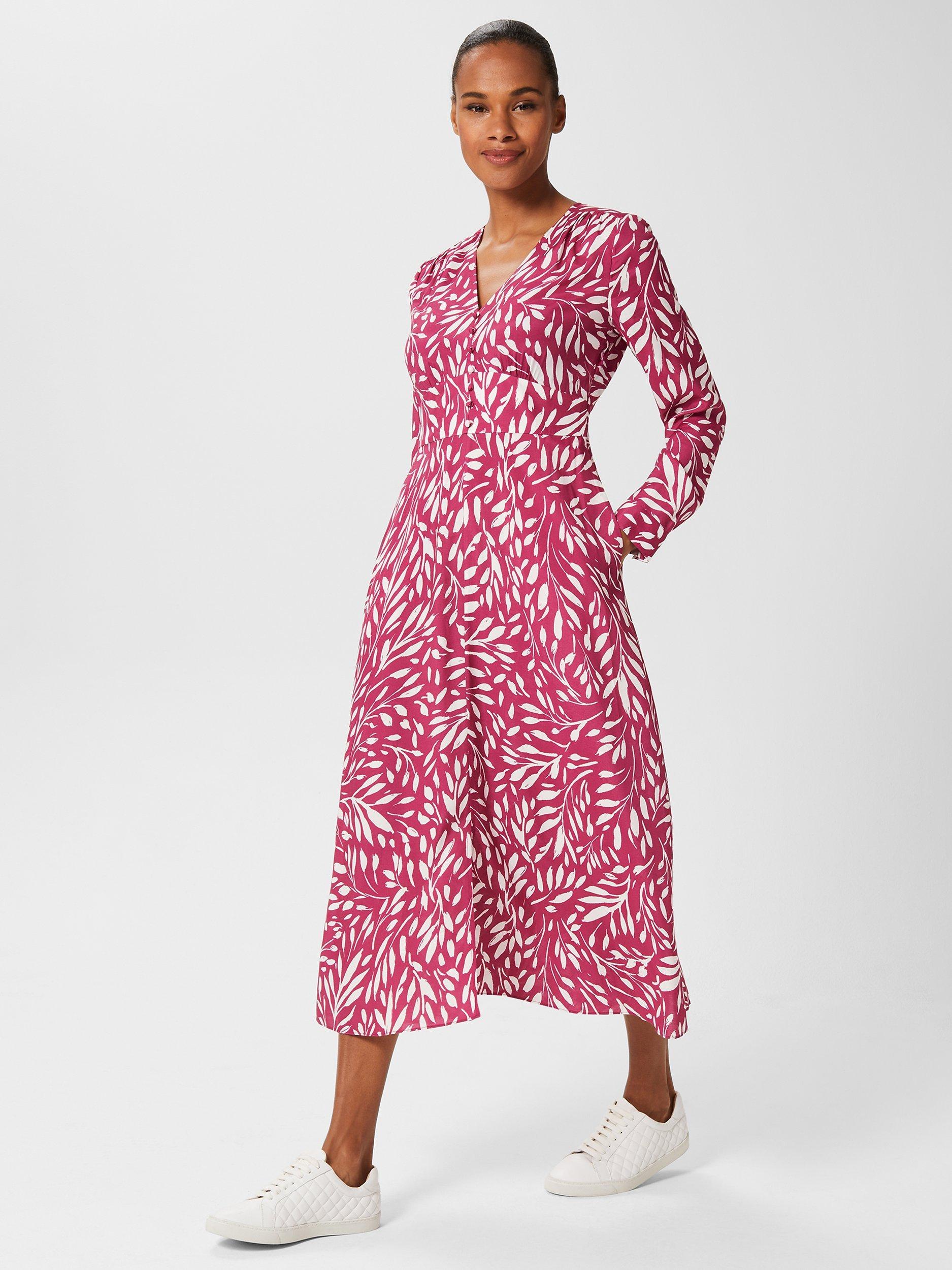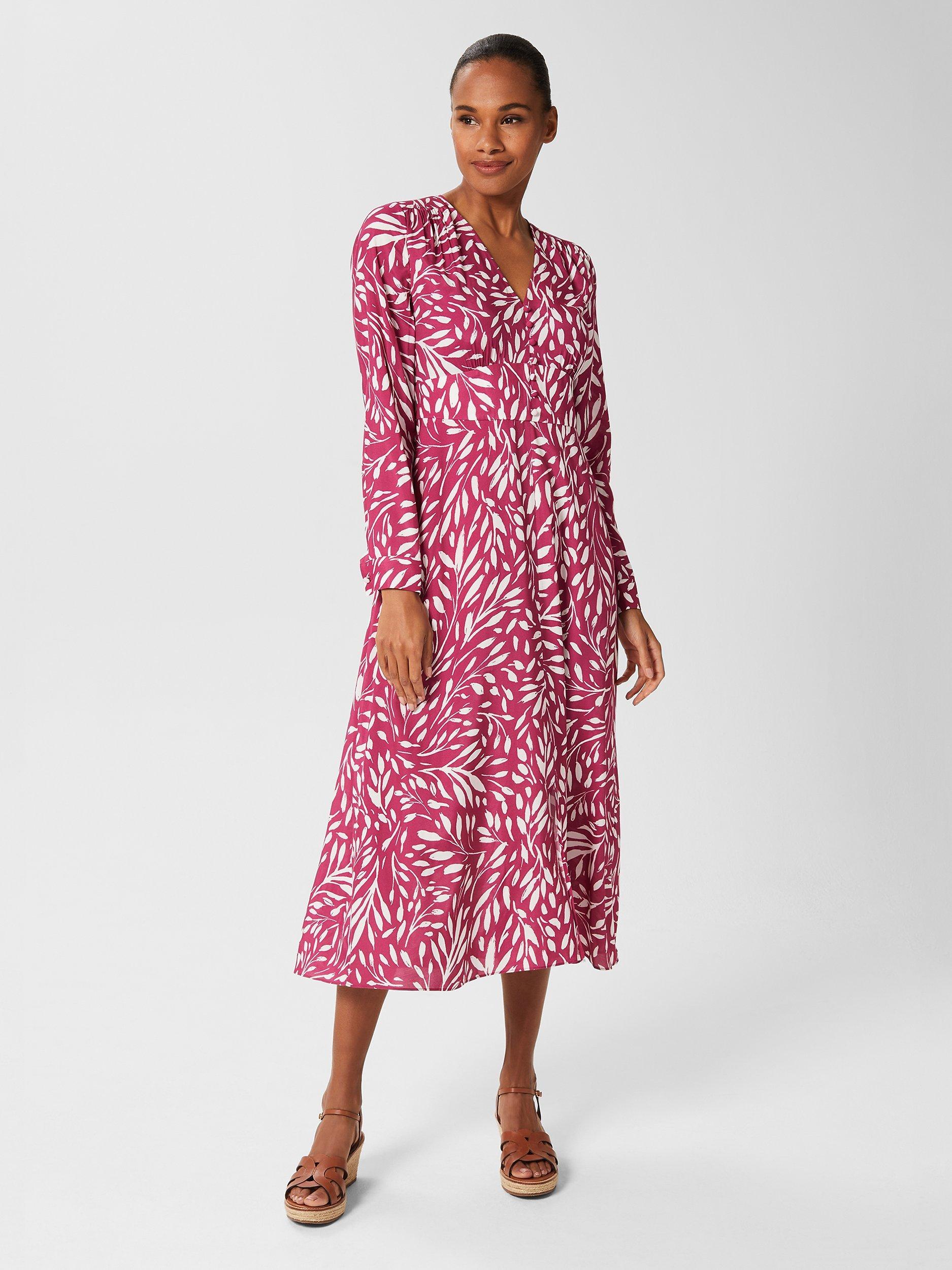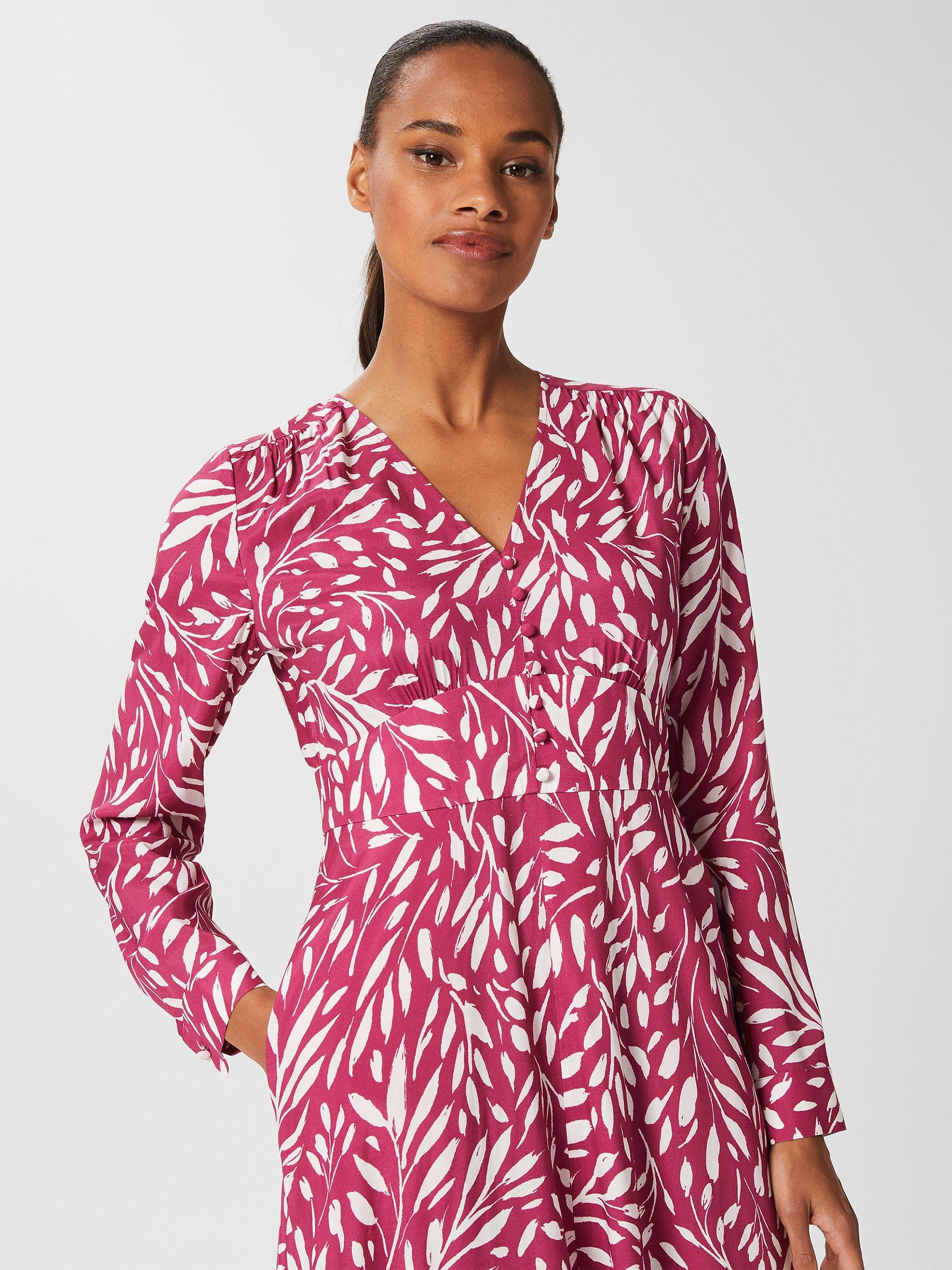 Repping vintage style with its tea shape silhouette, this midi dress by Hobbs is brought to life with a nature-inspired print.