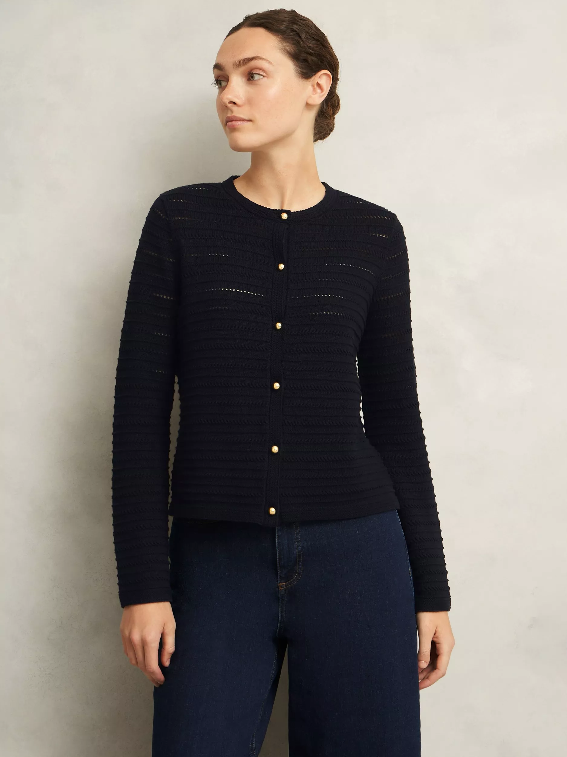 HobbsAmber Crew Neck Button Up Cotton Knit Cardigan