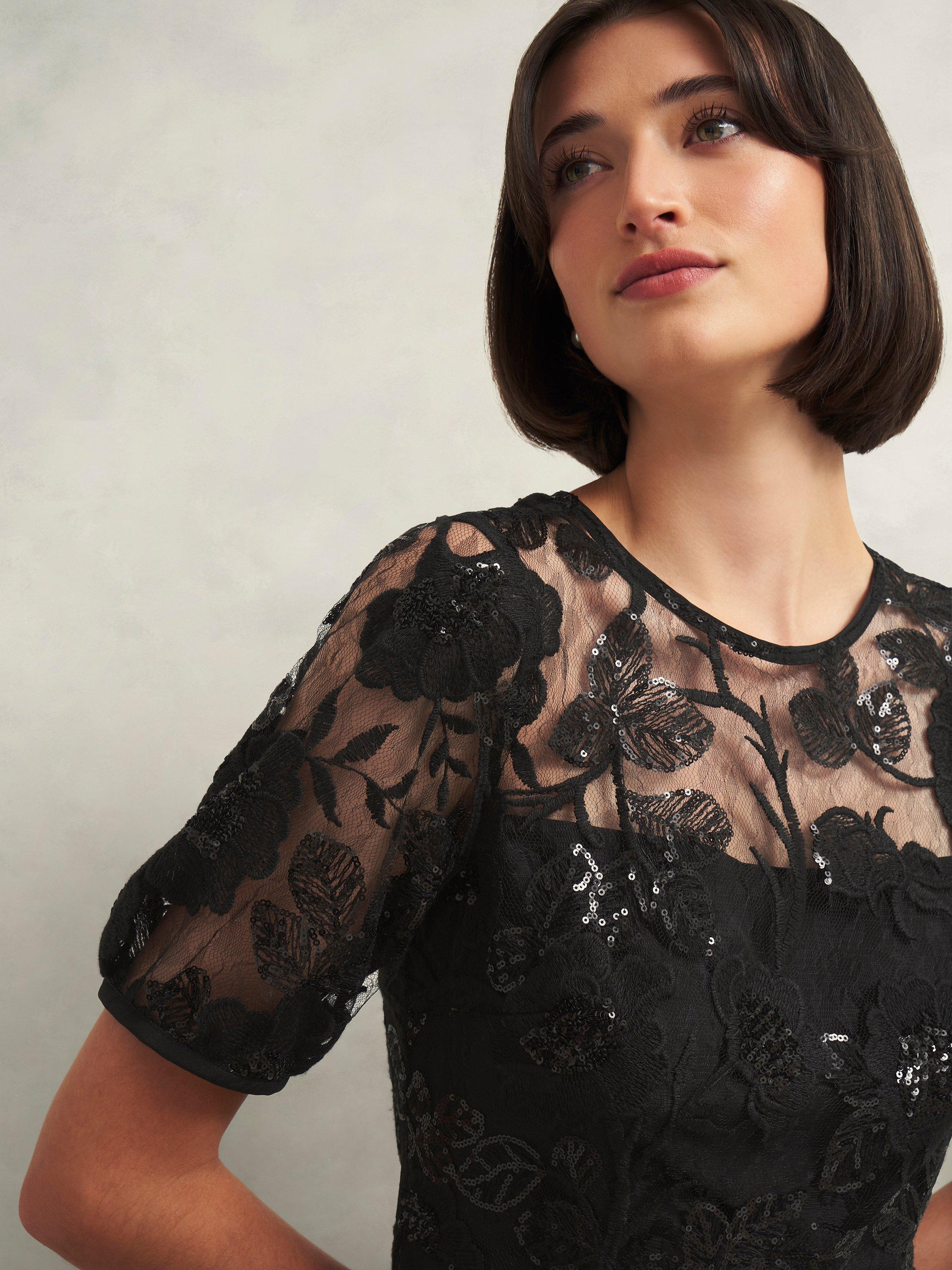 Cue the dress that embodies elegance through tonal sequins, floral lace and sheer accents, Ami was made for special occasions.