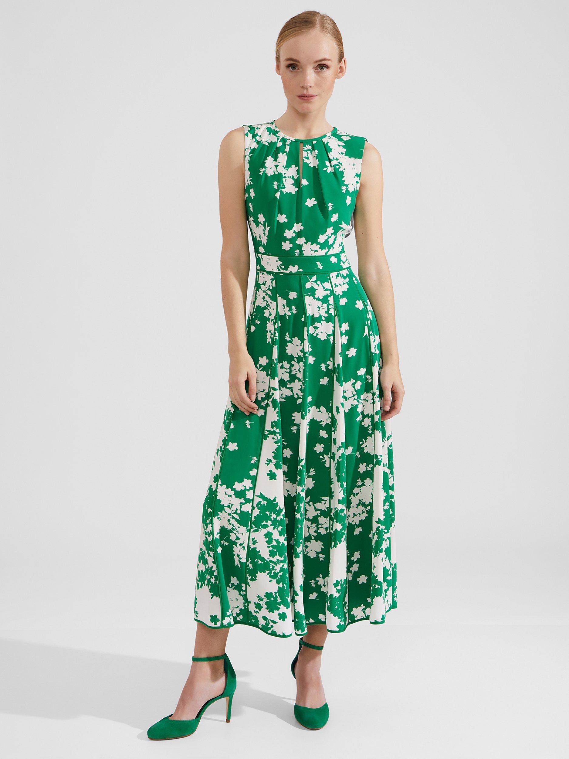 Anchored by an alluring shade of green and adorned with an elegant floral print, the Angelica dress from Hobbs gives a masterclass in entrance-making style.