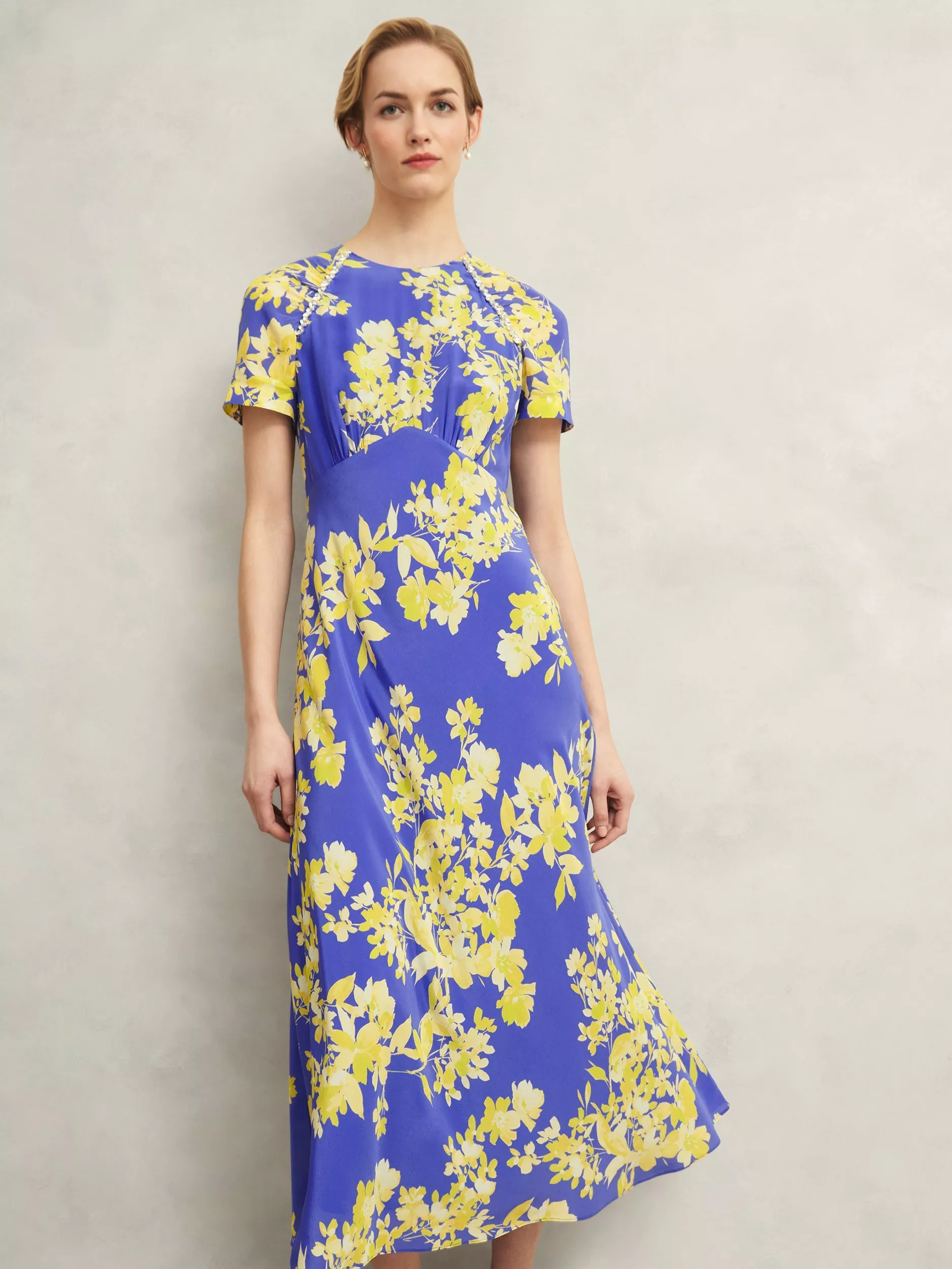 Elevating the floral midi dress through sumptuous silk and diamante embellishments, the Ann dress exudes the essence of summer elegance.