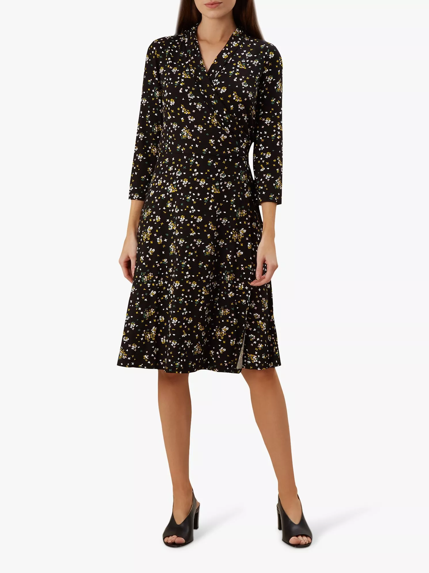 The April dress is an effortless style that takes minutes off your morning routine. In a modern monochrome print, the wrap around design and waist ties will give you a feminine silhouette, while the neckline gives you just the right amount of coverage. It's easy to accessorise too, looking stylish with flats or heels. Partially lined.