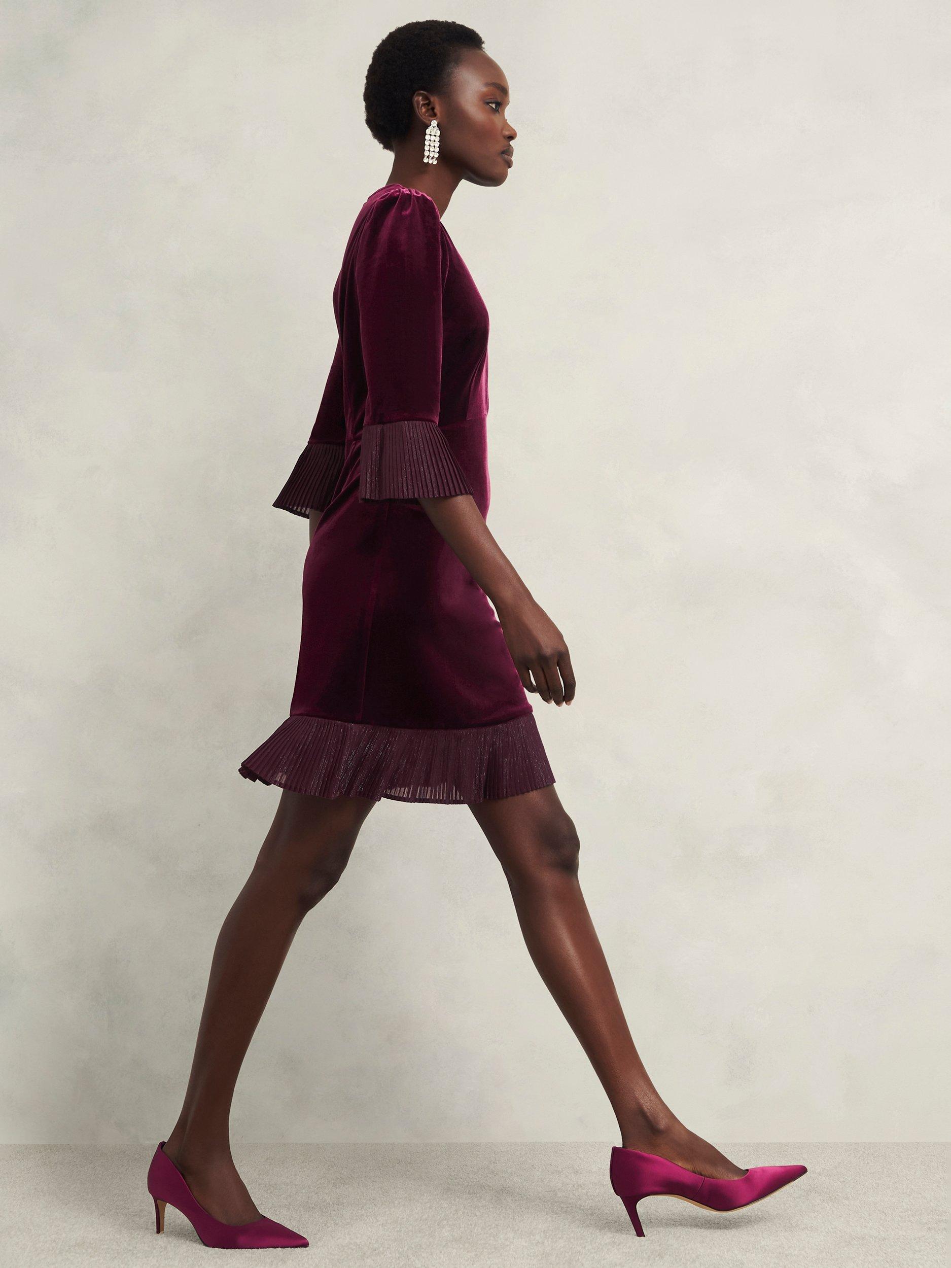 RSVP YES in the Ashley mini dress from Hobbs. Perennially chic, it marries luxurious velvet with metallic trims for a dress that calls for festive season elegance.