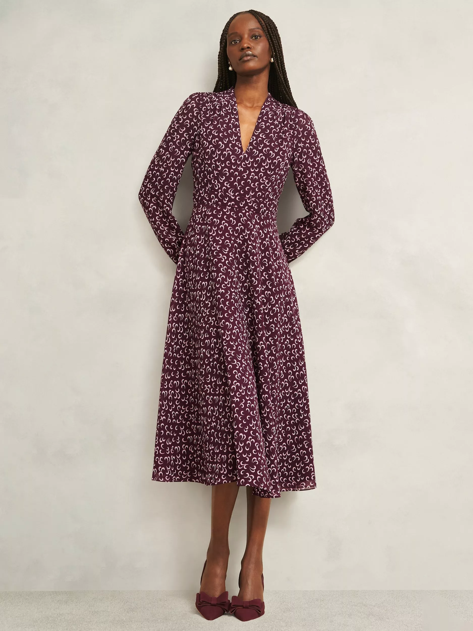 Find inspiration in every detail with this petite midi dress, featuring a geometric pattern, long sleeves, and a flattering v-neck. Clever design choices and practical zip fastening ensure you look sharp and feel comfortable all day.