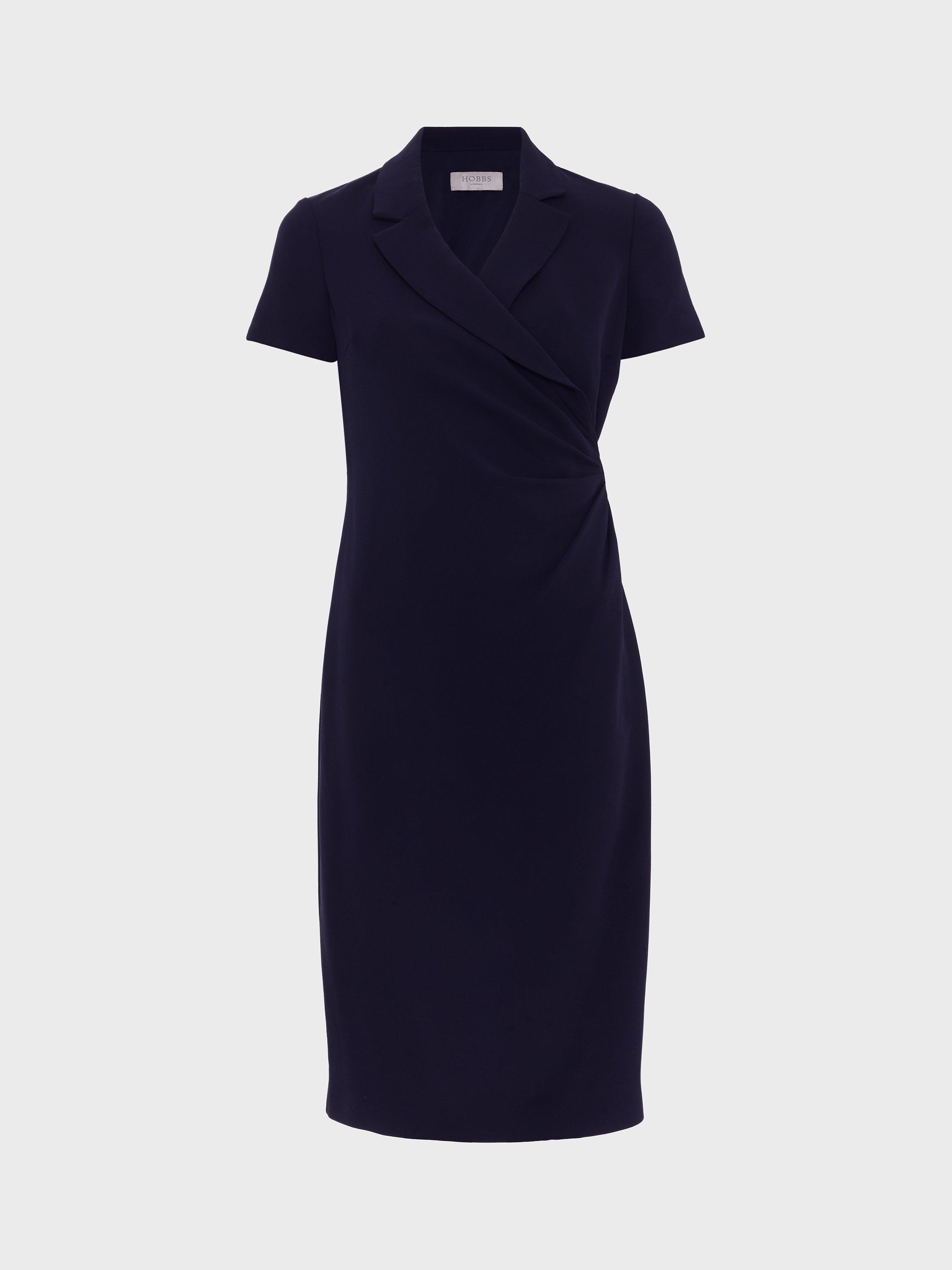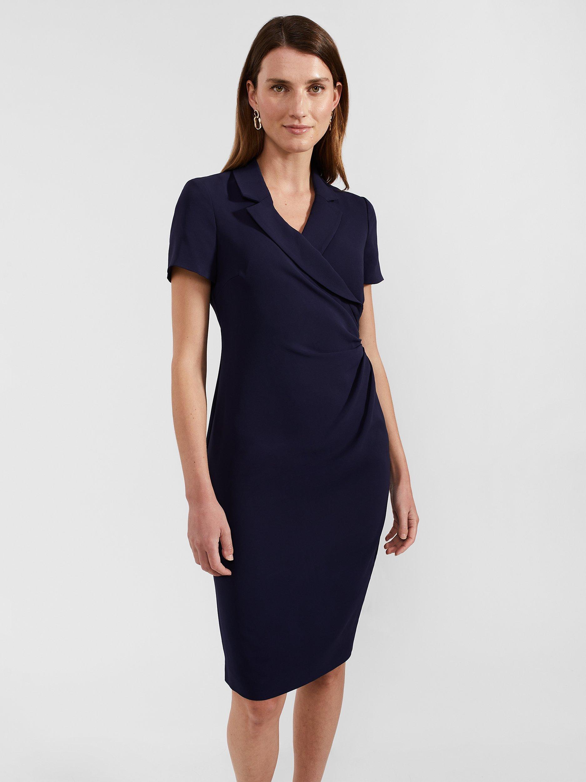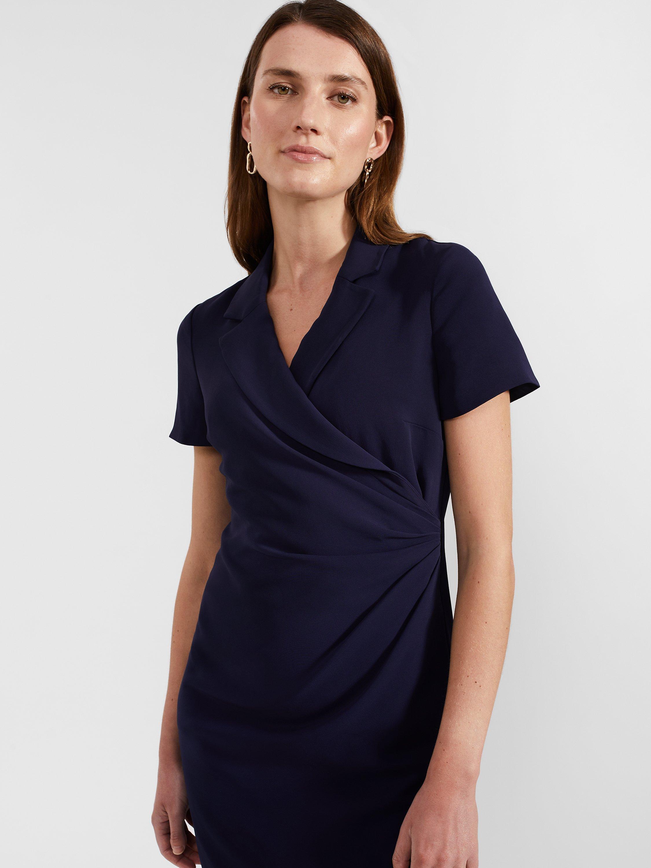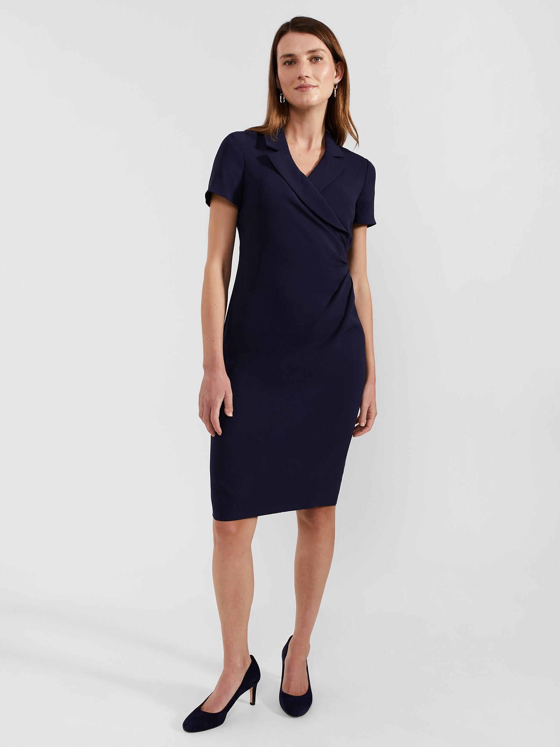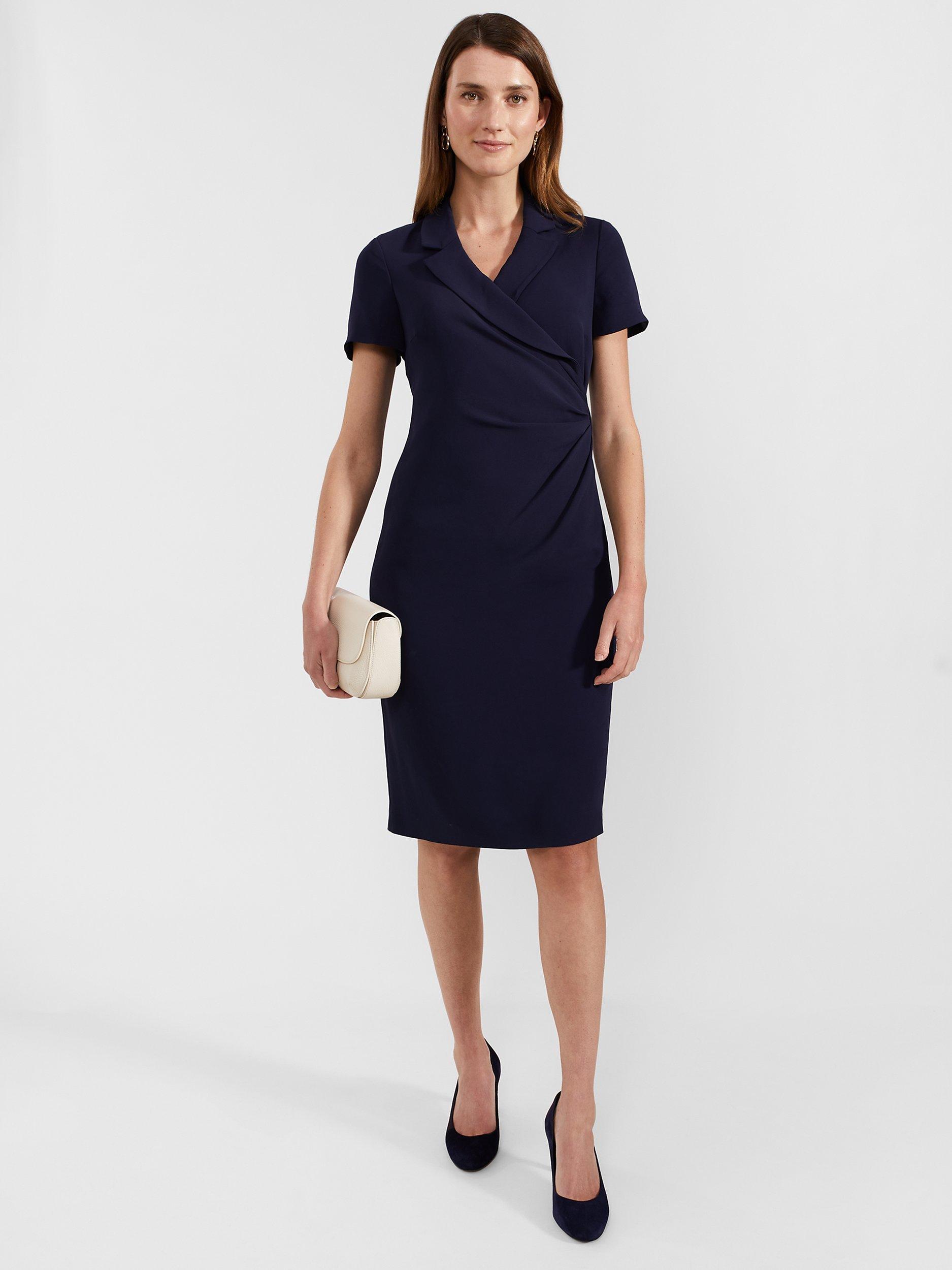 Workday style solutions: opt for sartorial comfort in the Beck dress. Cut in a feminine wrap silhouette with soft lapels and a collared v neck, just add heels.