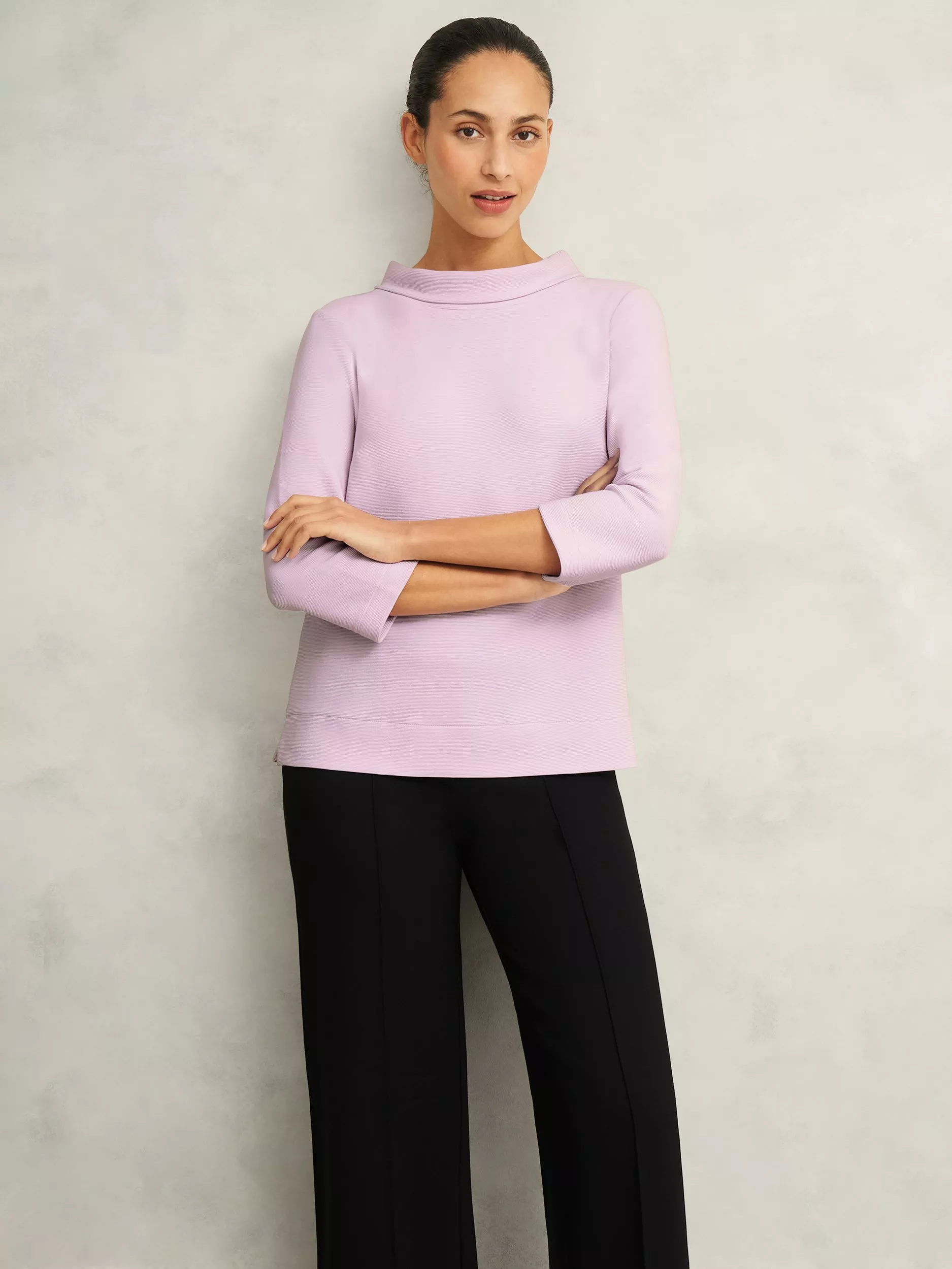 Topped with a roll neckline and three-quarter length sleeves, it is made from a comfortable cotton-rich fabric and is a warming choice when you're tackling stylish everyday dressing in the cold, blustery winter.