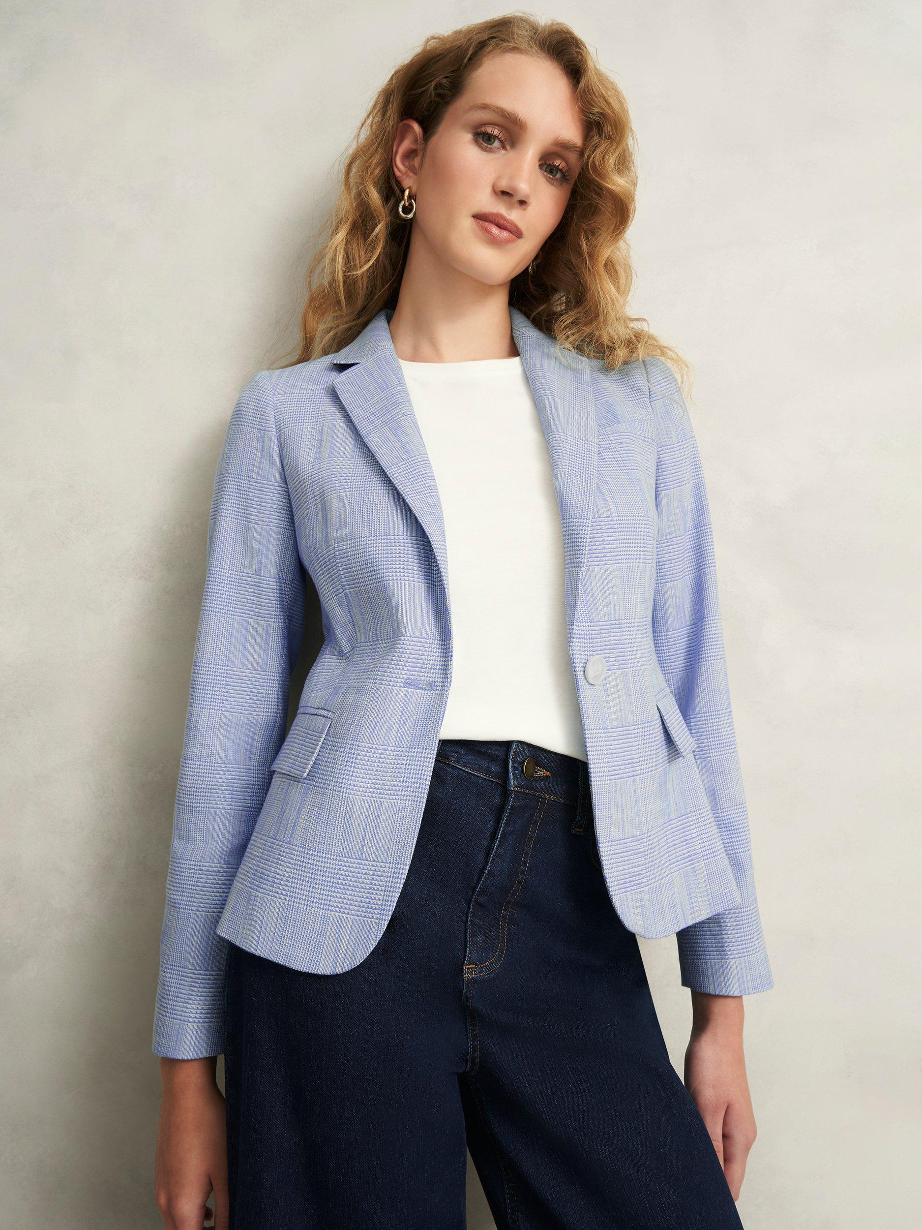 Signature silhouettes. Refreshed for spring and summer, the Blake jacket is a hallmark of Hobbs' timeless heritage with a subtle Prince of Wales check and a tailored cut. It's designed in a single-breasted silhouette with notch lapels, a back vent and pocket detail.