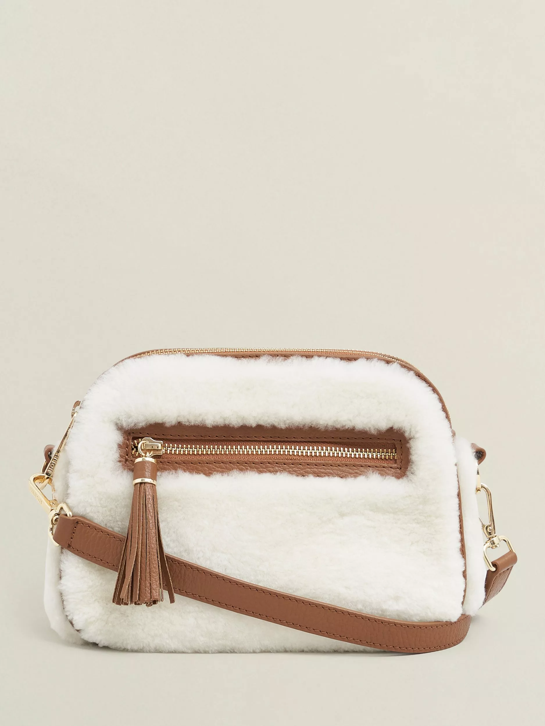 Spinning a textural twist on the best-selling Carlton cross-body bag, this seasonal rendition is updated with shearling accents and tan leather.
