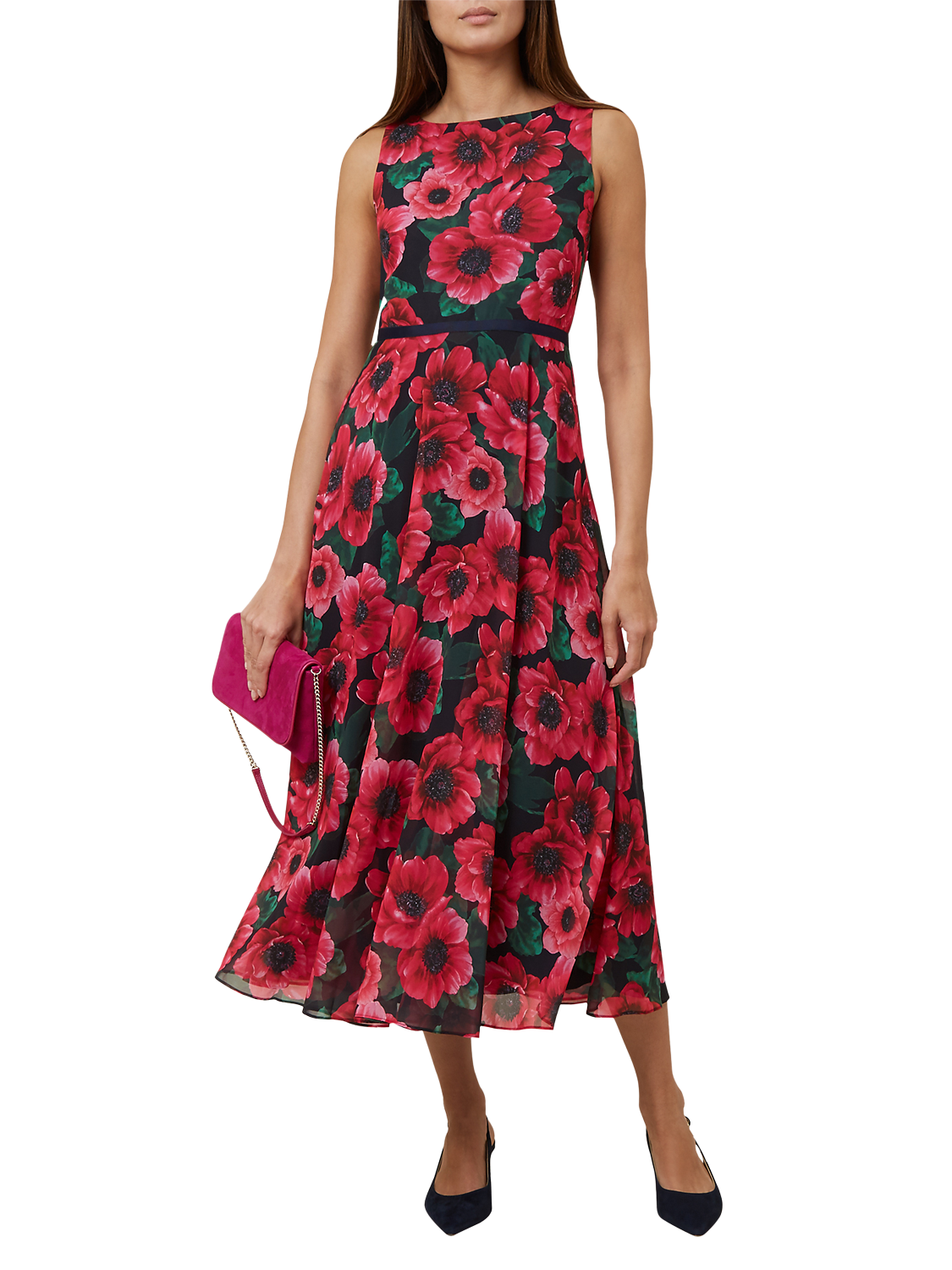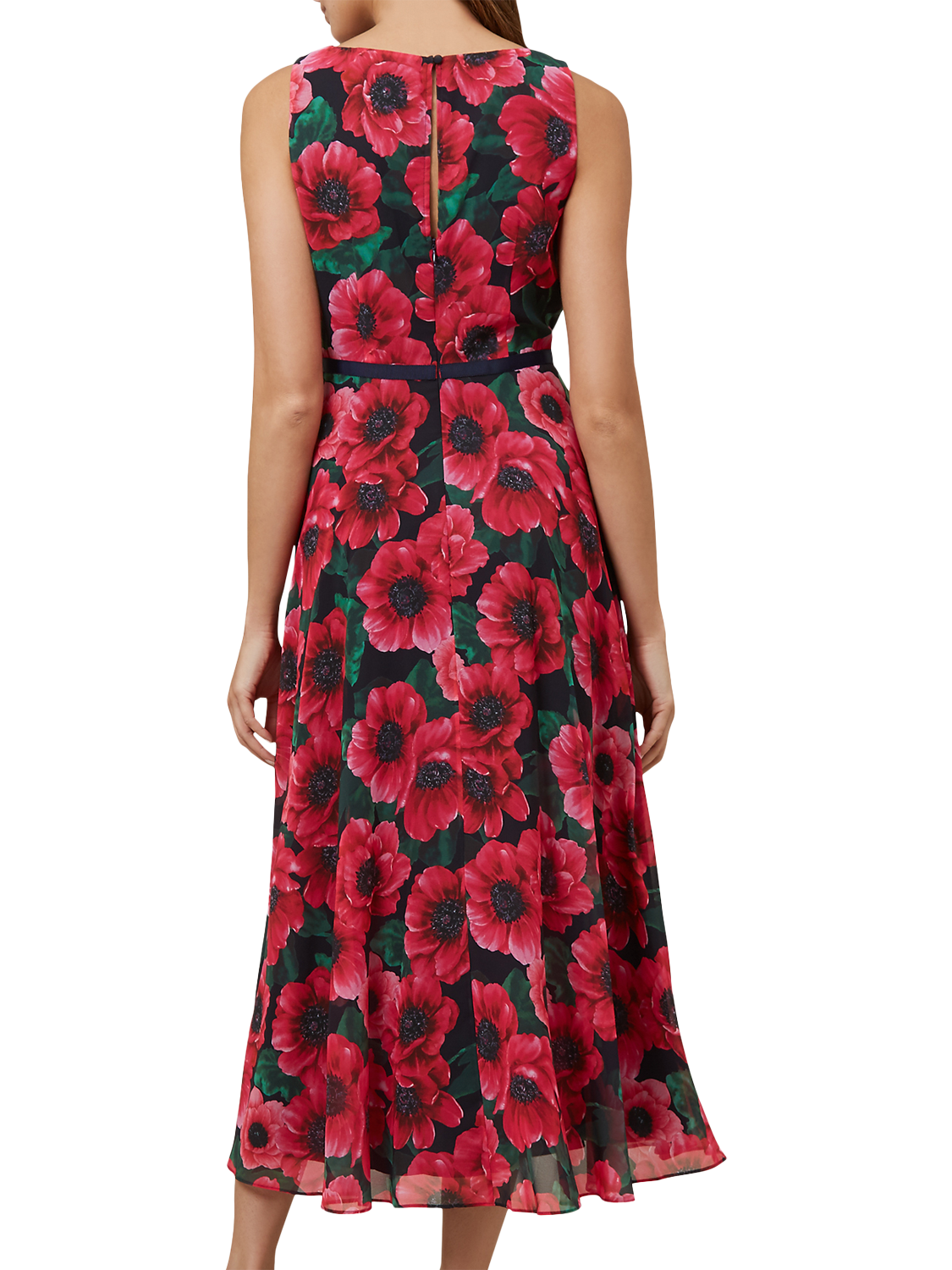 Boasting a delicate floral anemones print throughout, this piece is fashioned from a lightweight Georgette fabric. Designed with femininity in mind, this dress is cut to a figure-flattering shape and the contrasting grosgrain ribbon waistband, which helps to define your waist, adds even more charm. Fully lined with a concealed zip fastening at the back.