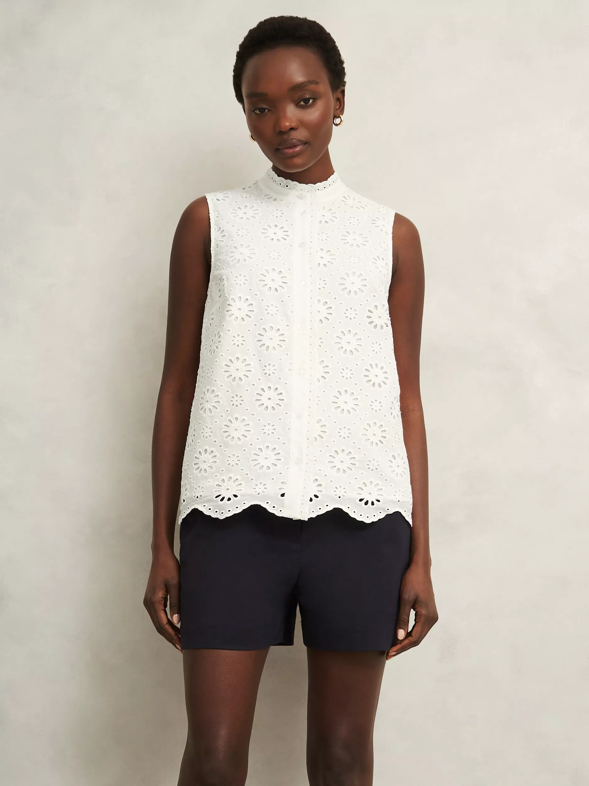 A seasonal solution to cloudless skies and sun-drenched destinations, the broderie Cassie top is a summer staple.