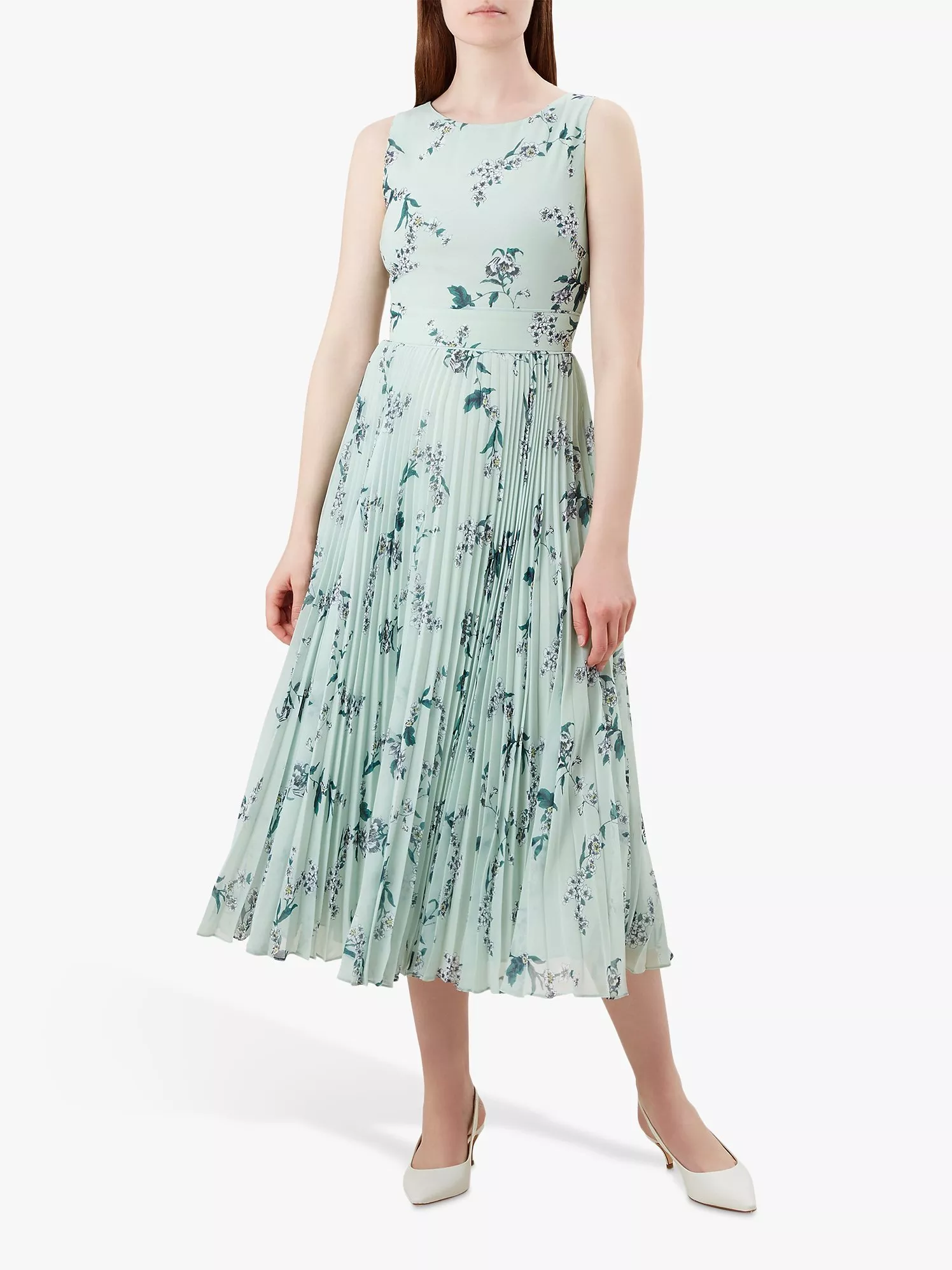 Blooming with a fresh floral print exclusive to Hobbs, the Celeste dress is cut in a feminine silhouette with a fitted bodice and panelled waistband that adds definition just where you want it. A beautiful full pleated skirt invites you to take it for a twirl, style it with ballet flats by day and heels by night.
