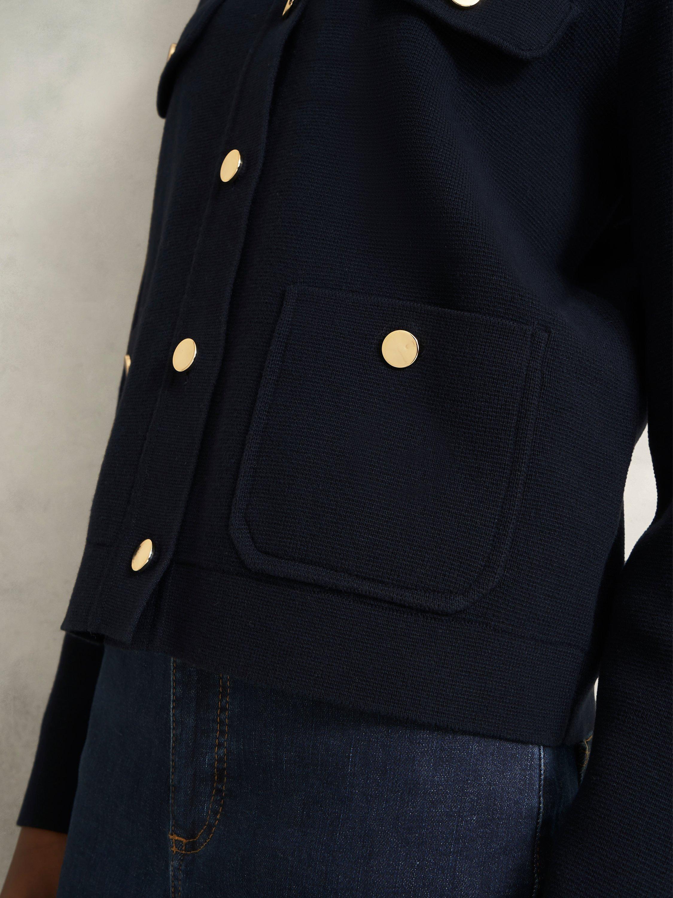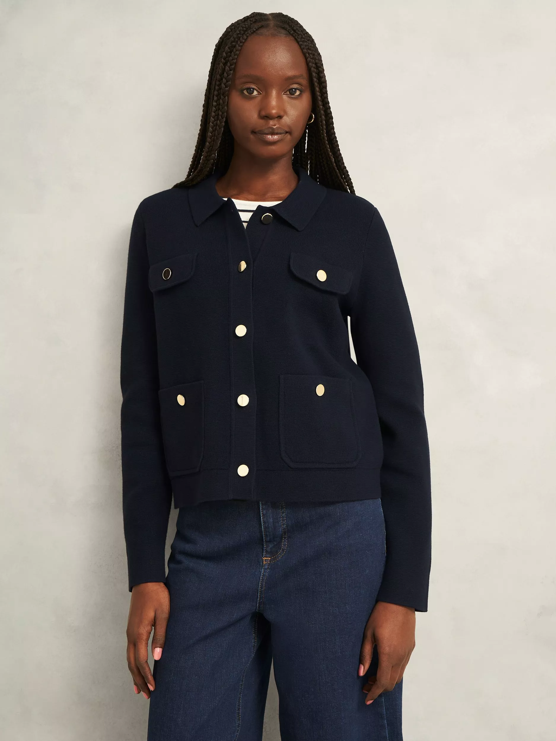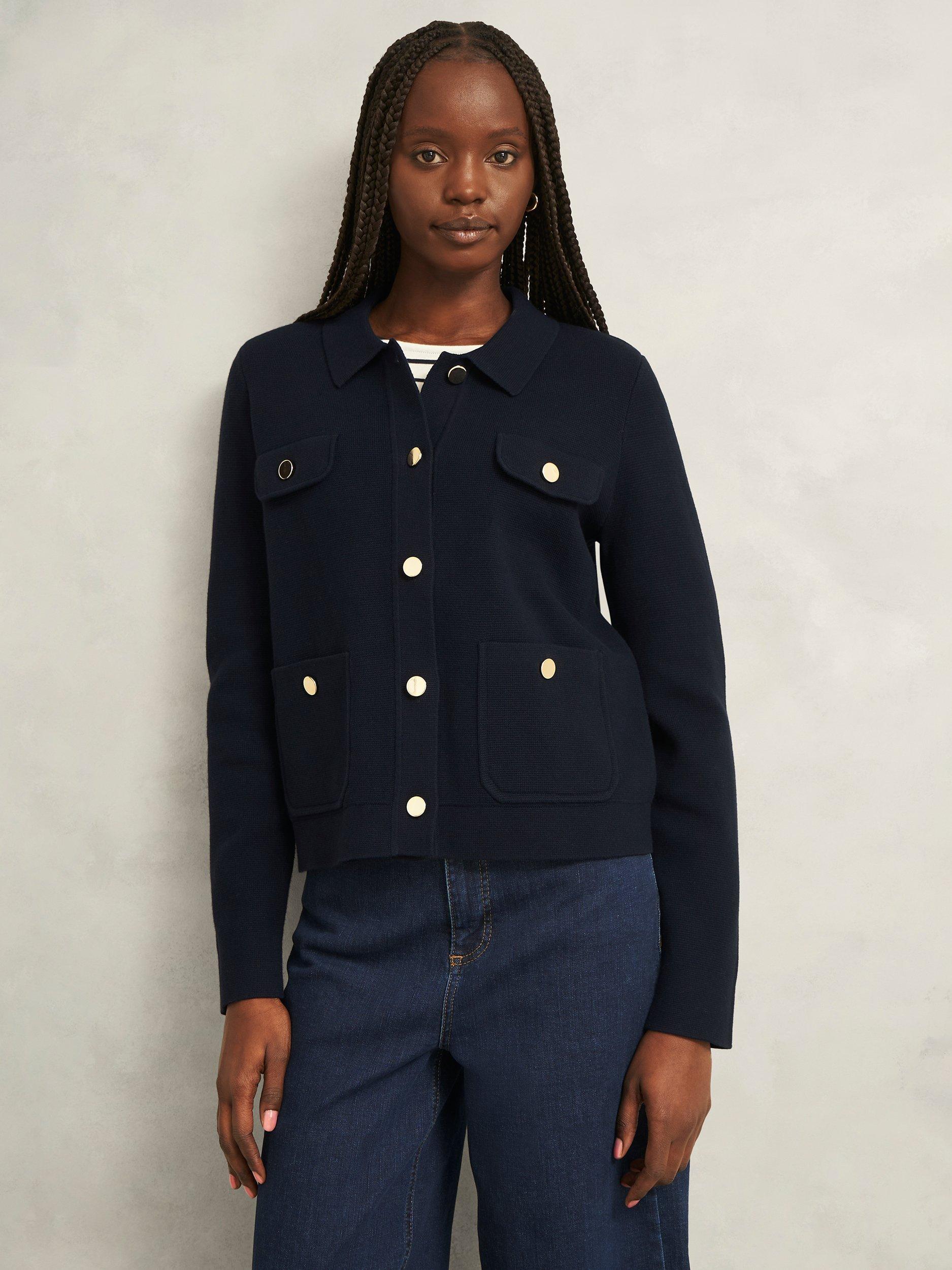 Everyday ease. The knitted jacket that layers over cotton tees as effortlessly as under trench coats, lean on Christa as your new layering staple.
