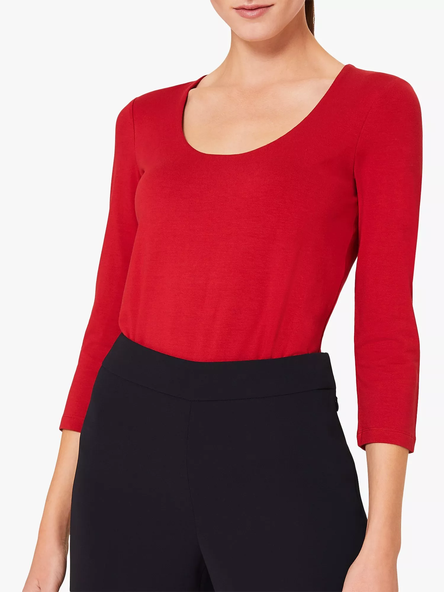 Fashioned with three-quarter-length sleeves and a scoop neck, this top pairs easily with skinny jeans or with a skirt to dress up the look.