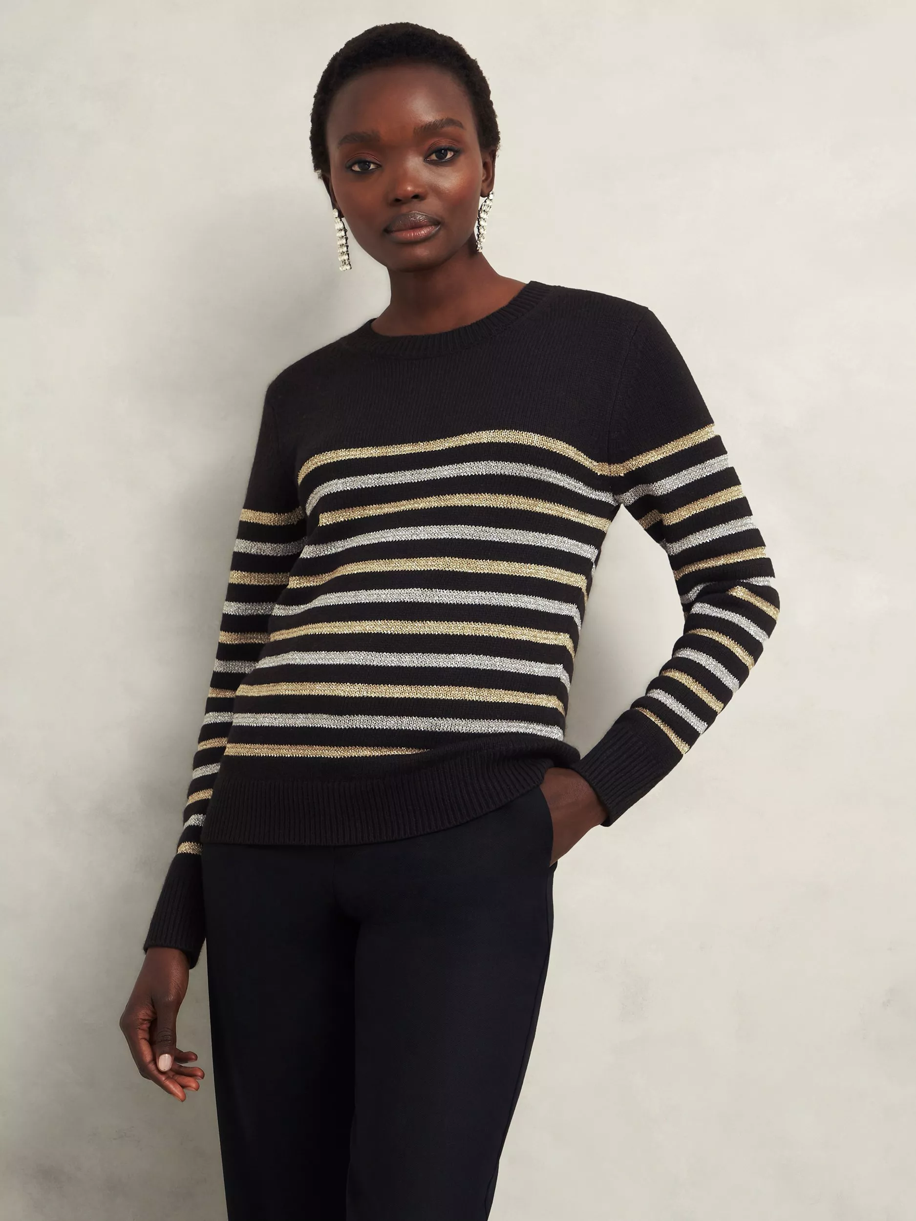 An essential piece for your cold-weather wardrobe, the Destiny striped jumper offers a refined style, practicality and a touch of sparkle. It's crafted from a fabric blend with wool and a hint of cashmere.