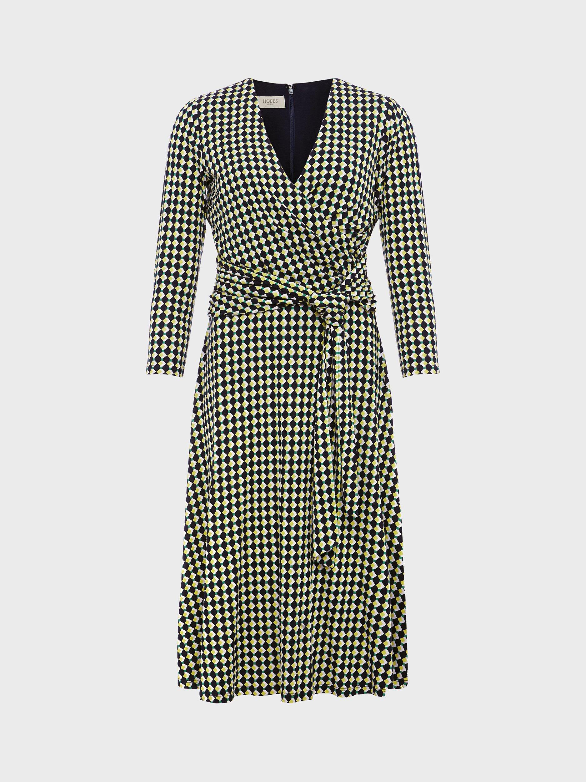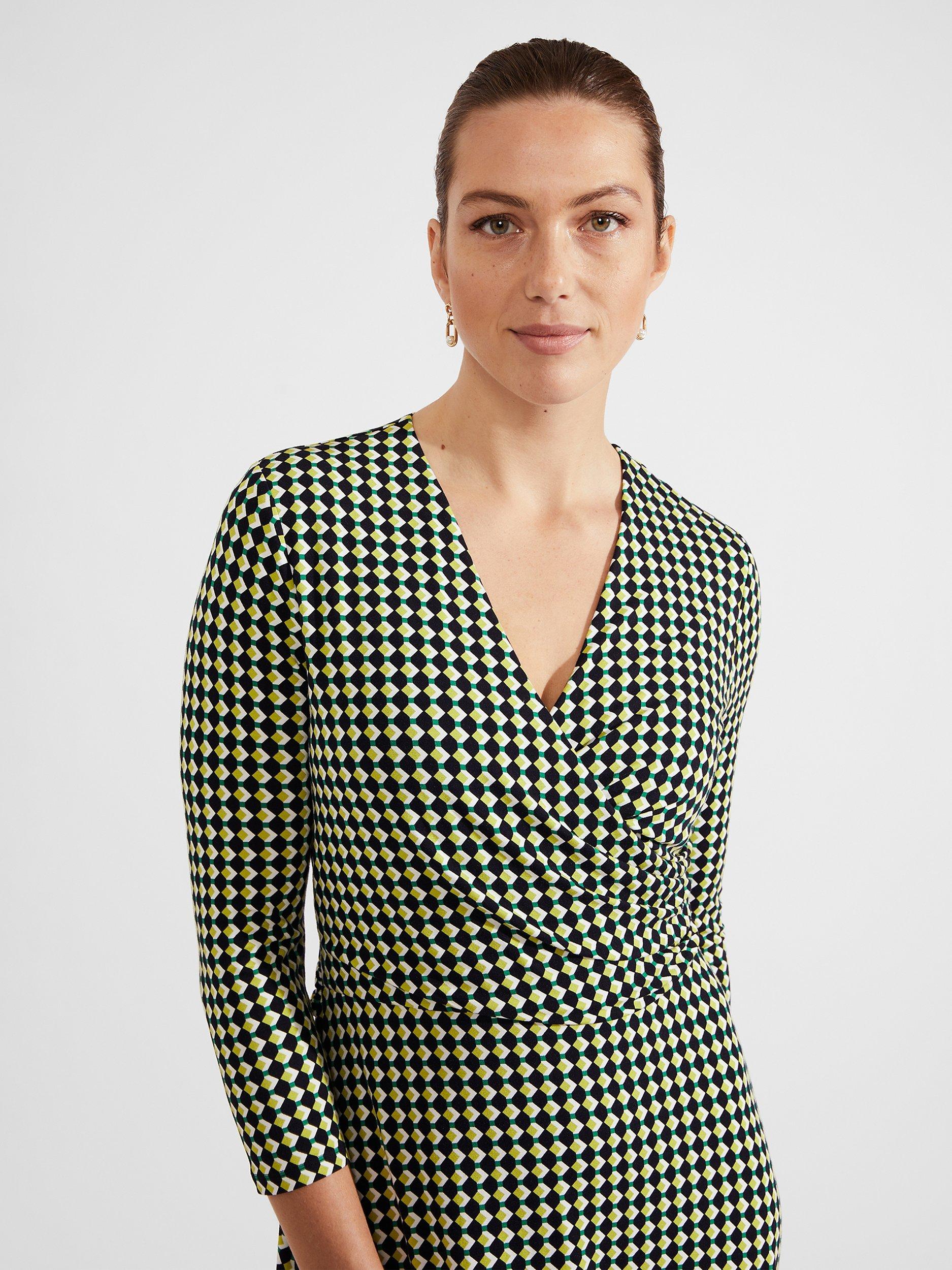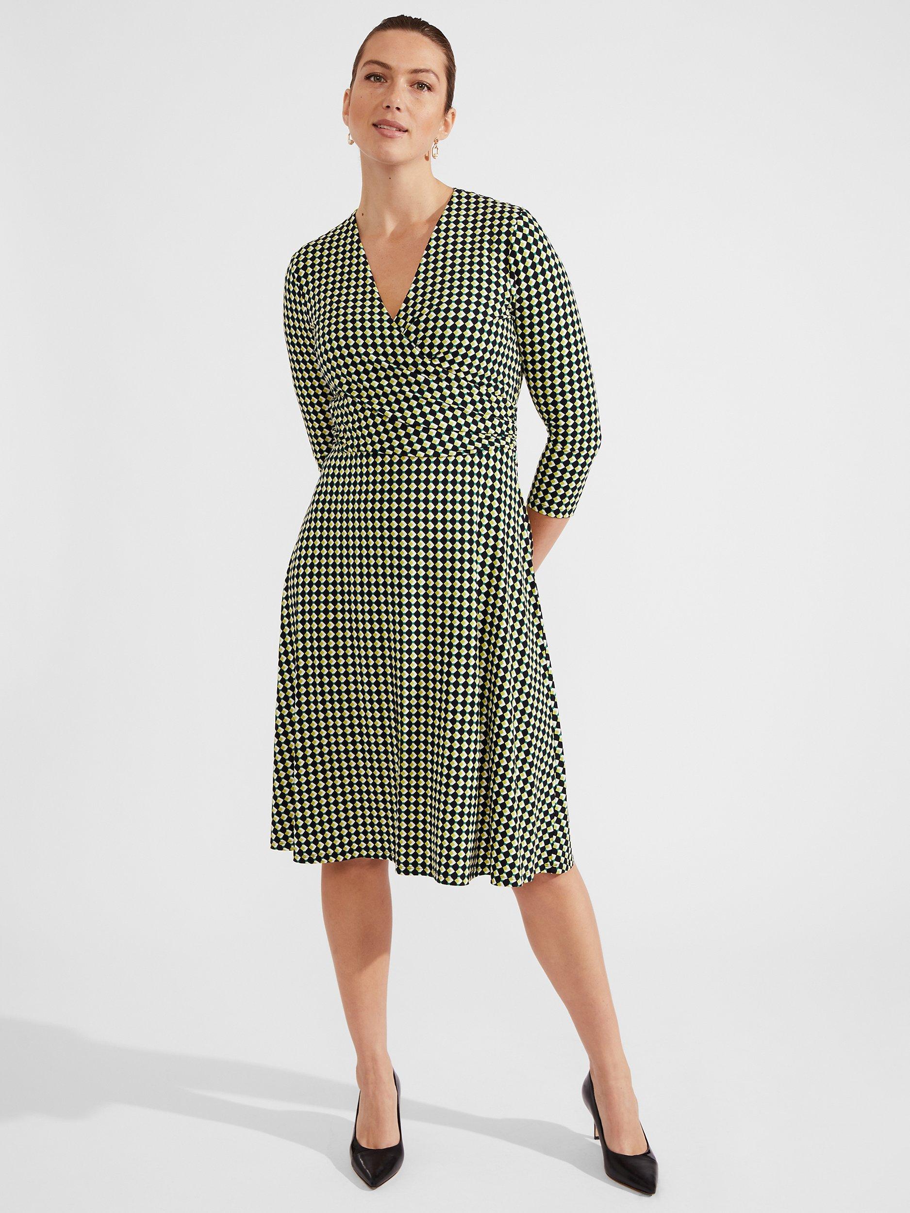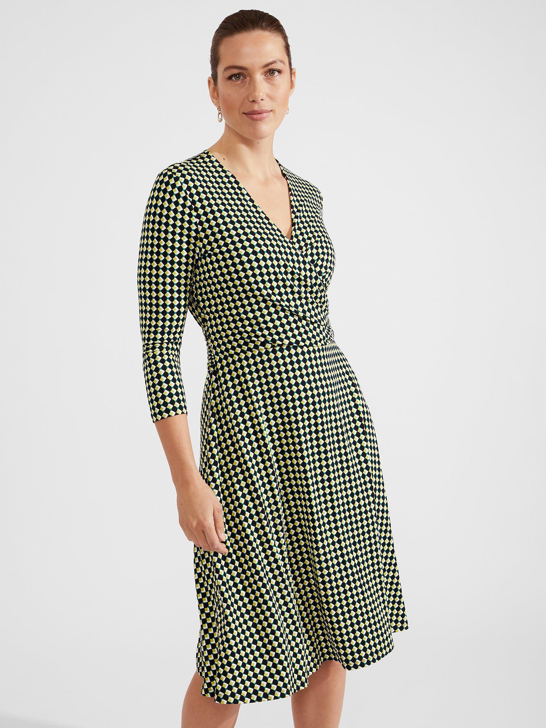 Entirely flattering with its A-line shape, this mid-length dress from Hobbs is made with longevity thanks to its fabrication. With a universally flattering v-neckline and long sleeves, it is awash in cheerful gingham.