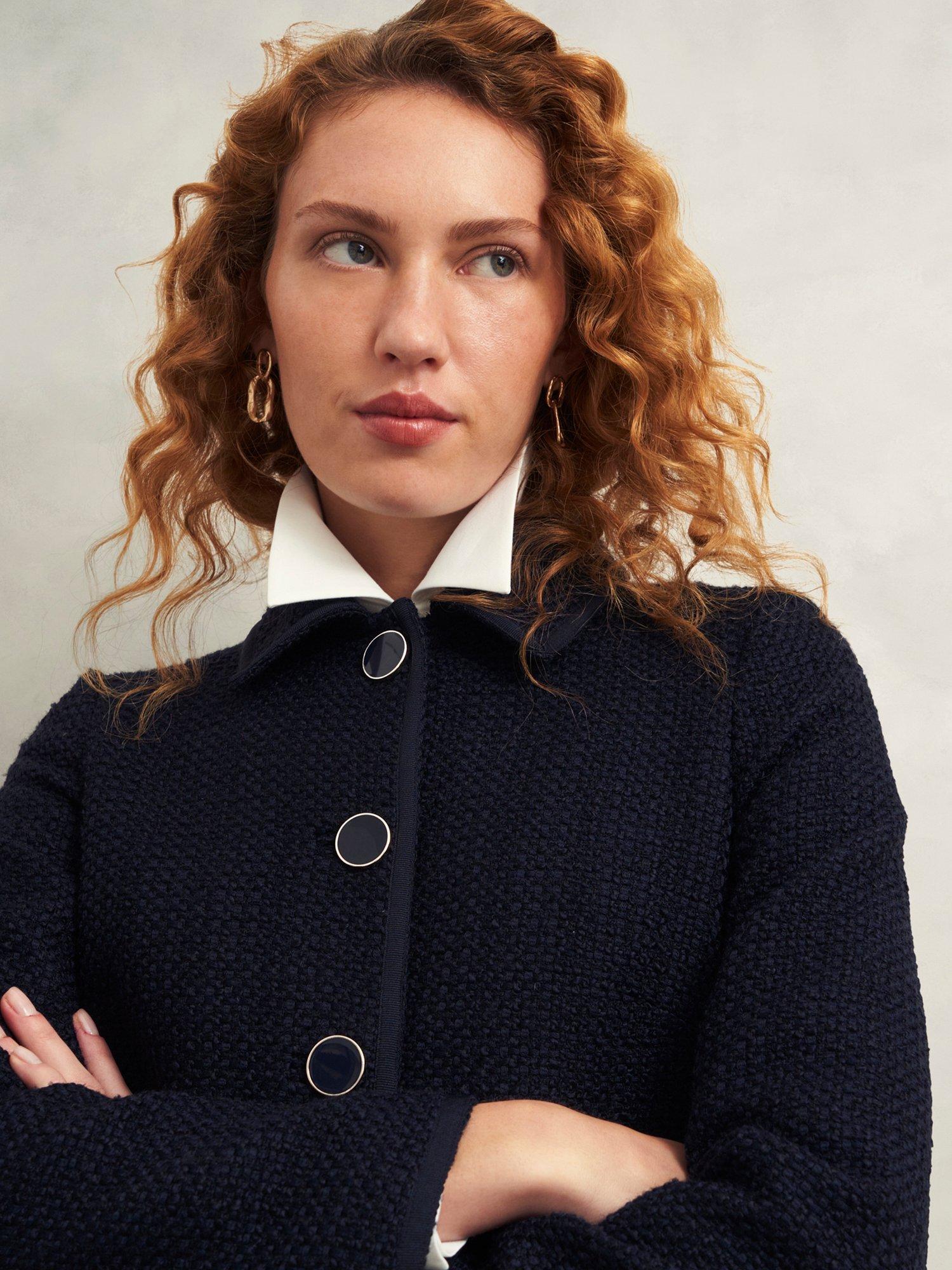 Poised and polished, the Elaine tweed coat exudes timeless appeal with a tailored aesthetic that's work-to-weekend approved.