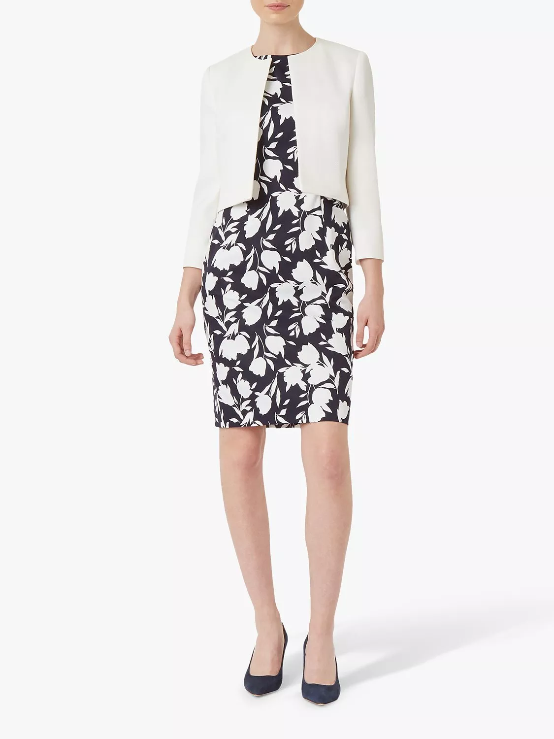 Introduce a stylish and versatile cover-up into your wardrobe with the Elize jacket from Hobbs. Subtly textured with a luxurious finish and a clean, neatly fitting silhouette, this elegant style works perfectly with a range of dresses and occasionwear and as an added bonus it also looks extremely chic over jeans.