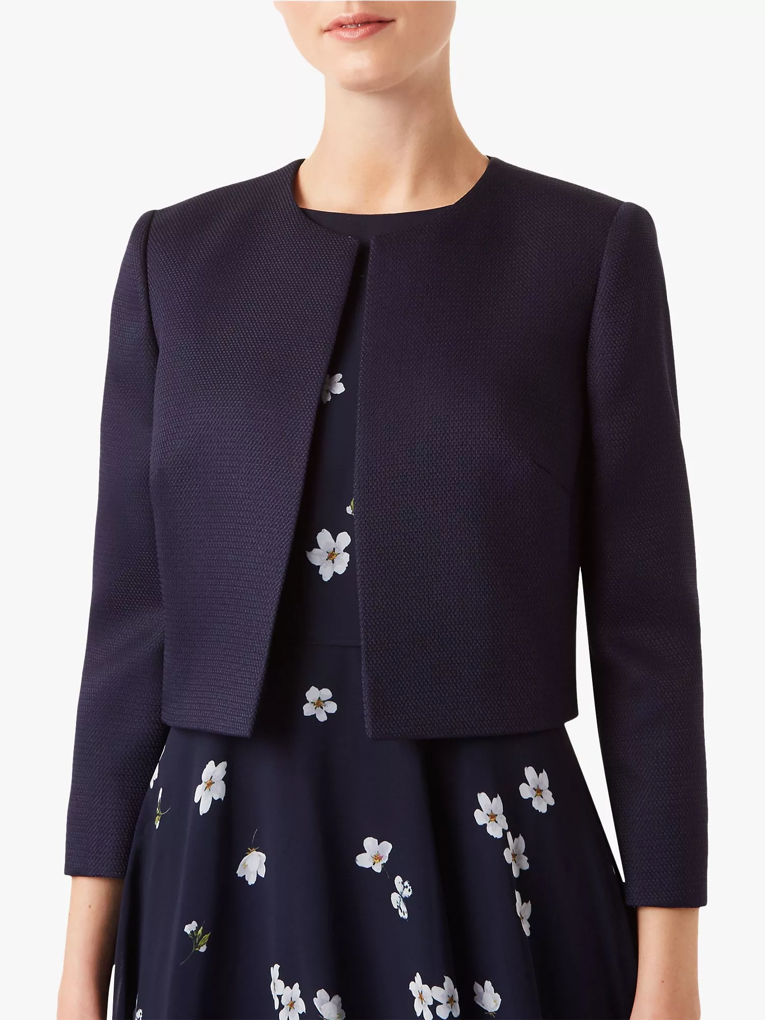 Introduce a stylish and versatile cover-up into your wardrobe with the Elize jacket from Hobbs. Subtly textured with a luxurious finish and a clean, neatly fitting silhouette, this elegant style works perfectly with a range of dresses and occasionwear and as an added bonus it also looks extremely chic over jeans.