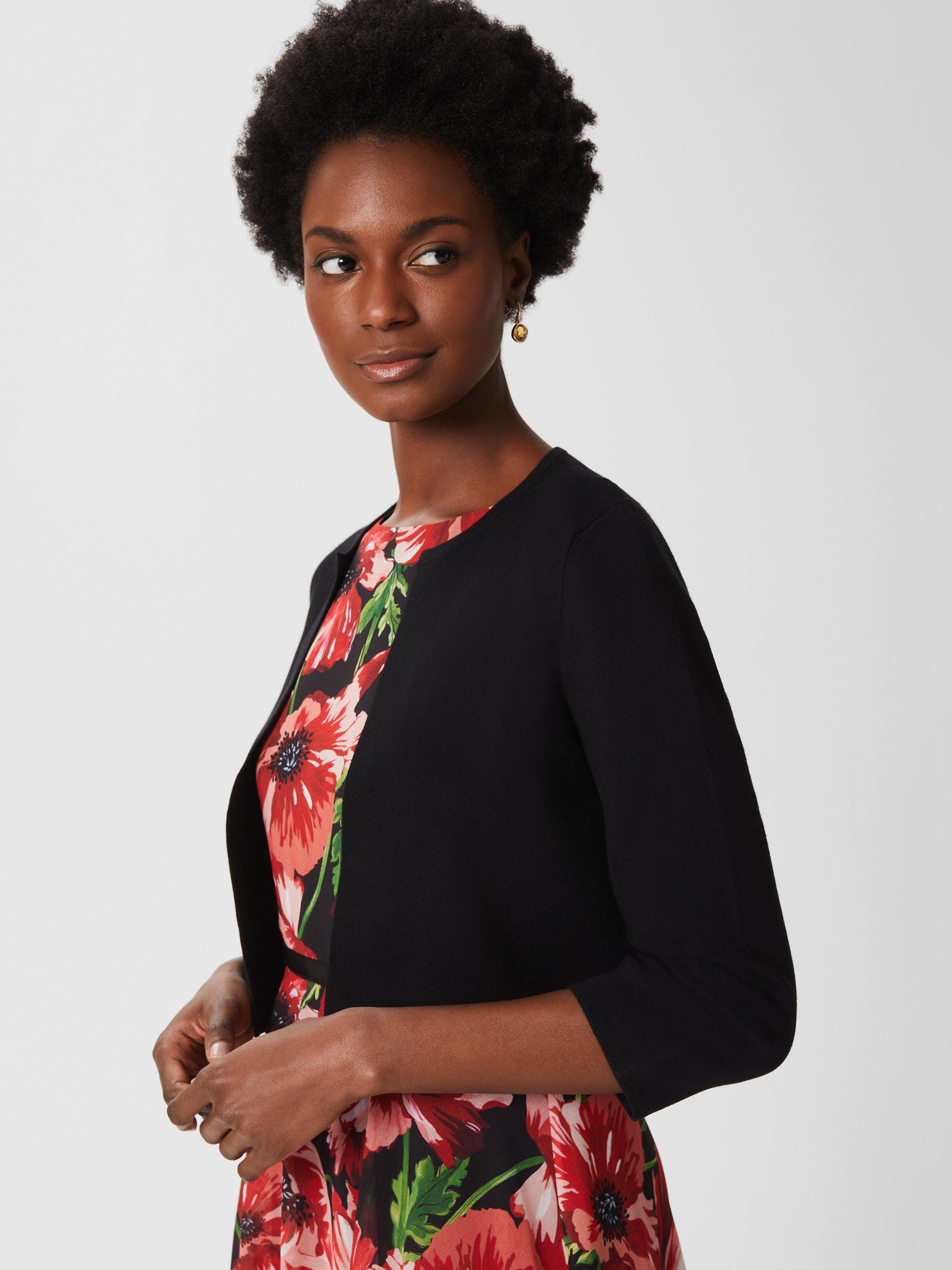 The Ella cardigan from Hobbs is the ideal cover-up with its clean silhouette and cropped length. In a contemporary, edge-to-edge design with three-quarter length sleeves, slip this soft knit on over occasion looks to stay warm without taking away from the rest of your outfit.
