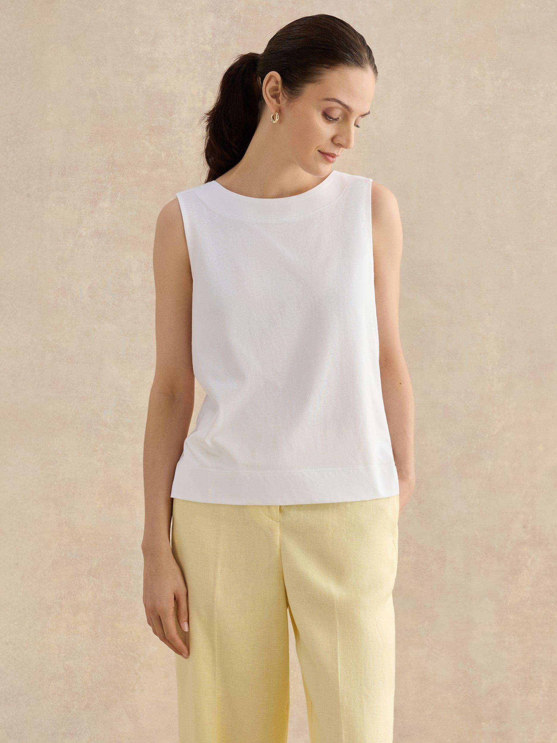 HobbsFern Back Button Sleeveless Top, White