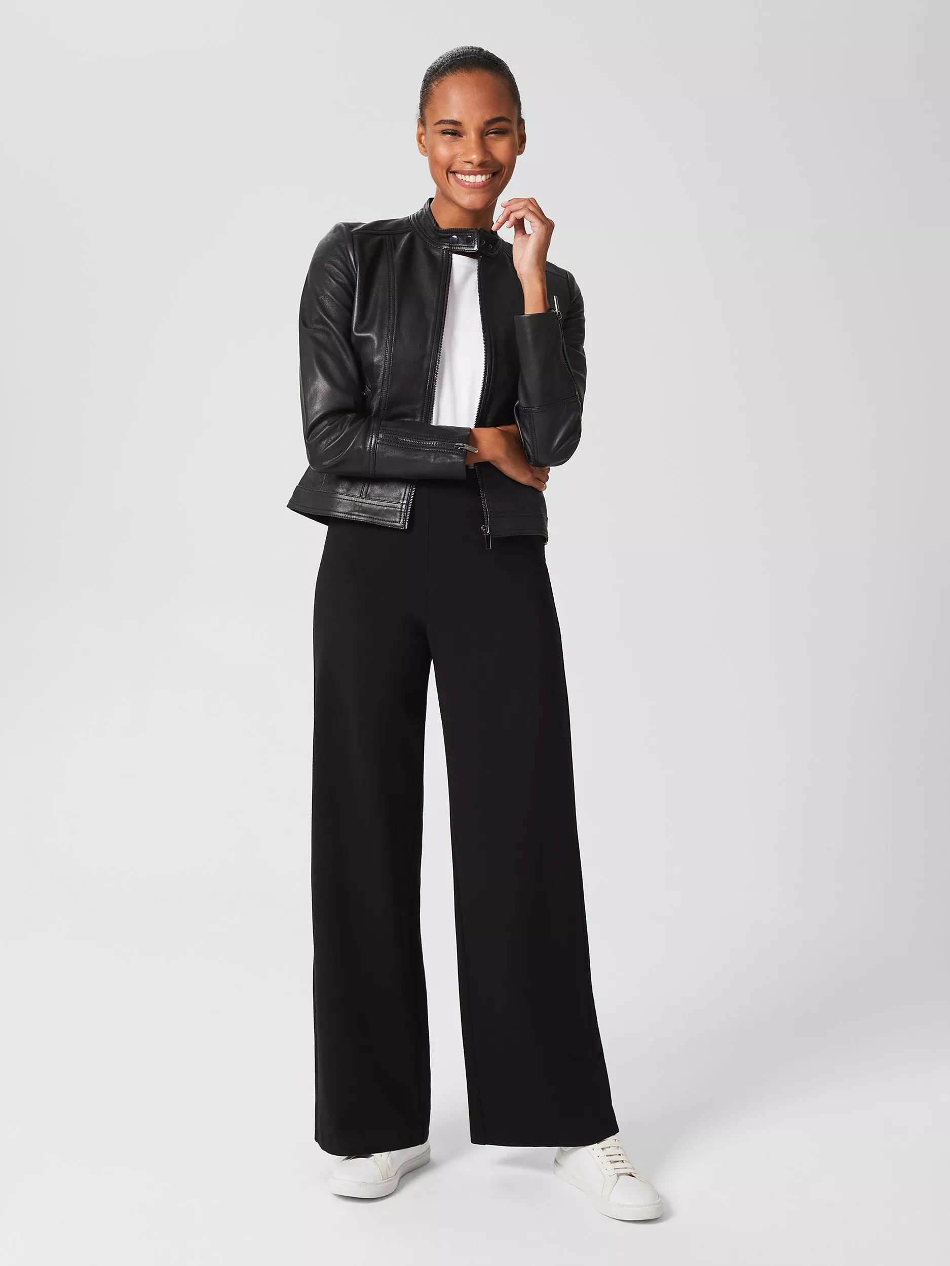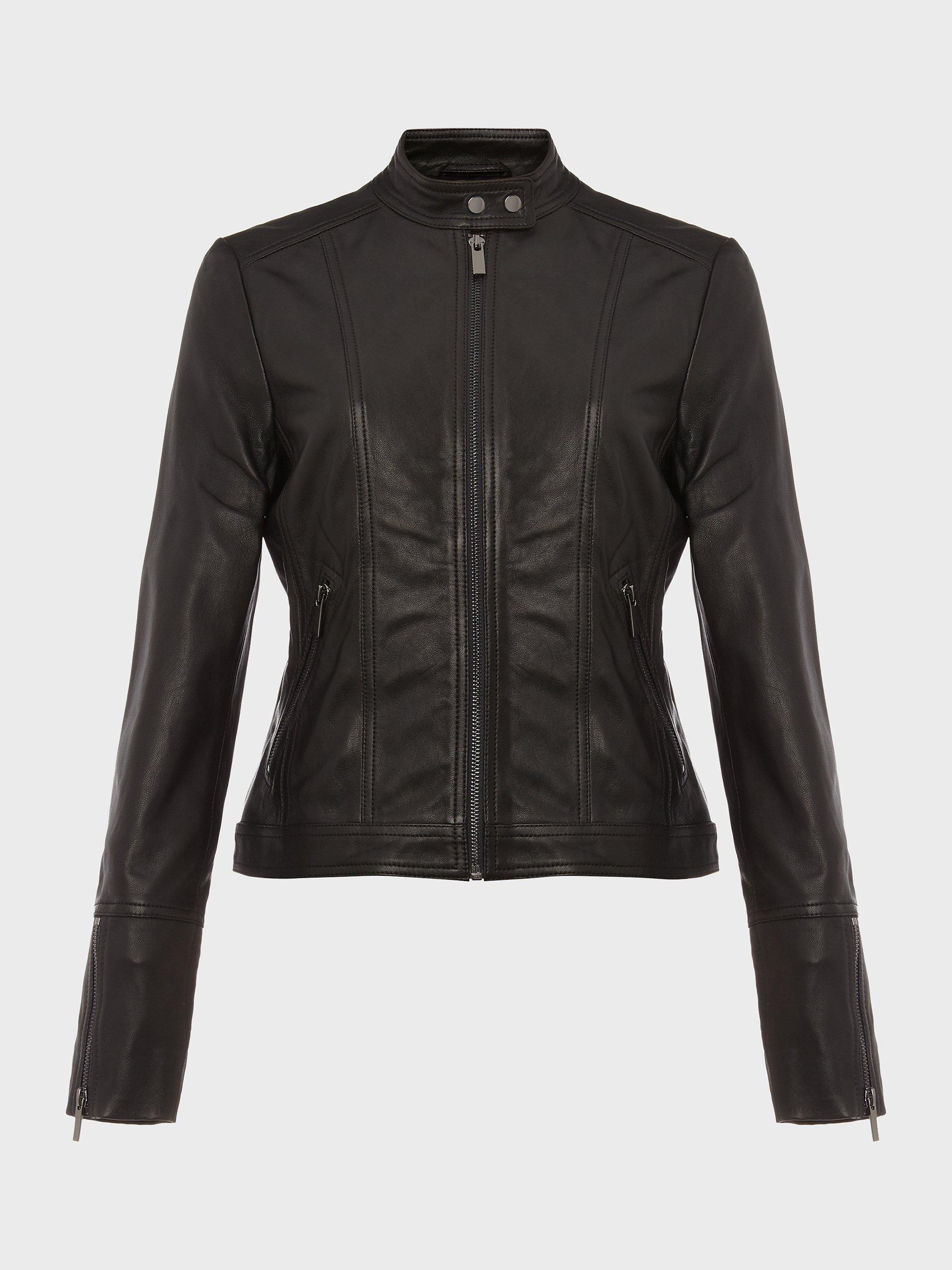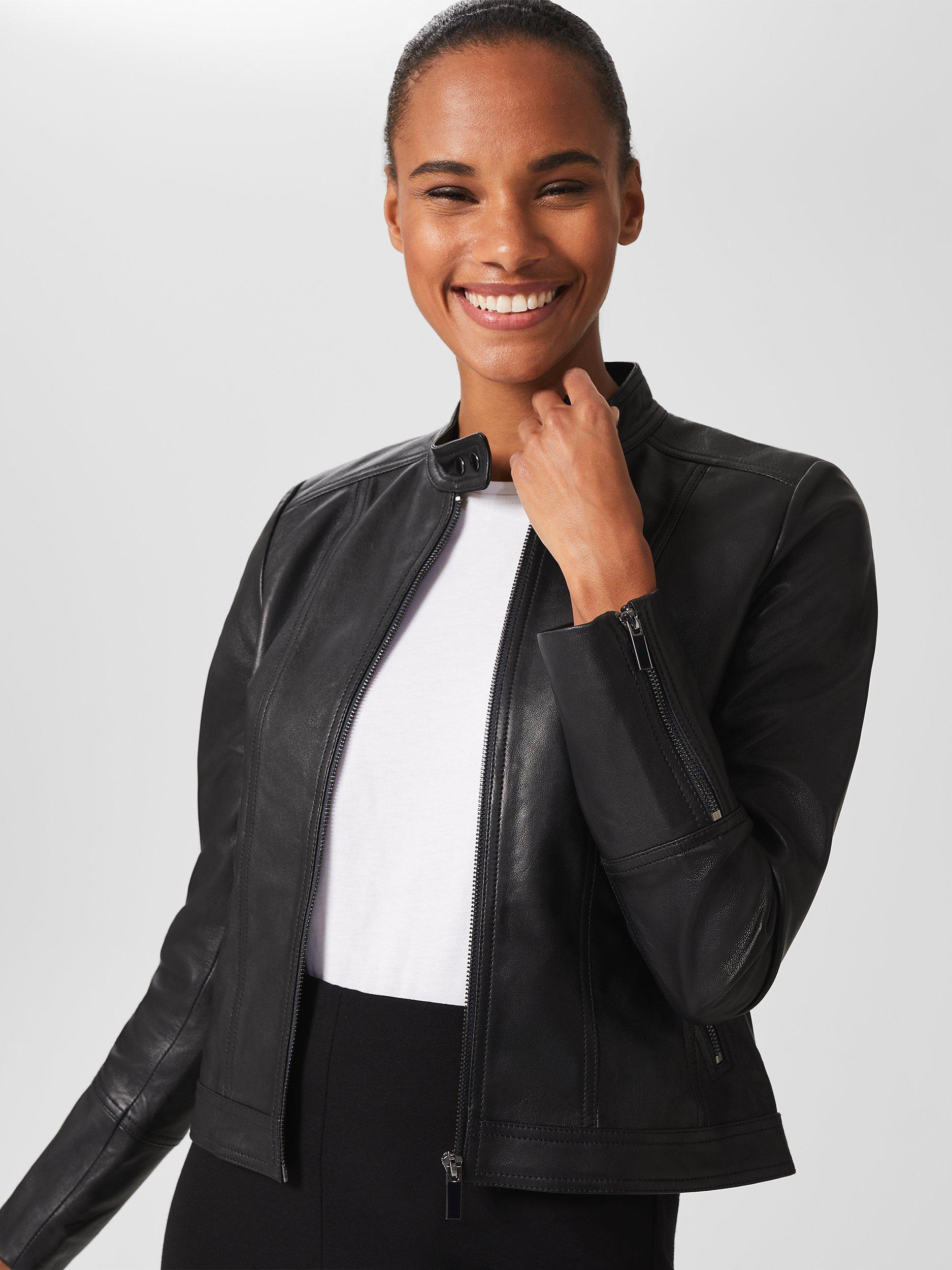 Completing your look with an edgy finish, this biker jacket by Hobbs sits at the hip for versatile coverage.