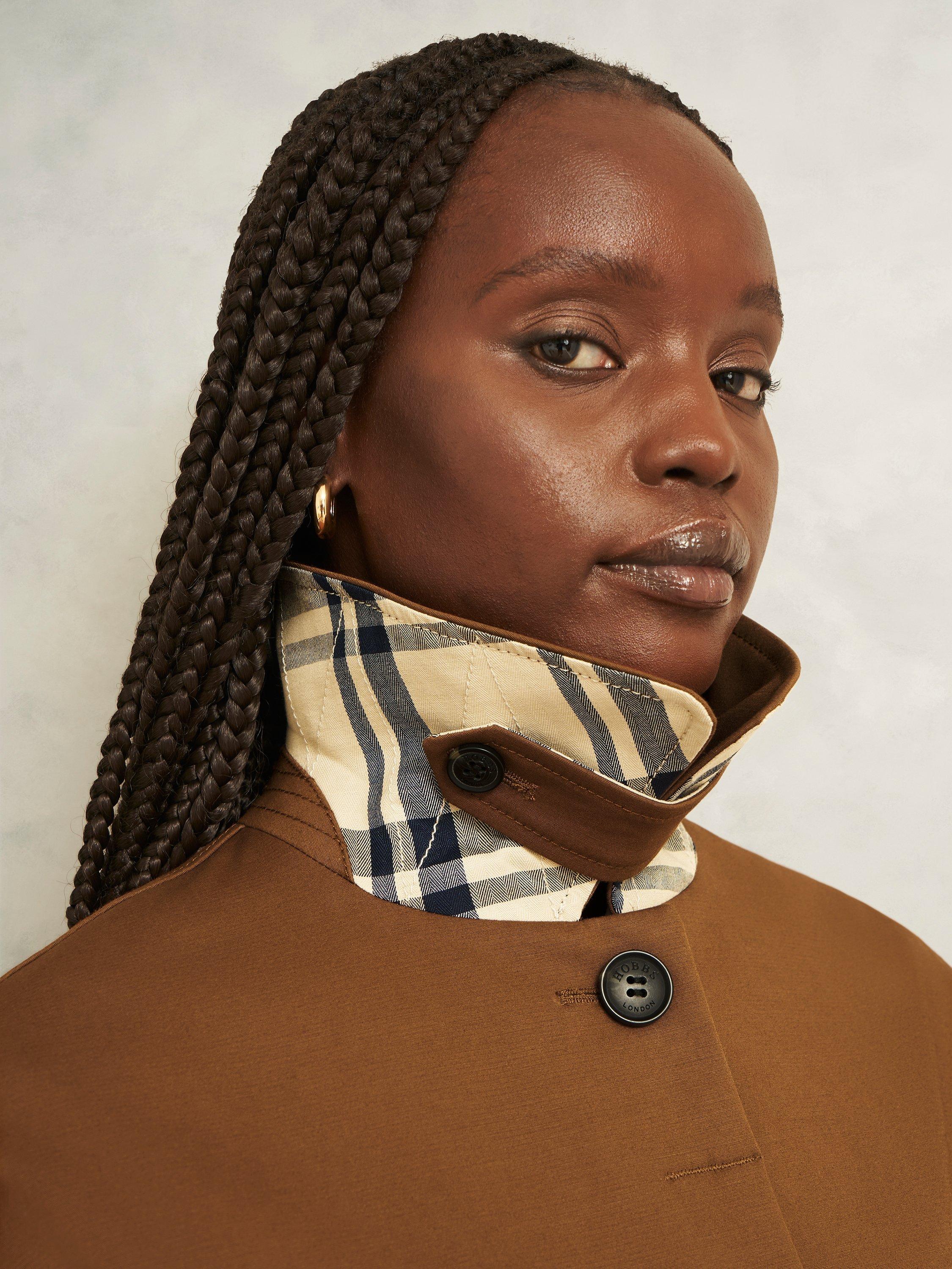 Exuding timeless British style and weather functionality, Frida fuses a contemporary length with the exquisite details iconic trench coats are loved for. Shower-resistant finish. Hobbs' signature check lining. Concealed button placket. Collar and guard detail. Cuff tabs and pockets.