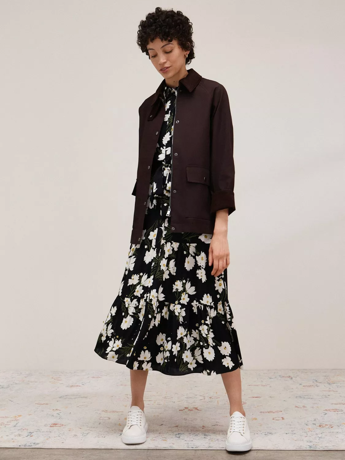 Hobbs' longline utility jacket brings sleek utility and everyday practicality, crafted in pure cotton for lasting comfort. With a funnel neck and easy fastenings, it’s a smart layer made for spontaneous plans and getting things done.