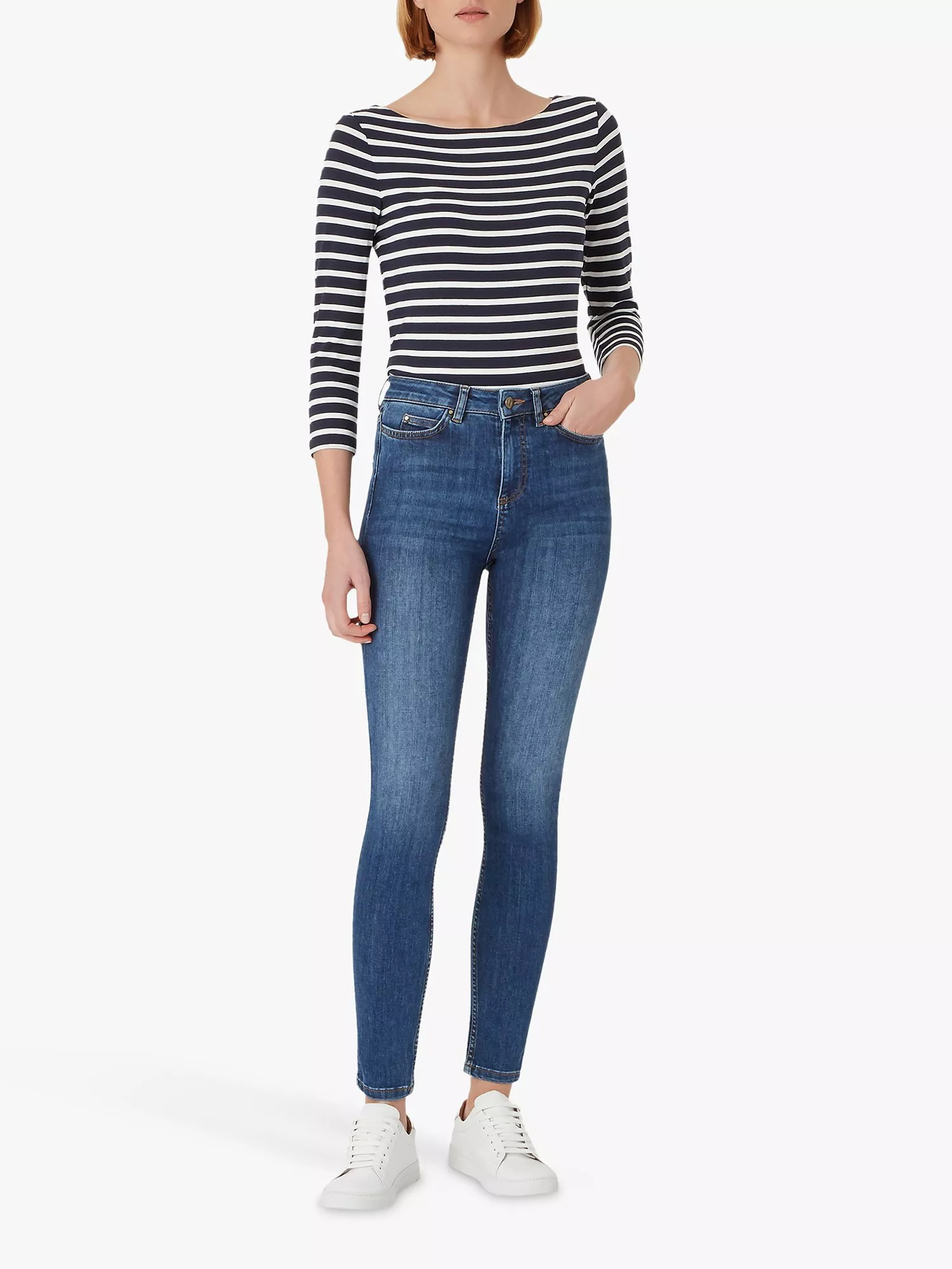 Designed to sculpt and hug your figure, the new Gia skinny jeans are just what your off duty wardrobe needs. Cut to a high rise, they're crafted from a luxuriously soft stretch-denim to fit close to the leg. Angled back pockets offer flattering definition while a Hobbs leather patch adds the final touch.