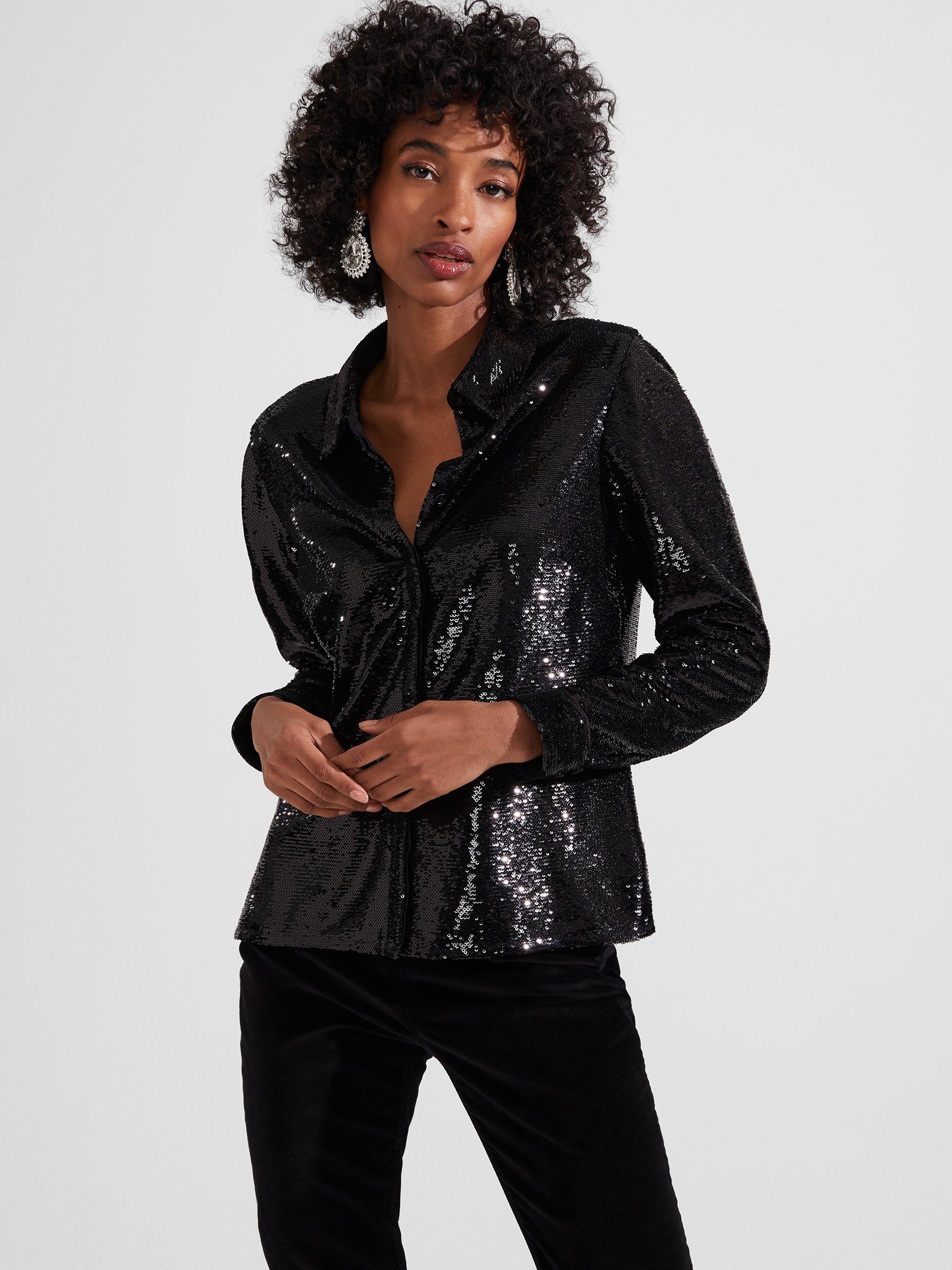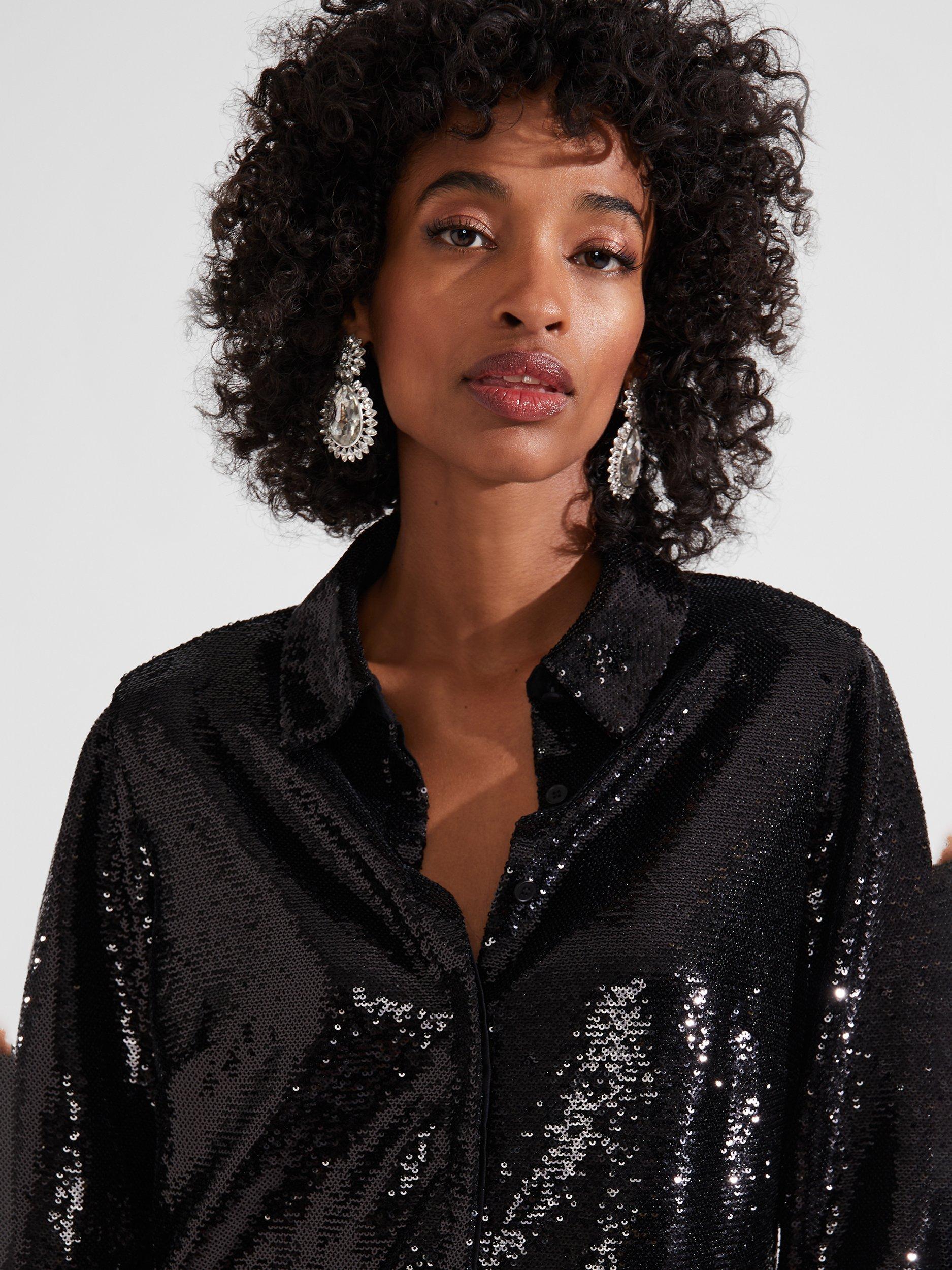 Add a touch of sparkle into your occasionwear wardrobe with the shimmering and sequin-embellished Greta shirt.