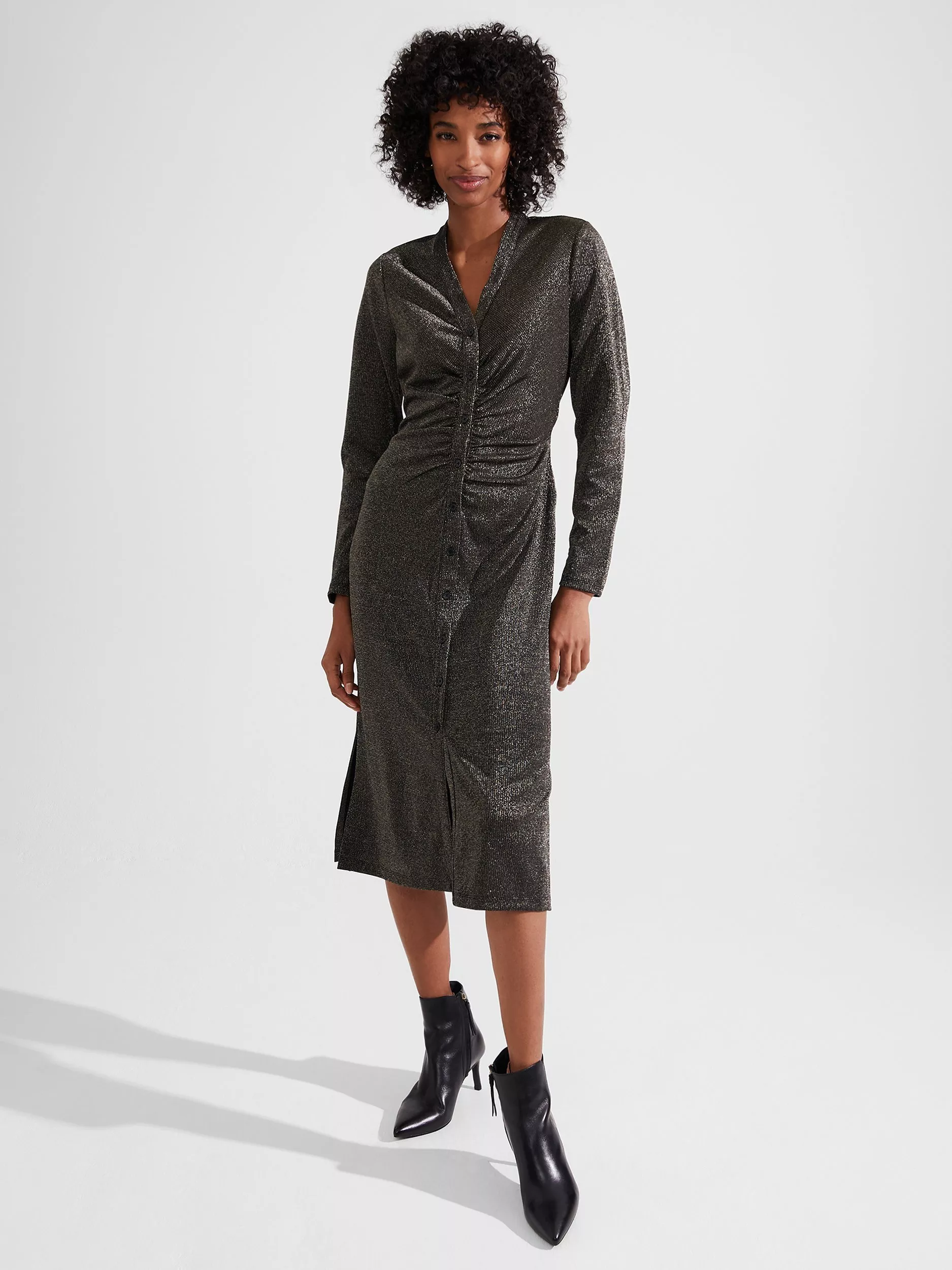 Designed in a simple but effective straight shape, this knee length dress from Hobbs is made using a synthetic fabric. Effortlessly flattering thanks to a fuss-free v-neckline and long sleeves, it is elevated with subtle texture.