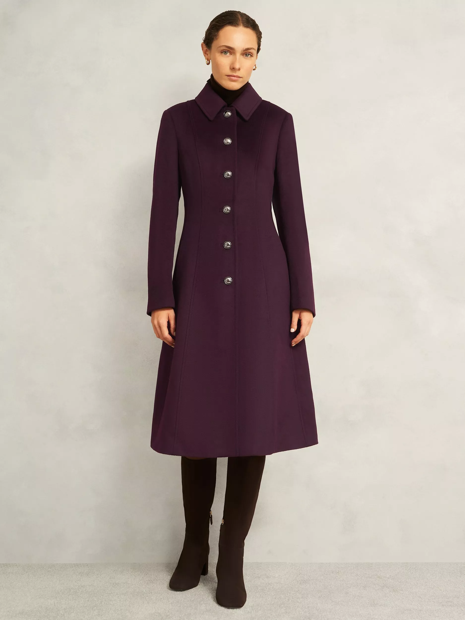 Imbued with elegance, the Iona wool coat has been artfully designed to define the waist before falling into a sculptural skirt.