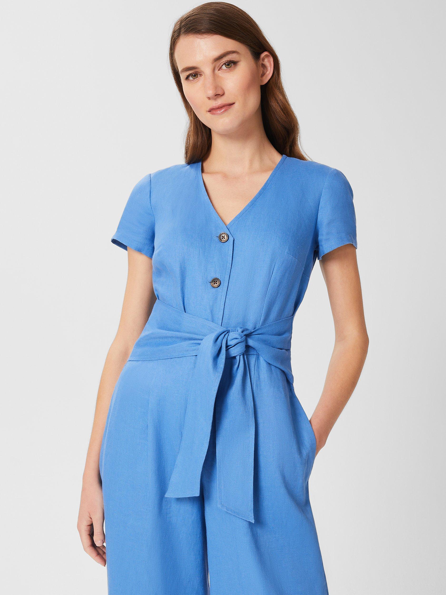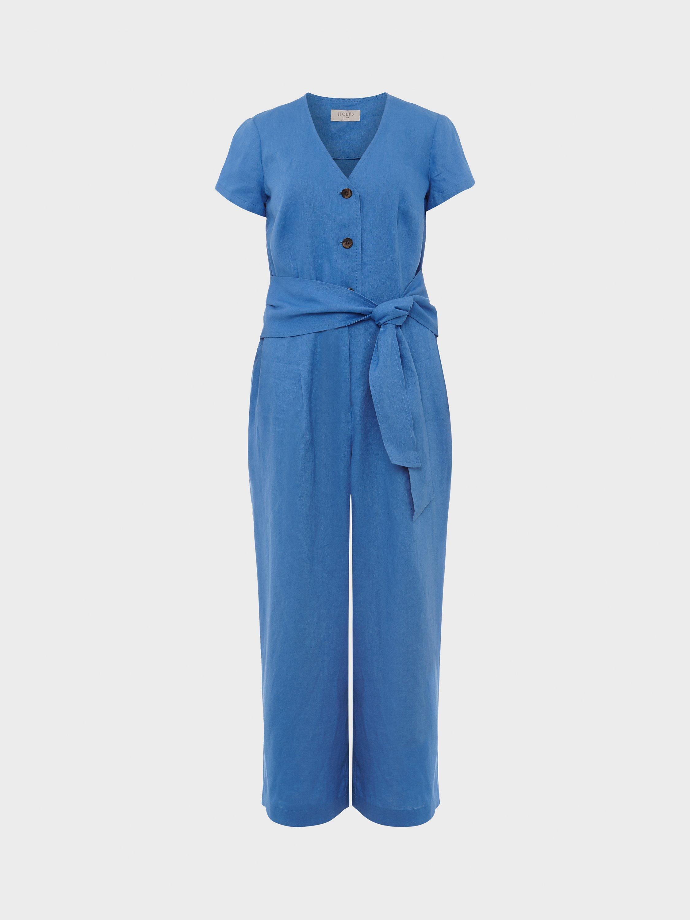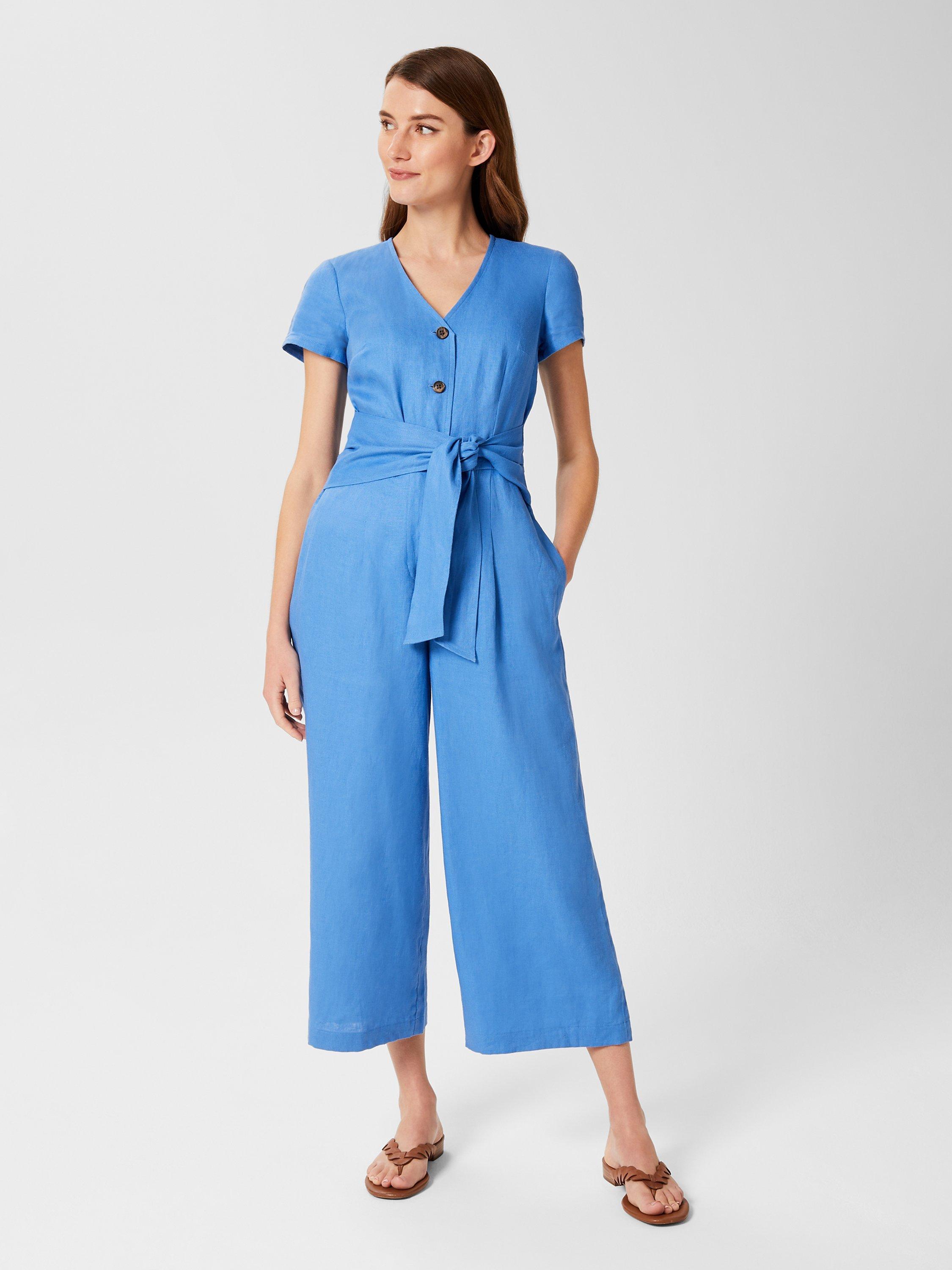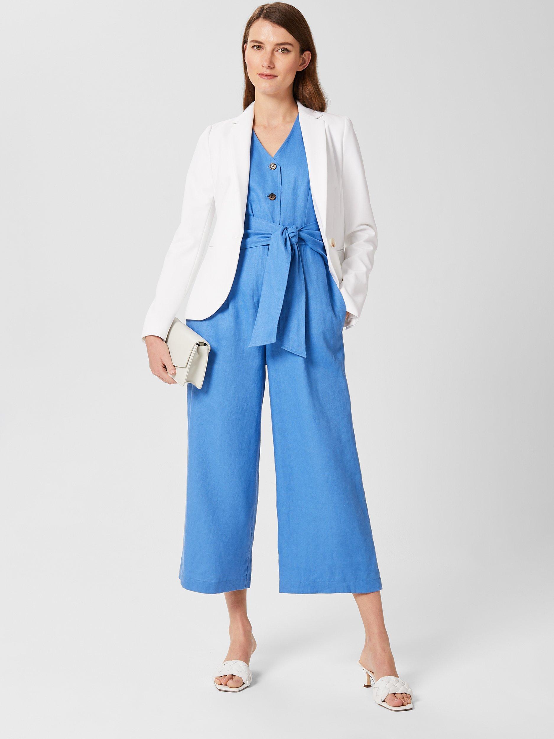 Cut to a cropped wide-leg silhouette with a fitted bodice and waist-defining tie belt, you'll find it's not short on flattery, either. Faux horn buttons to the front add a trend-led touch. Wear yours with sandals or espadrille wedges. Crafted from superior European-grown linen for breathability.