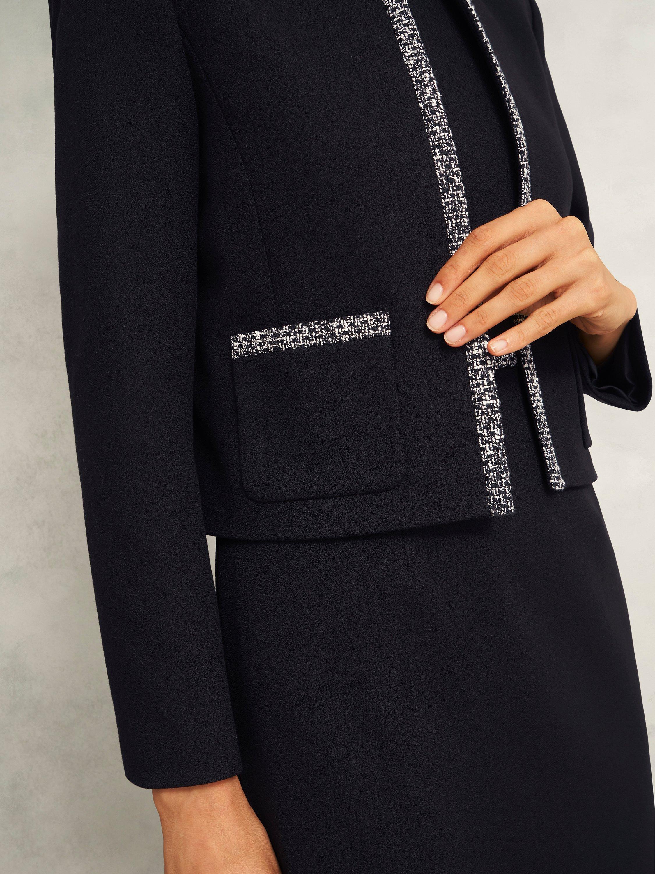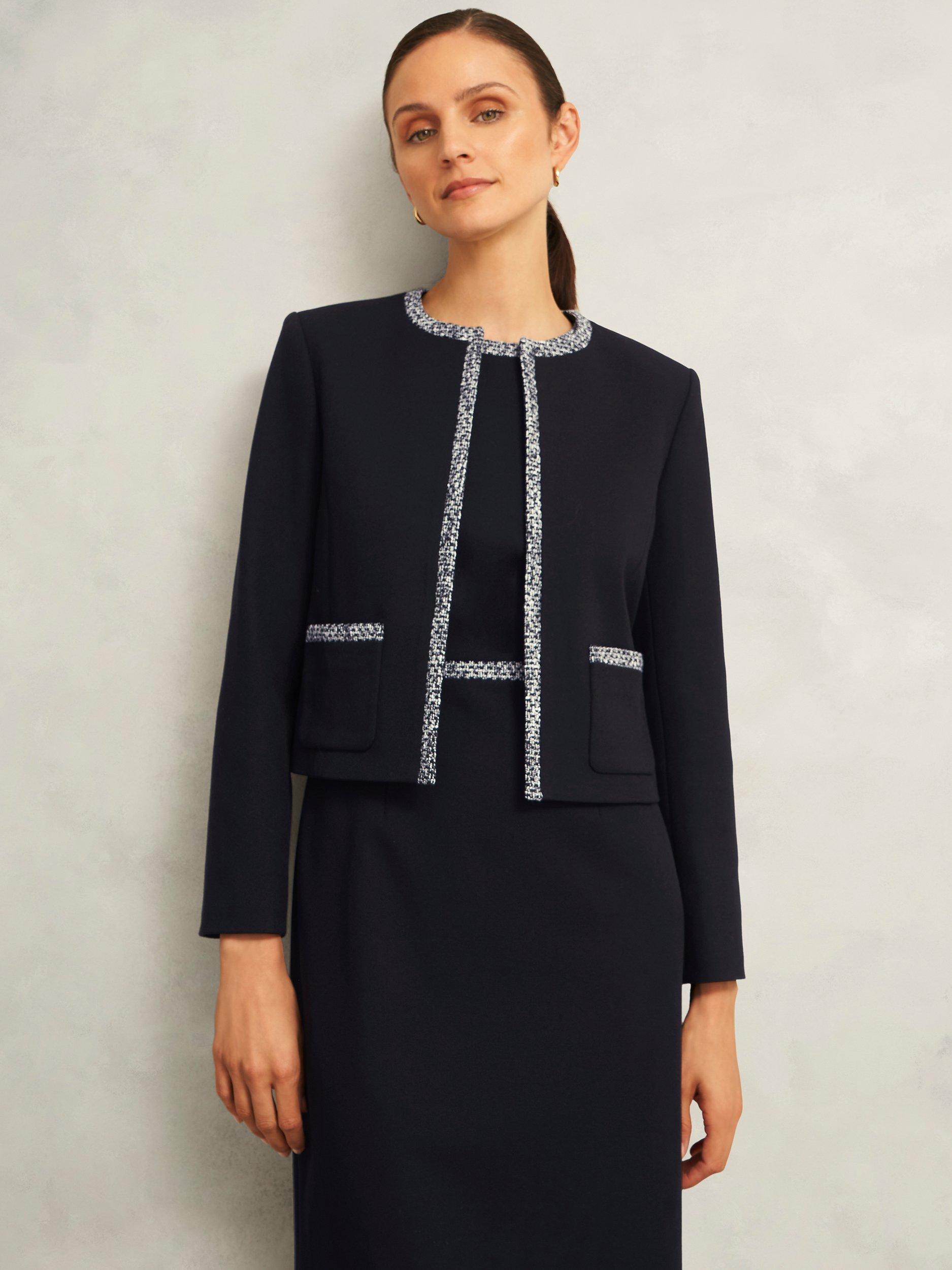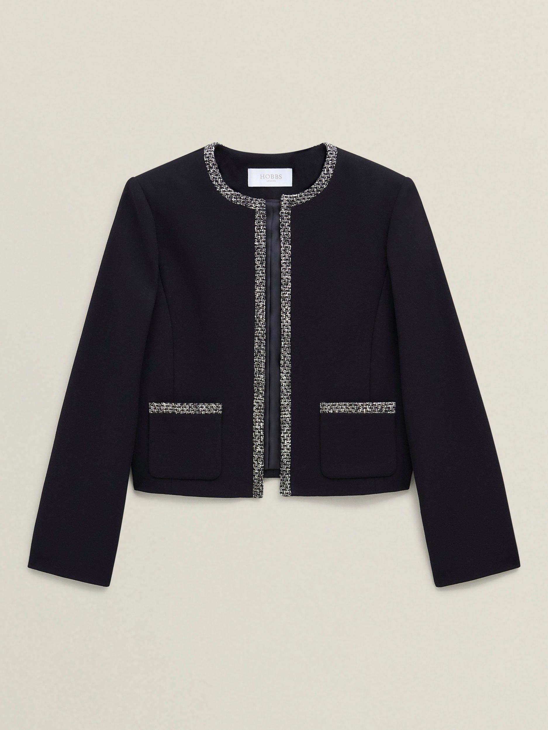 Made for your workday edit, the Joyce jacket is tailored with tweed trims for a touch of textural elevation.