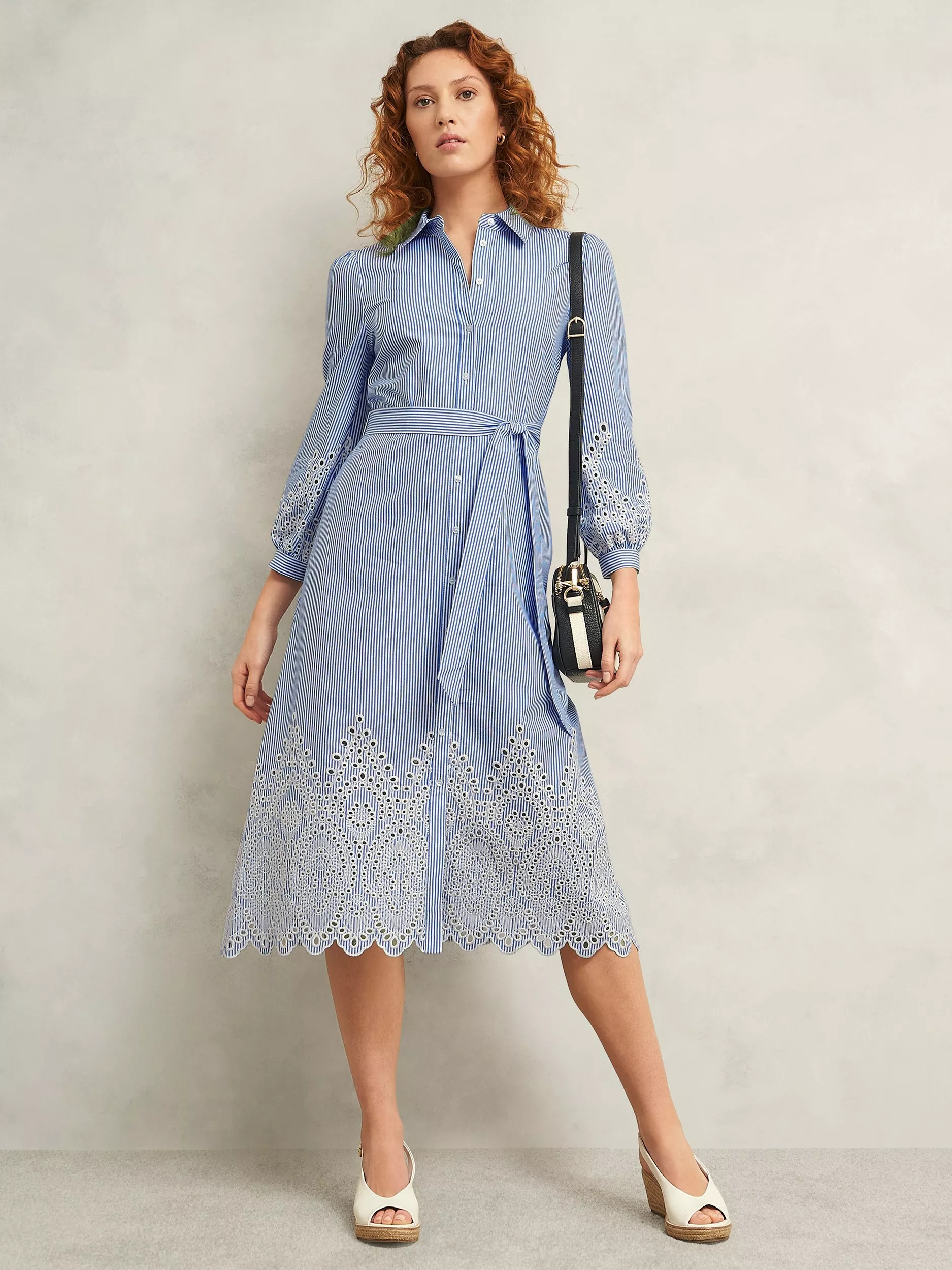 The signature shirt dress with a seasonal twist. Juliette blends breathable broderie with summer stripes for a style that masters work-to-weekend ease.