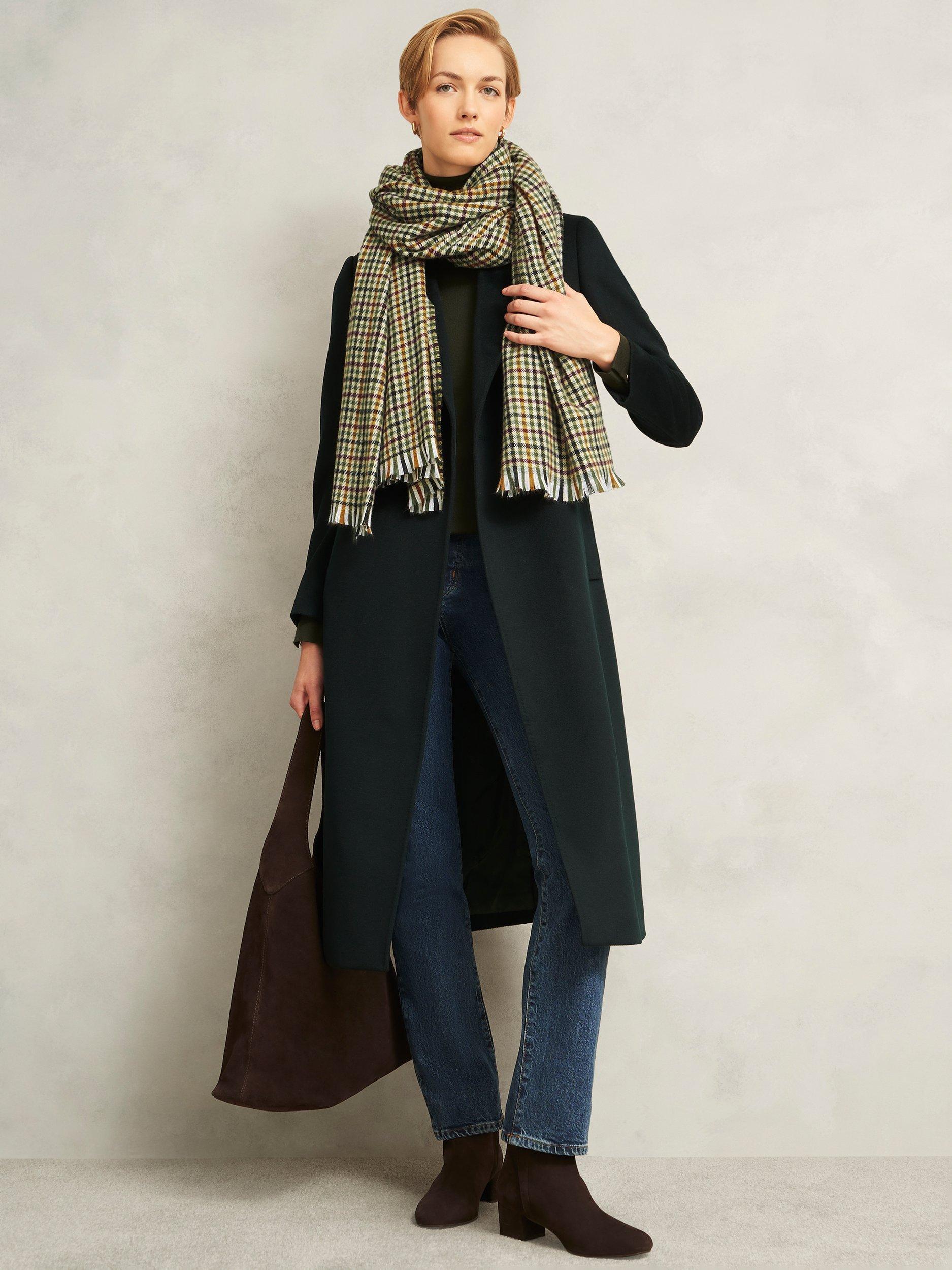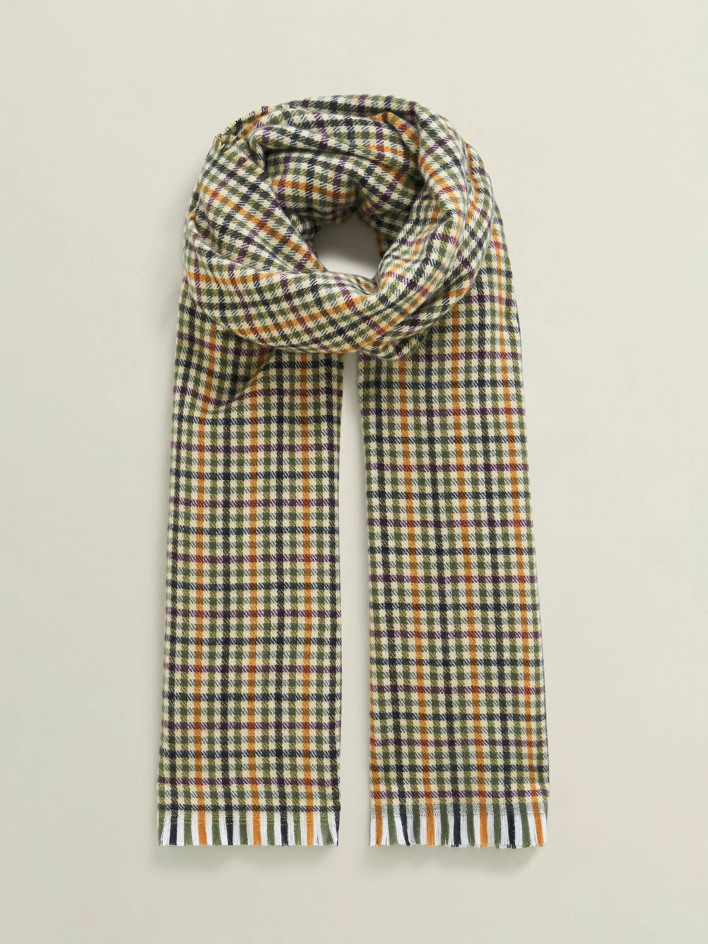 In a timeless, neutral check, the Katherine scarf imbues every outfit with a heritage feel. Wrap around the neck or over the shoulders as a shawl.