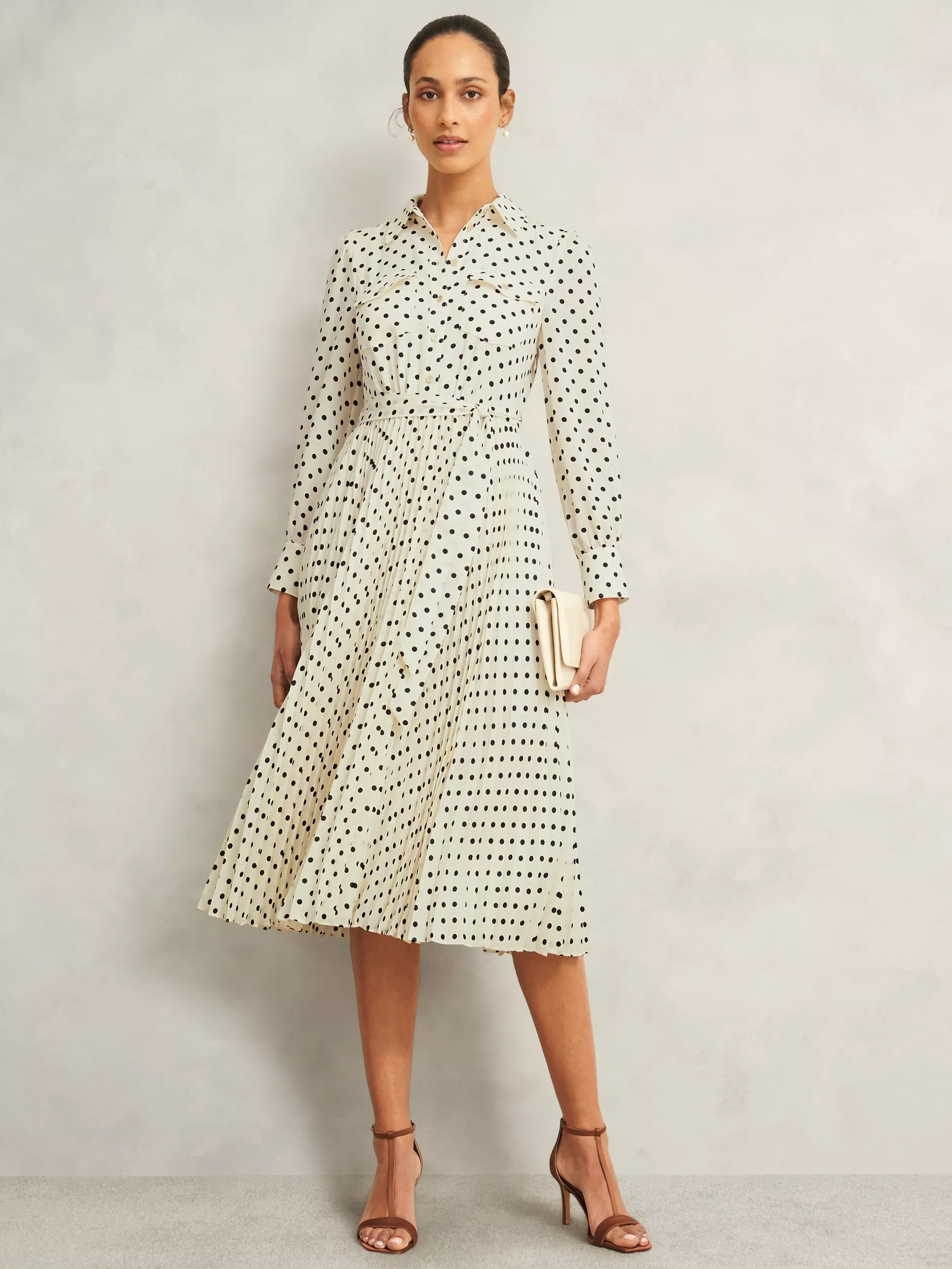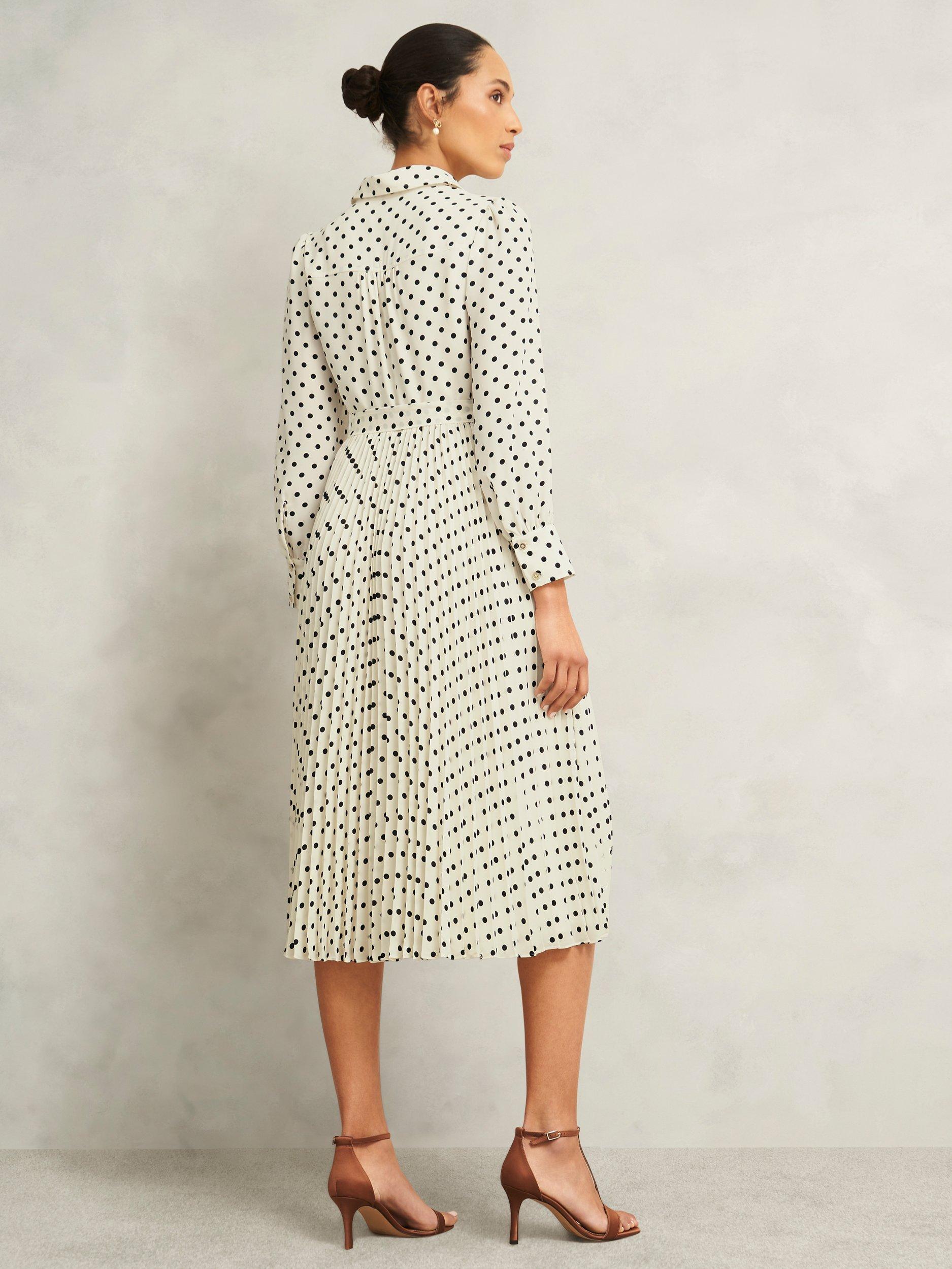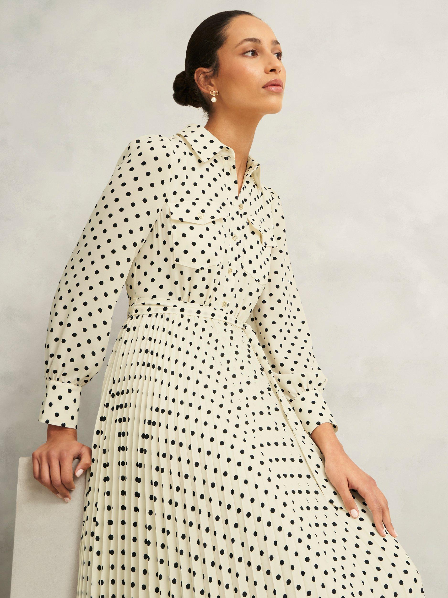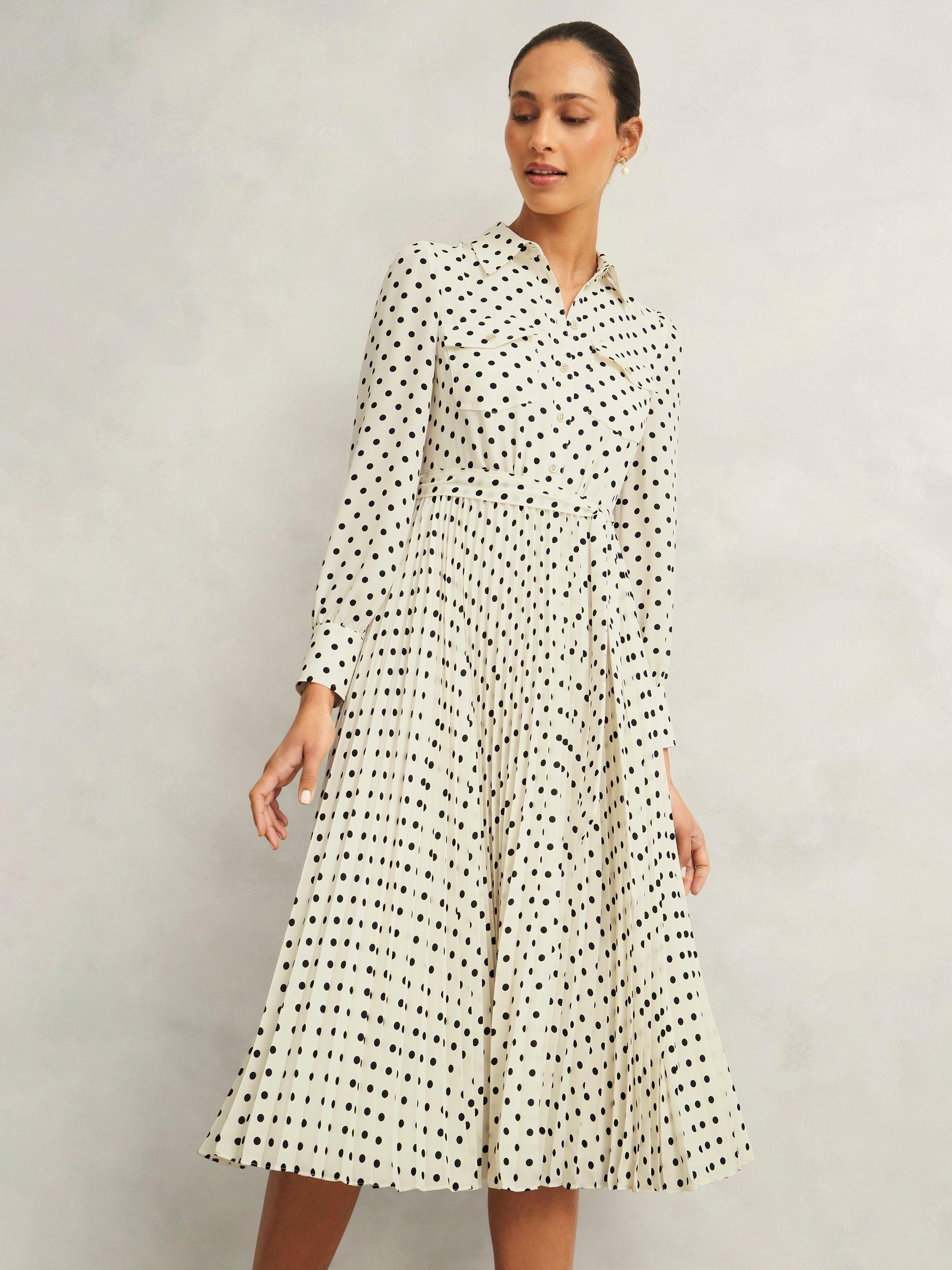 A favourite of Hobbs' for everyday to event ease, the Larina dress exudes elegance with playful pleats and polka dots.