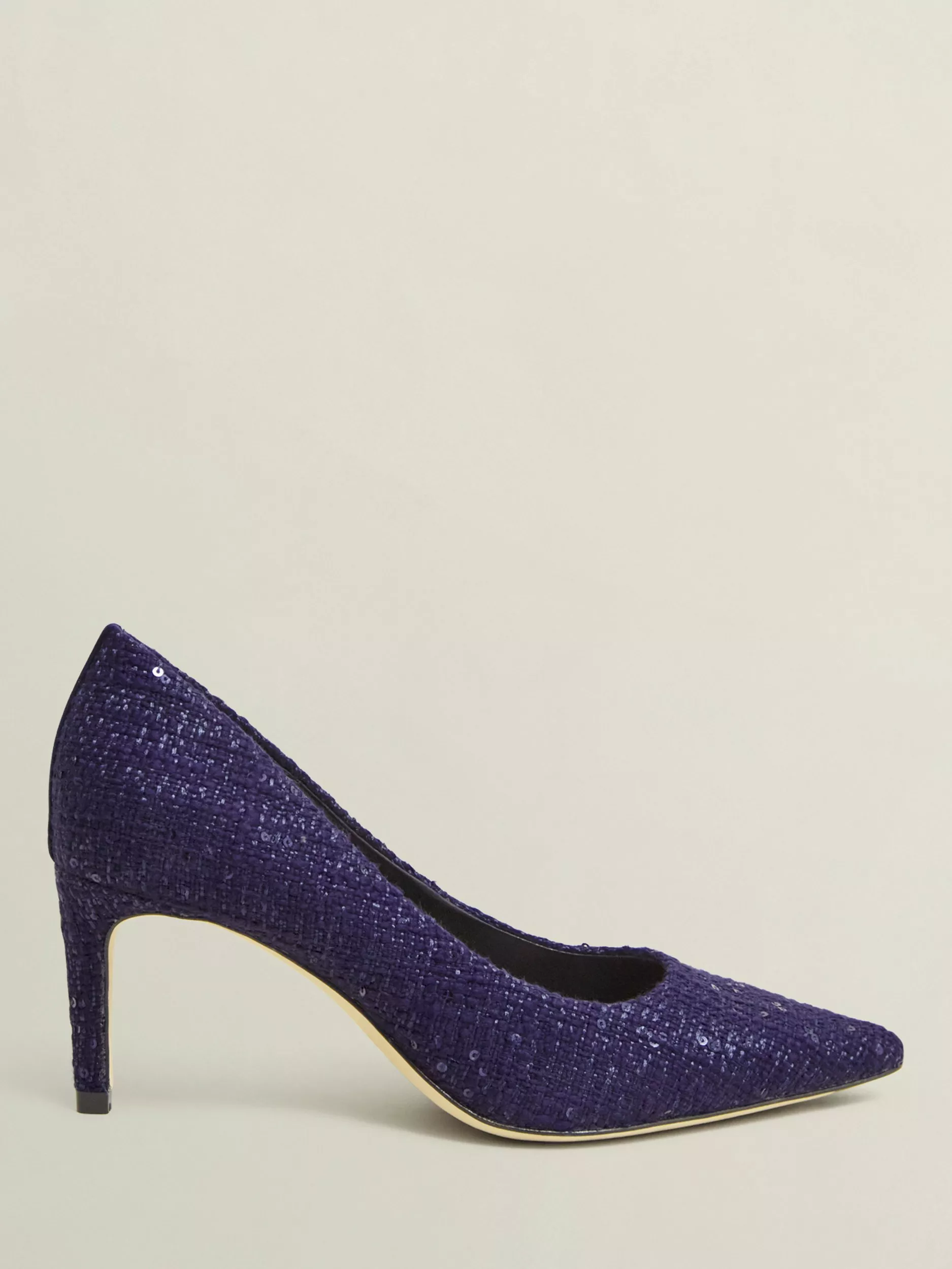 The ultimate in stalwart style, this pair of courts from Hobbs offers a distinctive edge with its sequin-infused tweed uppers. Set on a stiletto heel, they are finished with a pointed toe that elongates the profile.