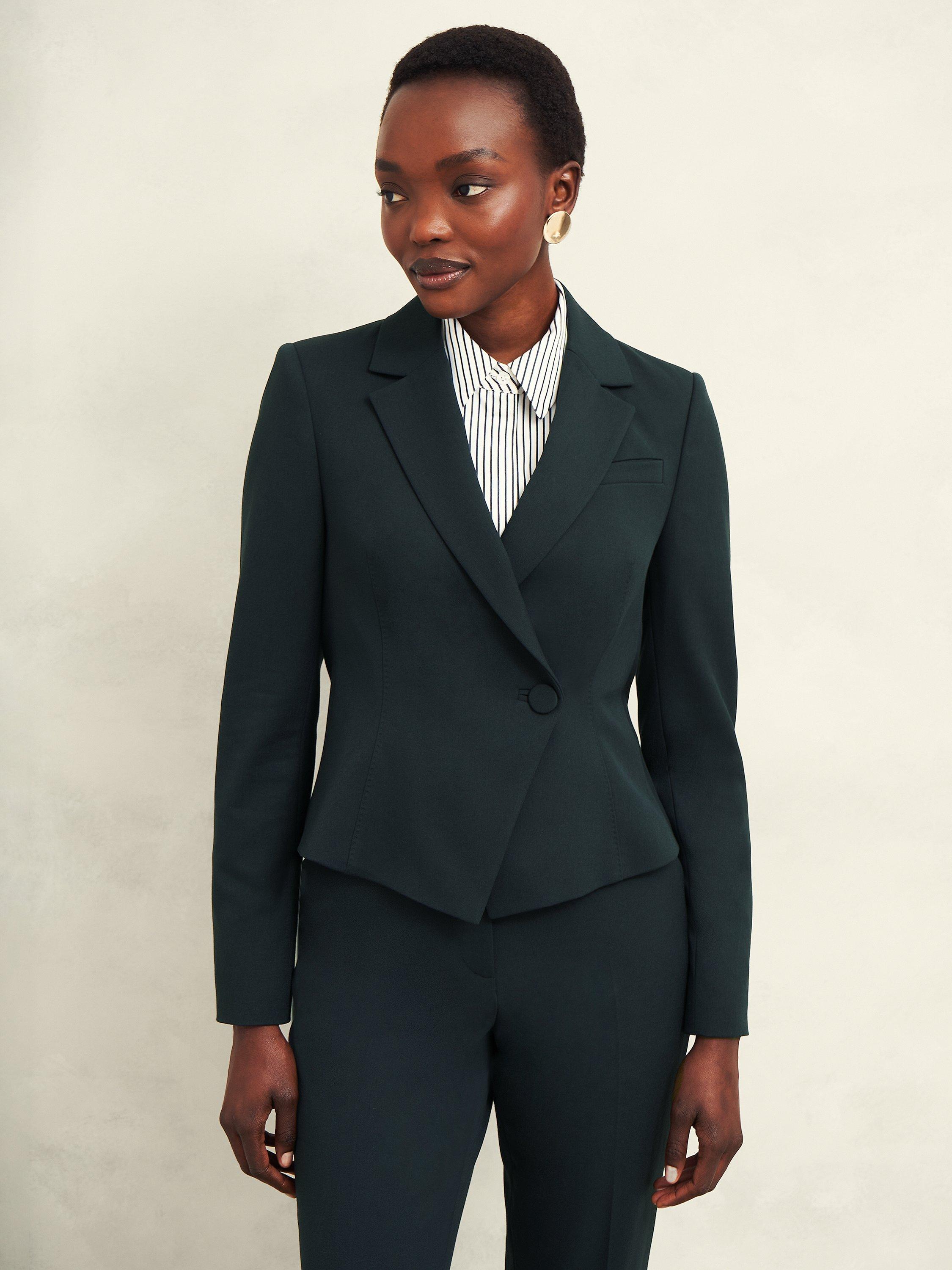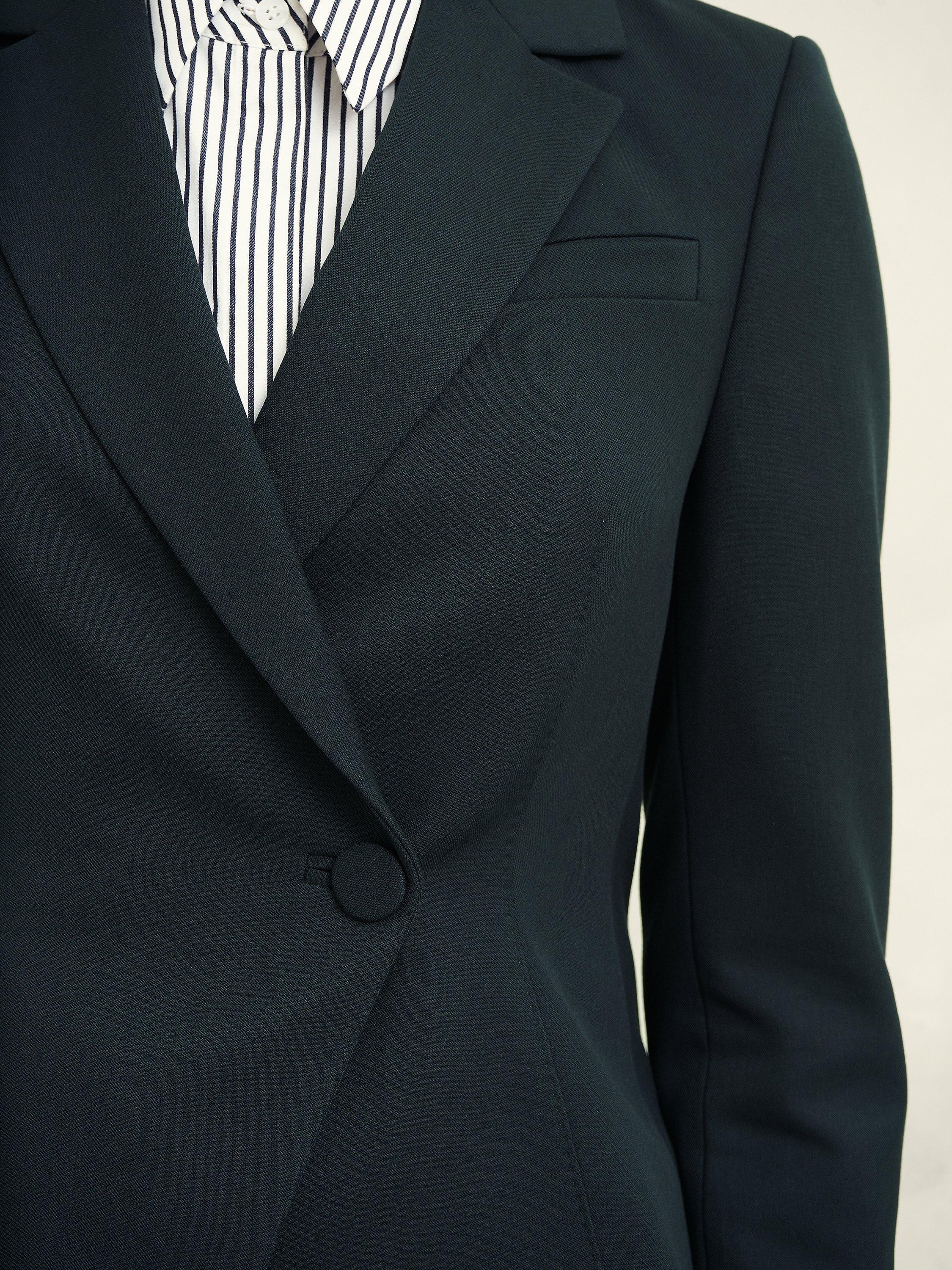 Distinctive details make the Linda jacket worthy of a spot in your weekly tailoring rotation. Designed with considered seams and an asymmetric button, it flatters the silhouette effortlessly.