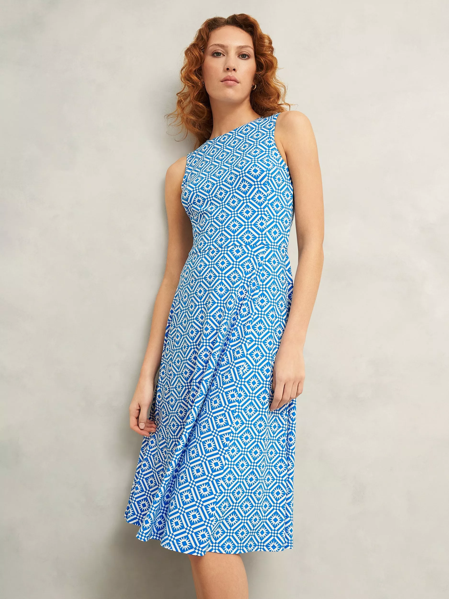 Where geometric print meets our iconic fit and flare silhouette, embrace the everyday ease of the Lisa jersey dress.
