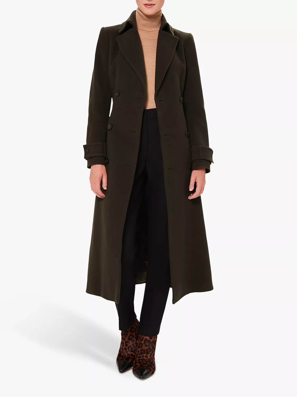 HobbsLori Wool Cashmere Blend Belted Long Coat, Olive