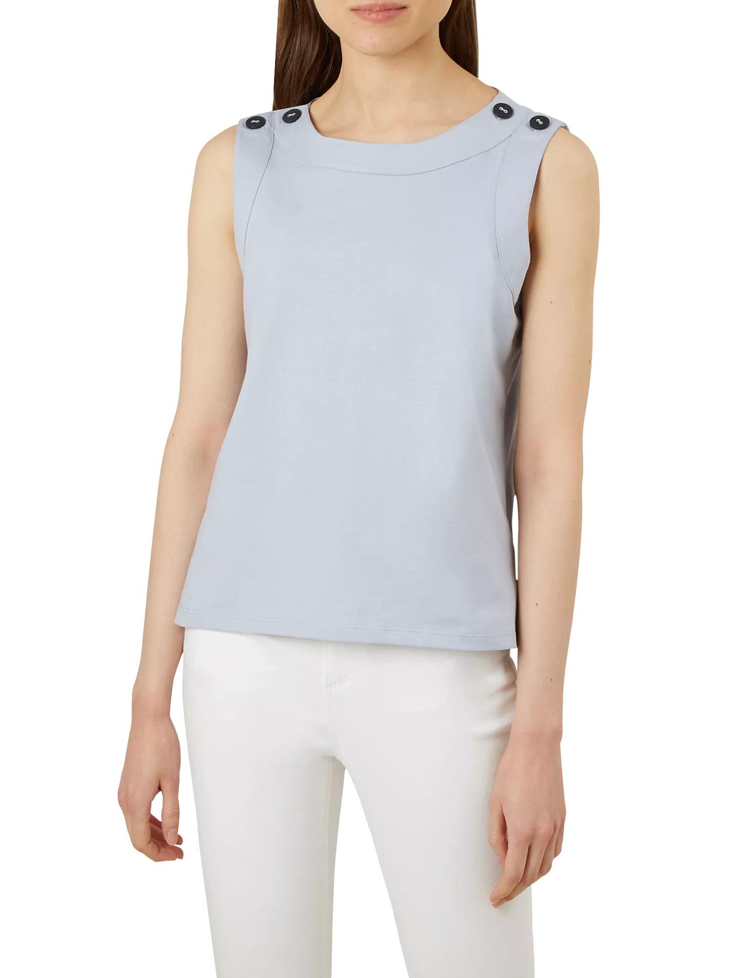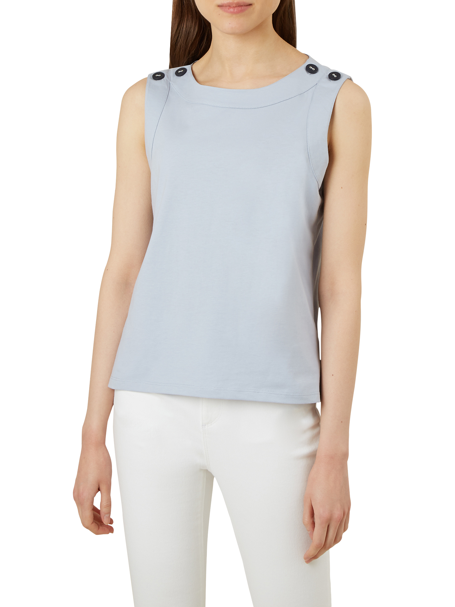 Made from pure cotton for a beautifully soft feel, this top is perfect for the warmer months with its sleeveless cut and relaxed fit. It is finished with buttons at the shoulders for a touch of detail.