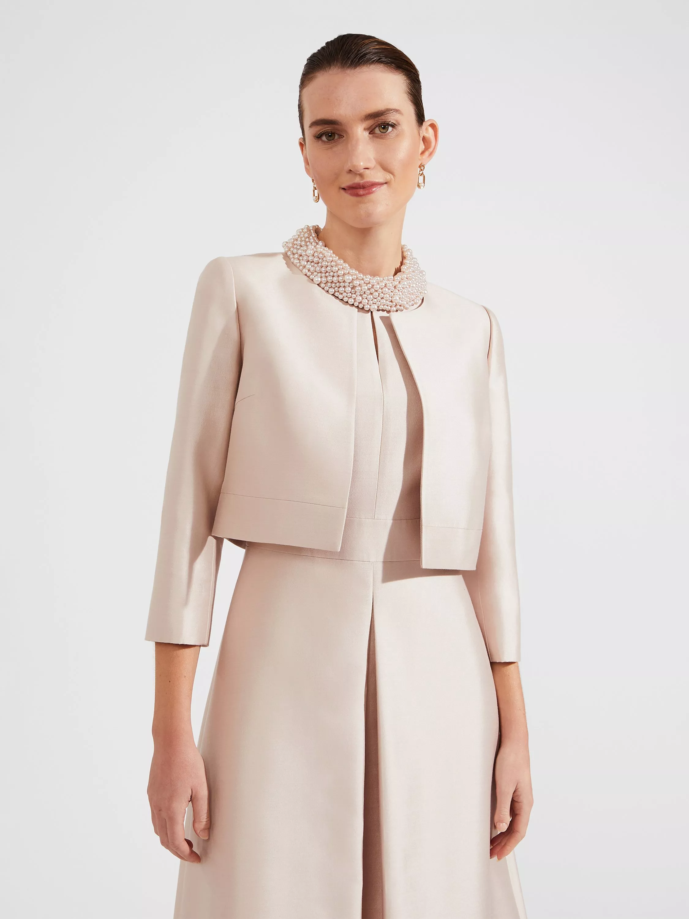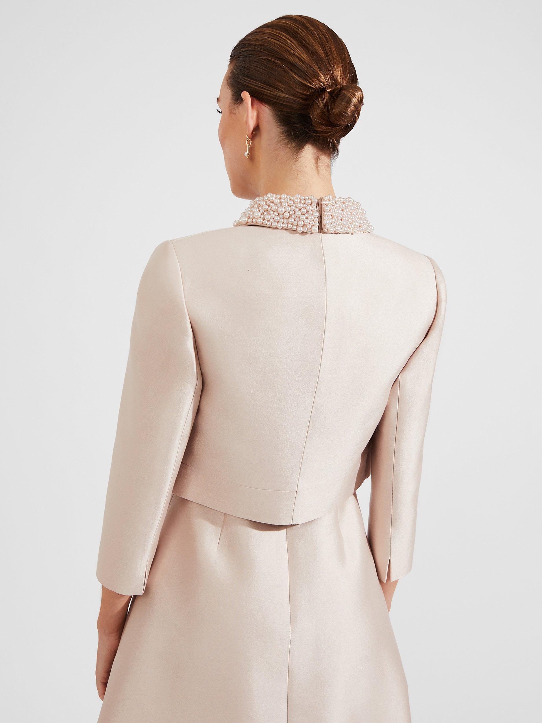 Feminine and flattering, this bolero by Hobbs comes cropped at the hem.