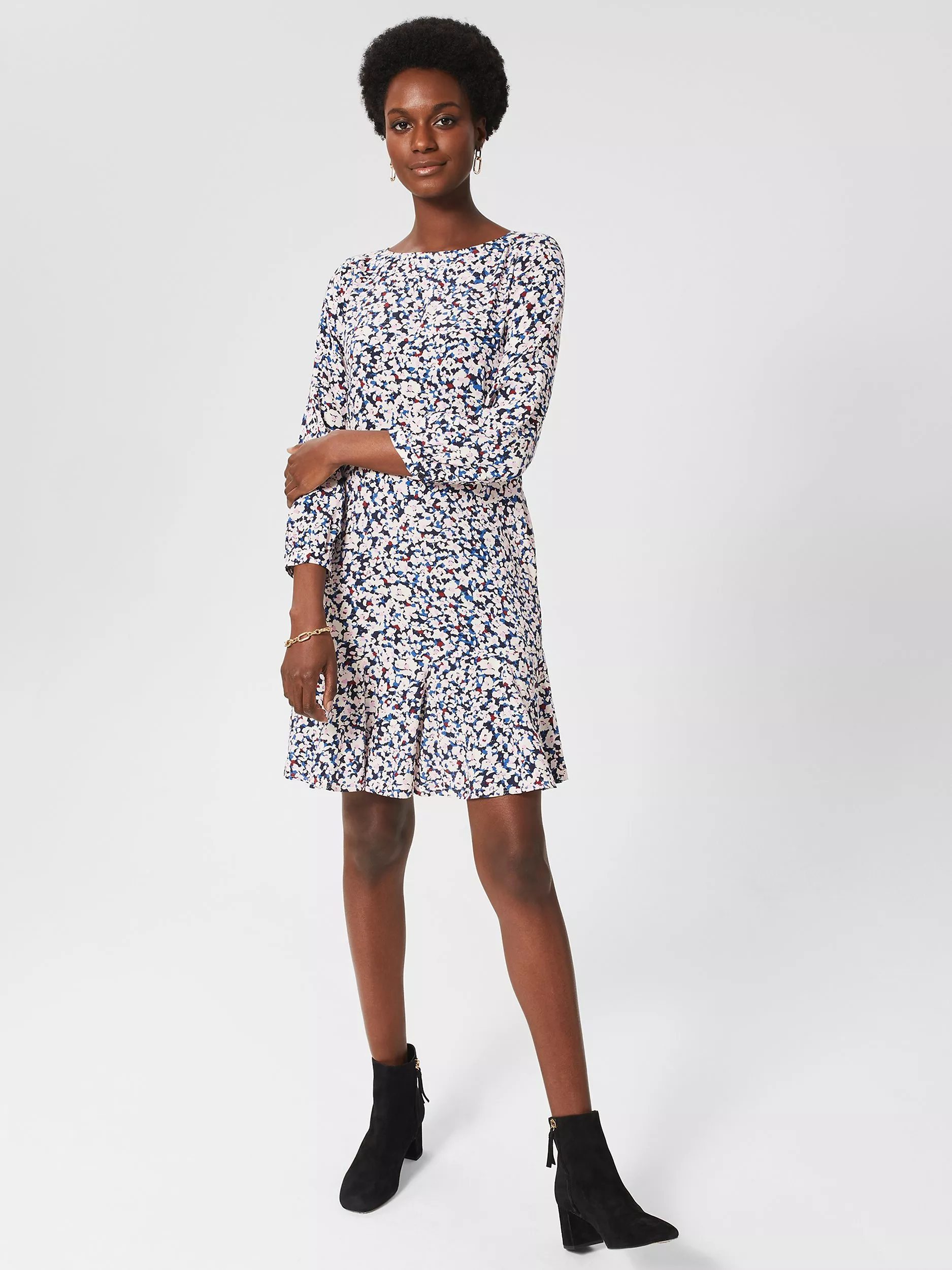 In a flattering fit-and-flare silhouette, this mini dress by Hobbs is printed with pretty florals for added charm.