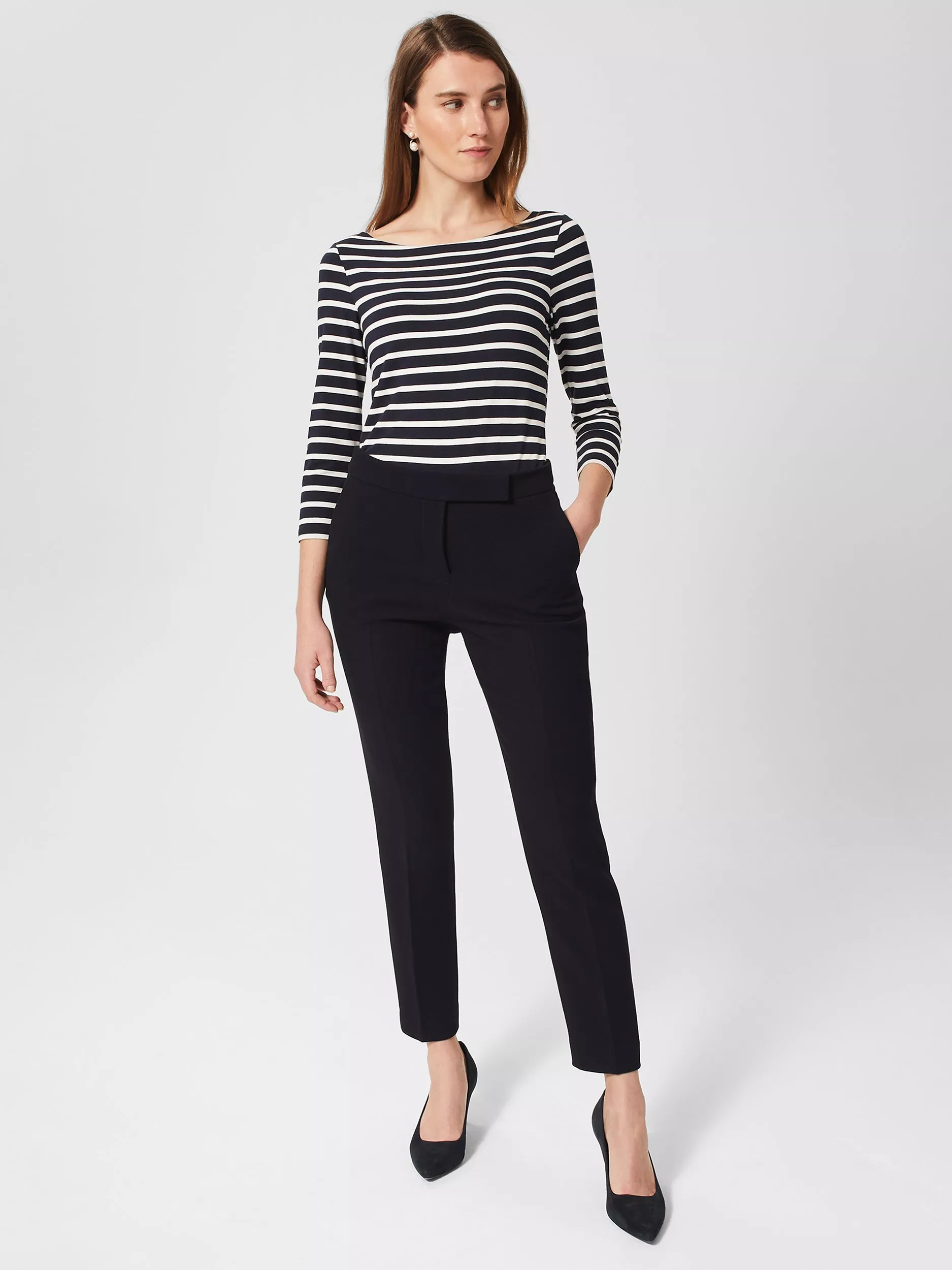 Cut to a tapered design that offers more room at the top and narrows towards the ankles, these mid rise tailored trousers by Hobbs are made from a blend of easy-care fabrics for long-lasting wear and are cropped to the ankle.