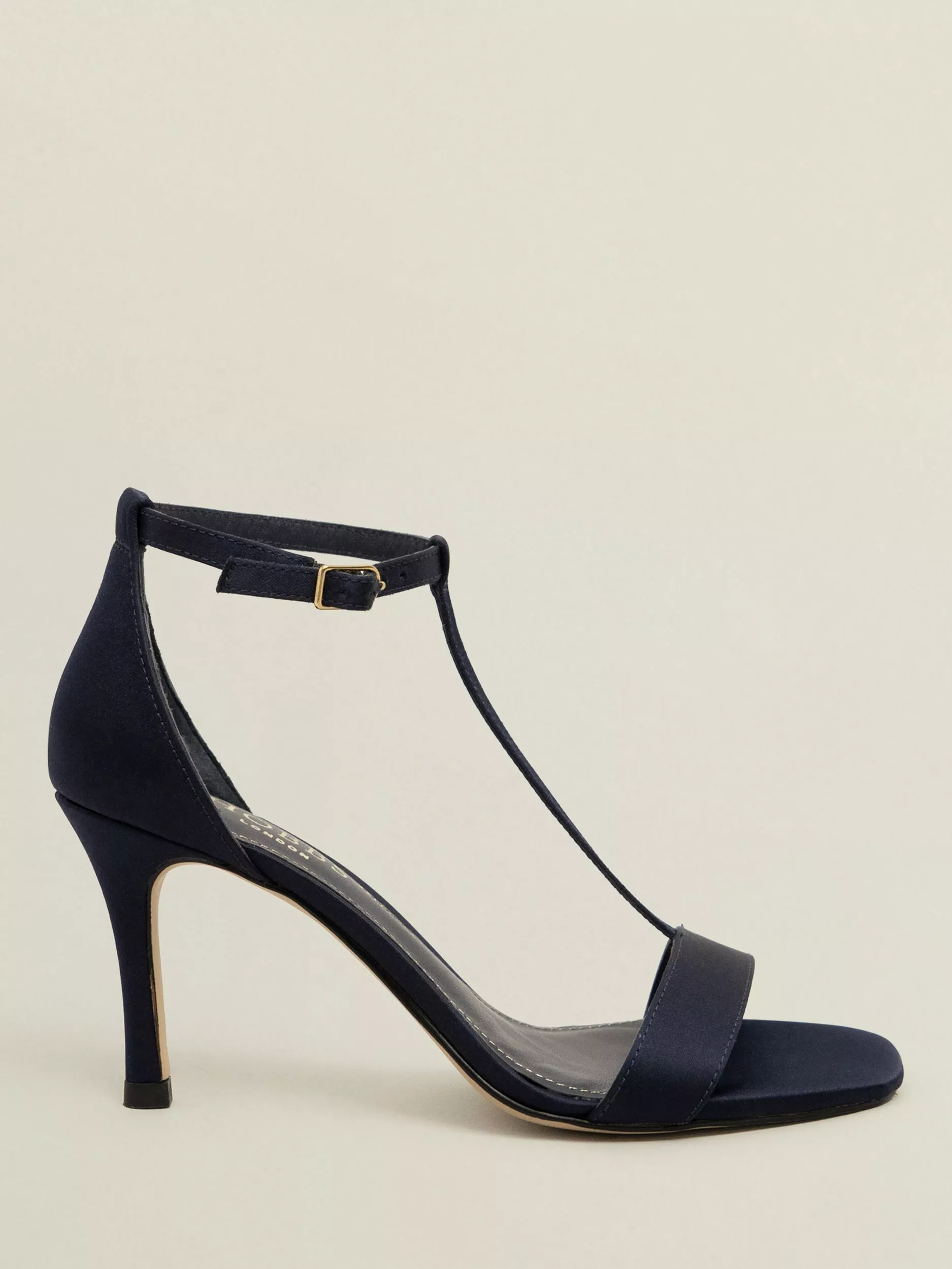 Completed with a slim heel and an adjustable ankle strap.